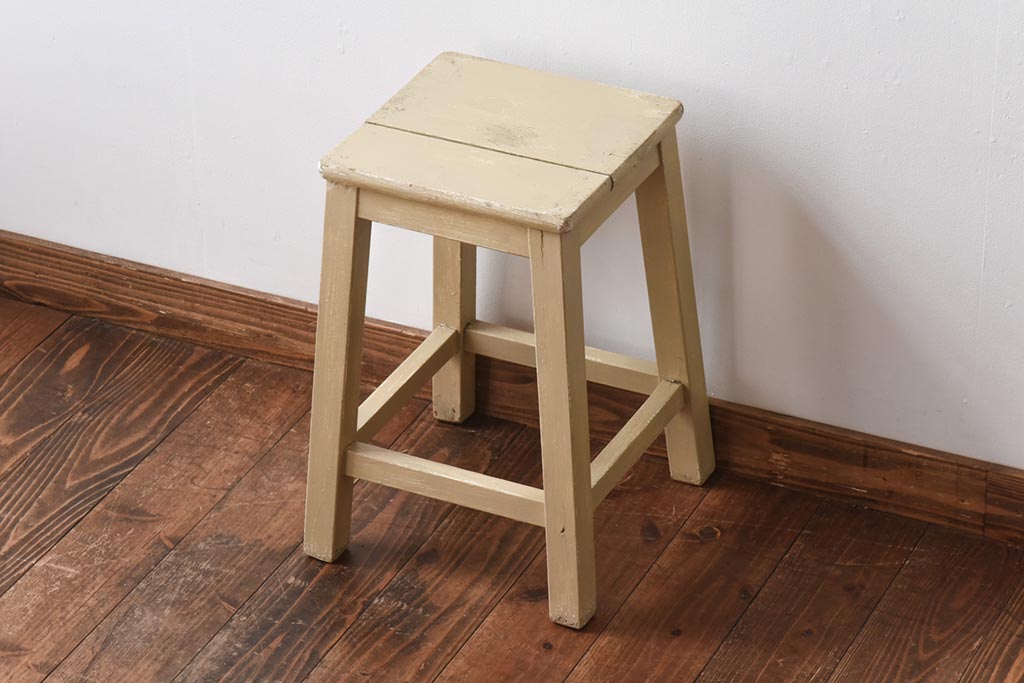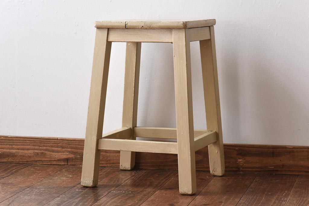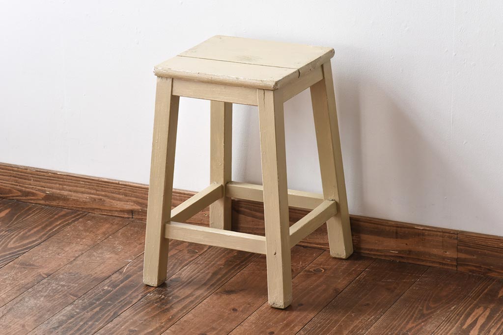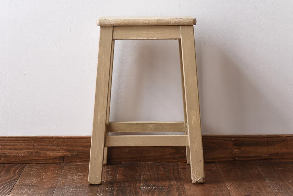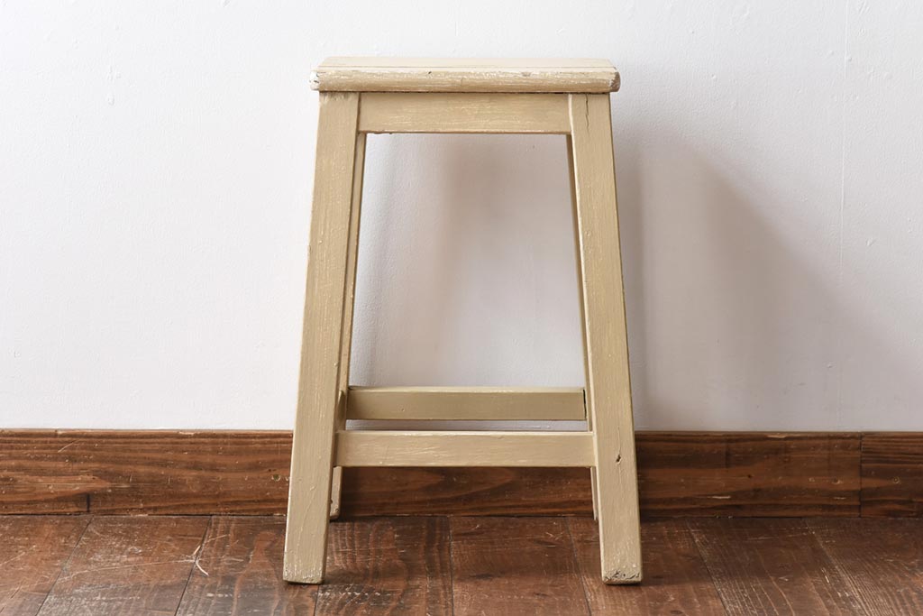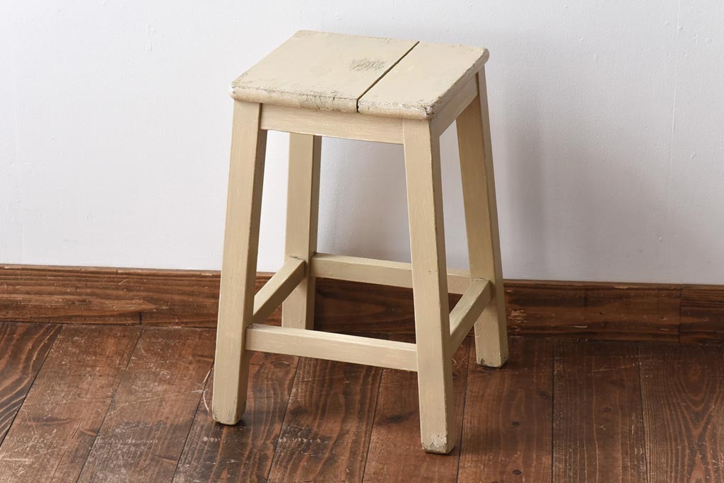 ペイント家具 ビンテージ やわらかなペイントカラーの角スツール(椅子、チェア、イス)(R-031185)