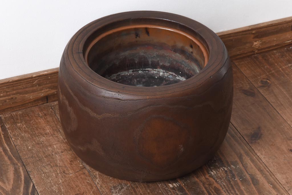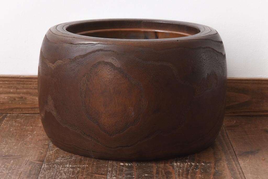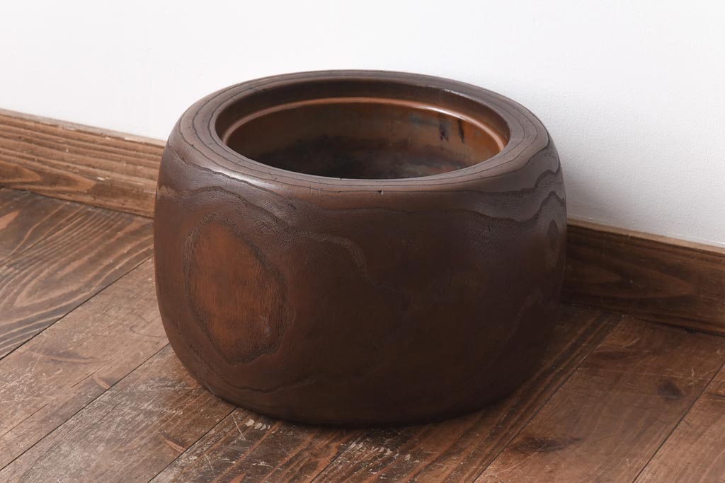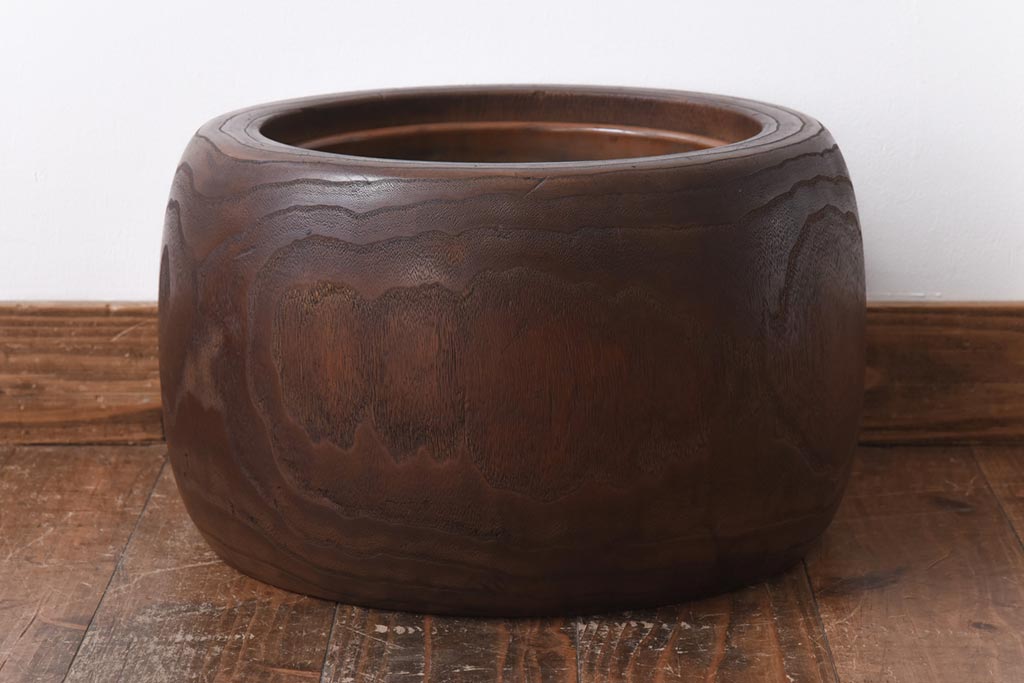 火鉢> 木製火鉢 > アンティーク雑貨 和製アンティーク 桐材製 古い木の質感が味わい深いくり抜き火鉢(1)