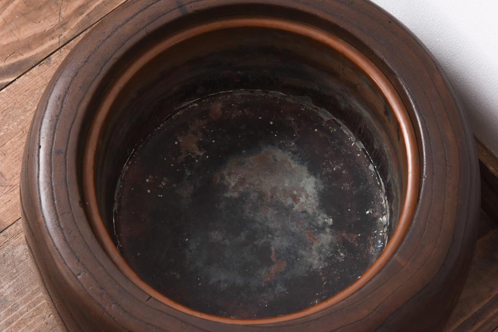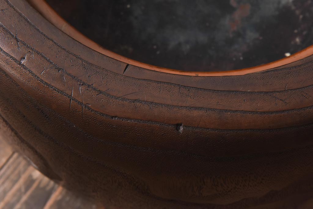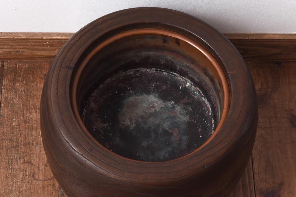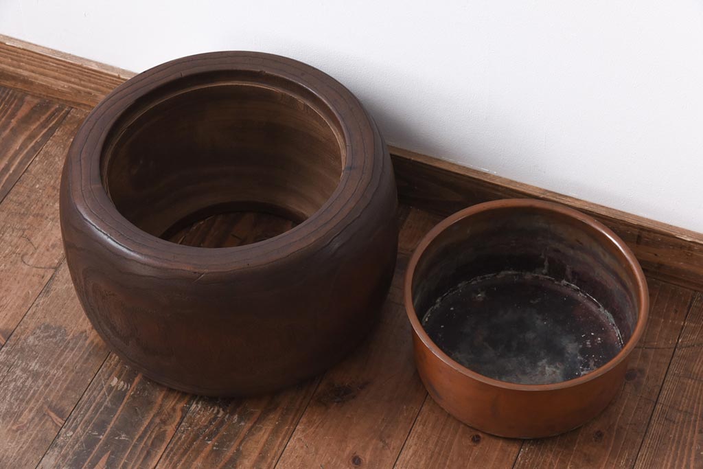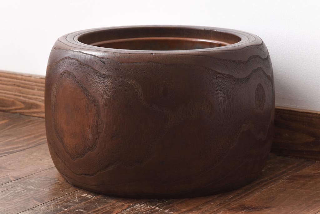 火鉢> 木製火鉢 > アンティーク雑貨 和製アンティーク 桐材製 古い木の質感が味わい深いくり抜き火鉢(1)
