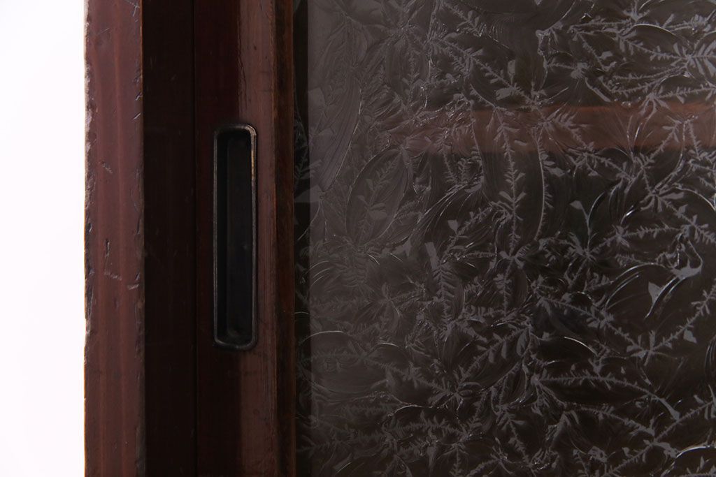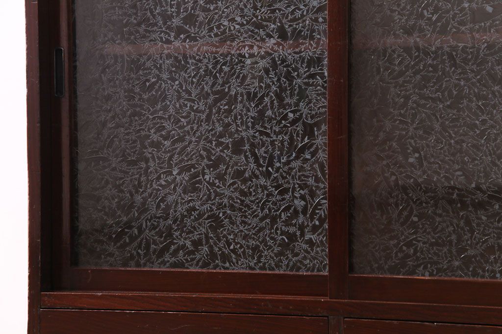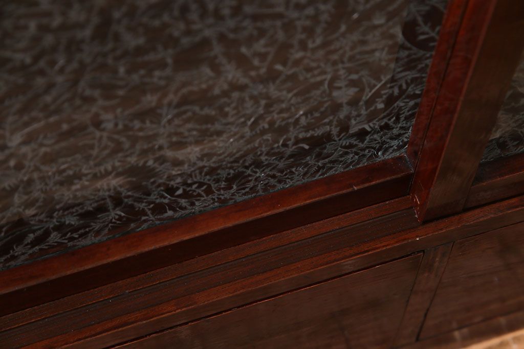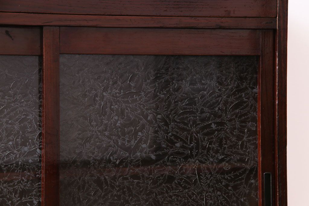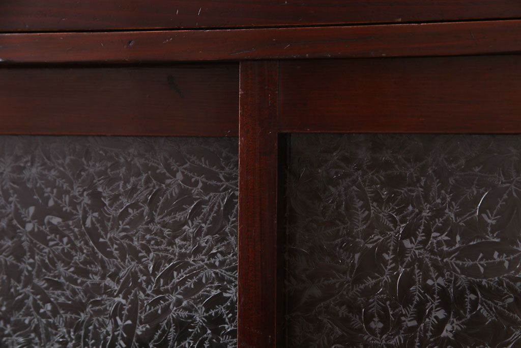 アンティーク家具 和製アンティーク 漆塗り 結霜ガラス 趣きと風情感じる和モダンなガラス戸棚(収納棚、食器棚、キャビネット)