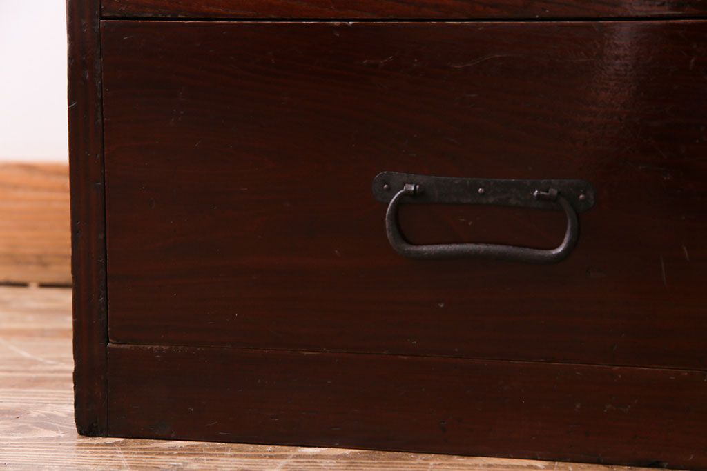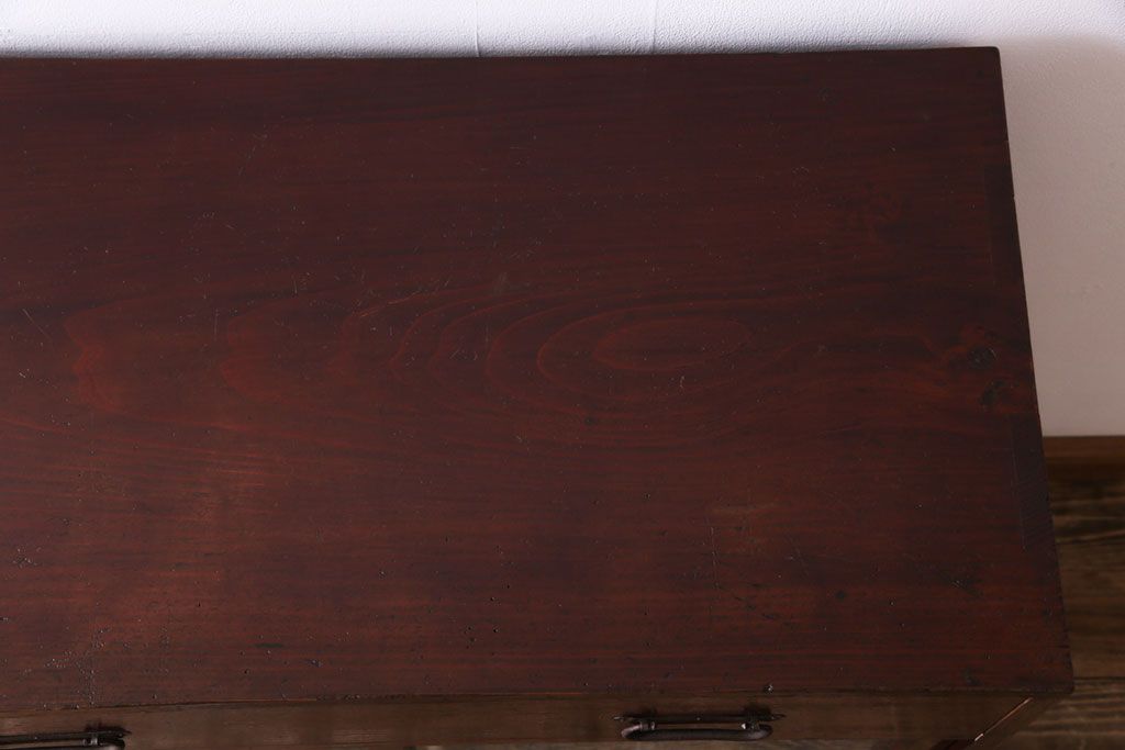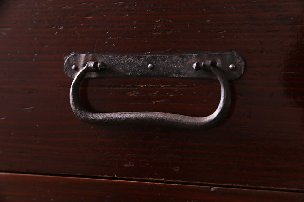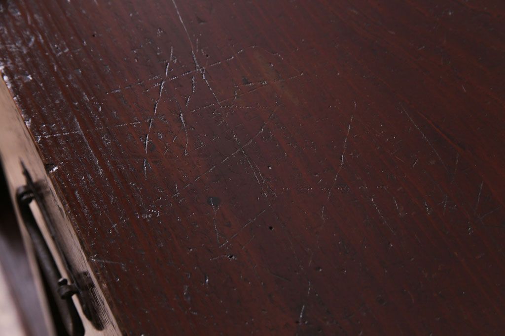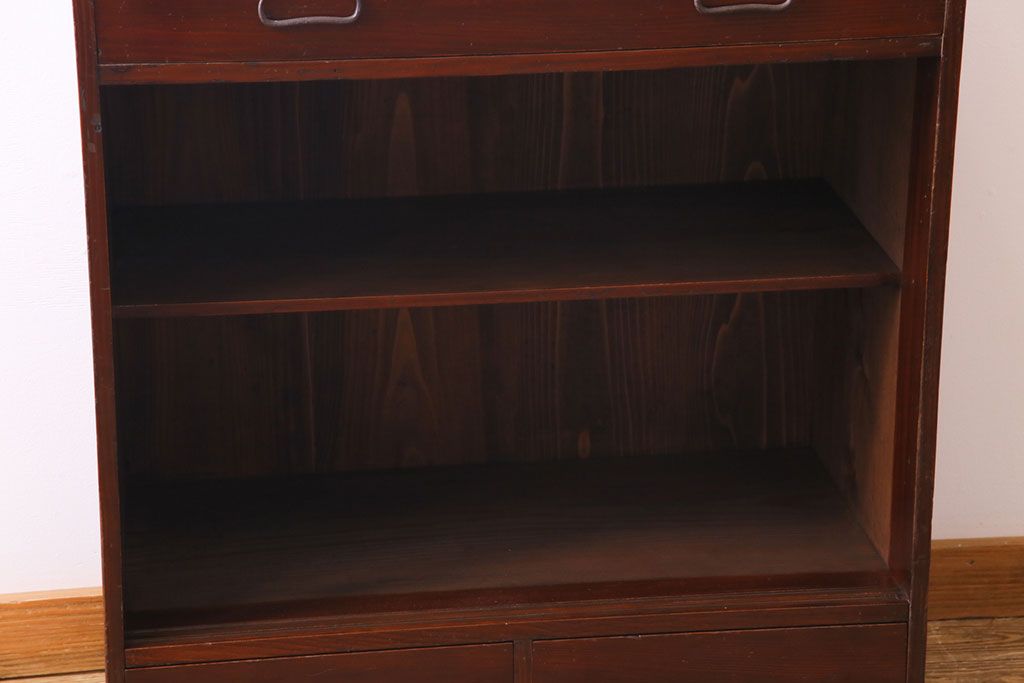 ラフジュ工房> キャビネット・戸棚> 食器棚・カップボード > アンティーク家具 和製アンティーク 漆塗り 結霜ガラス 趣きと風情感じる和モダンなガラス戸棚(収納棚、食器棚、キャビネット)