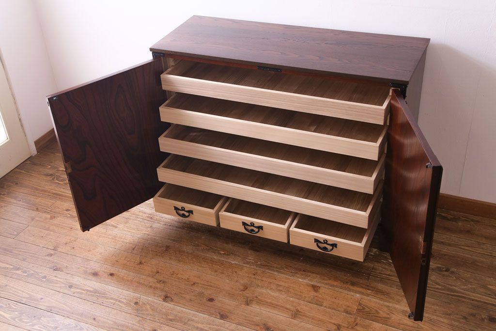 民芸家具 > 中古 岩谷堂箪笥 開き牡丹 リメイク 伝統美あふれる荘厳な佇まいの箪笥ローボード(和タンス、チェスト、整理箪笥)