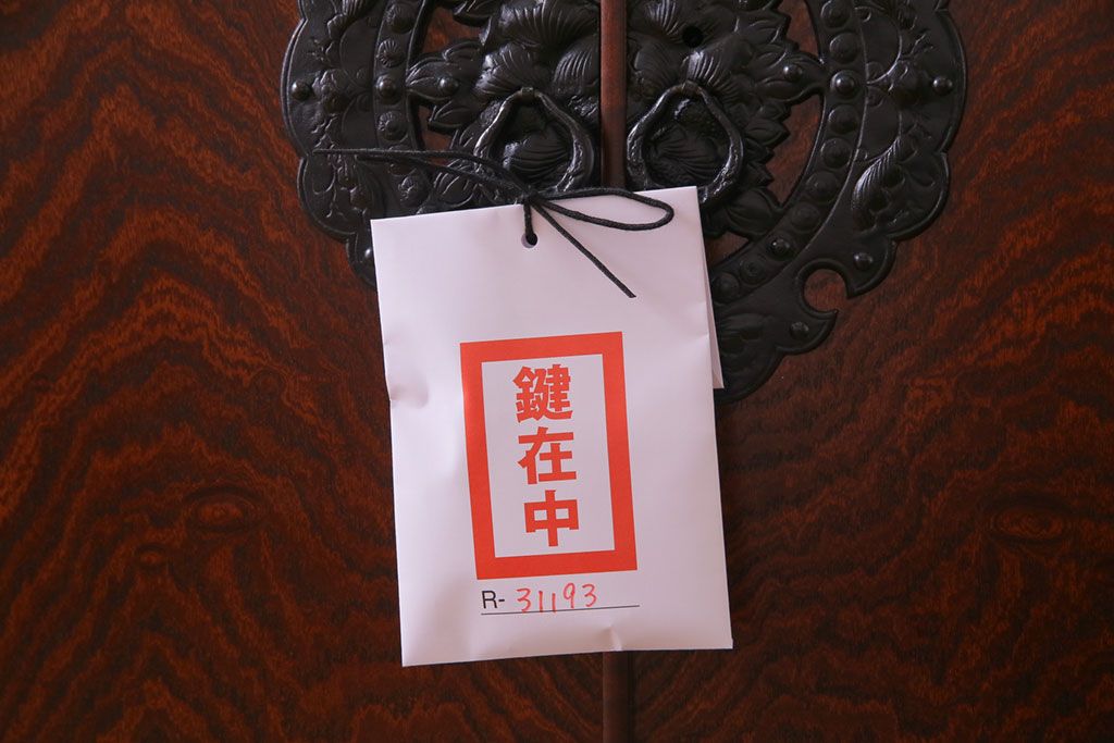 味のある風合いの鍵が付いています。大切な衣類や雑貨をしまう際も安心ですね。