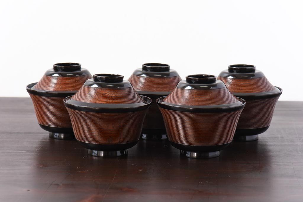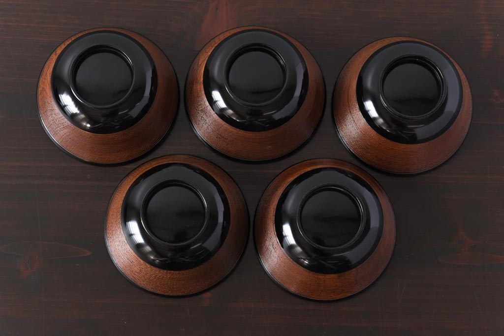【D様ご成約分】和製アンティーク シックな色合いが魅力的な木製糸目椀(漆器、和食器)5客セット(3)
