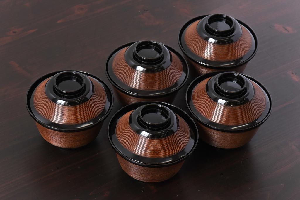 ラフジュ工房> 和食器・茶道具> お椀・茶碗 > 【D様ご成約分】和製アンティーク シックな色合いが魅力的な木製糸目椀(漆器、和食器)5客セット(3)