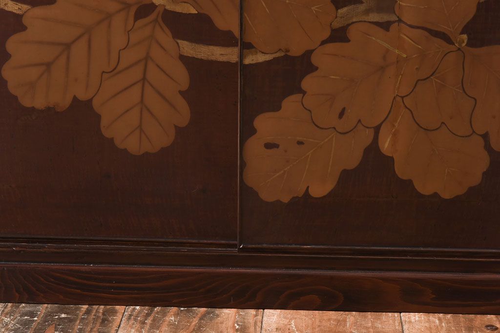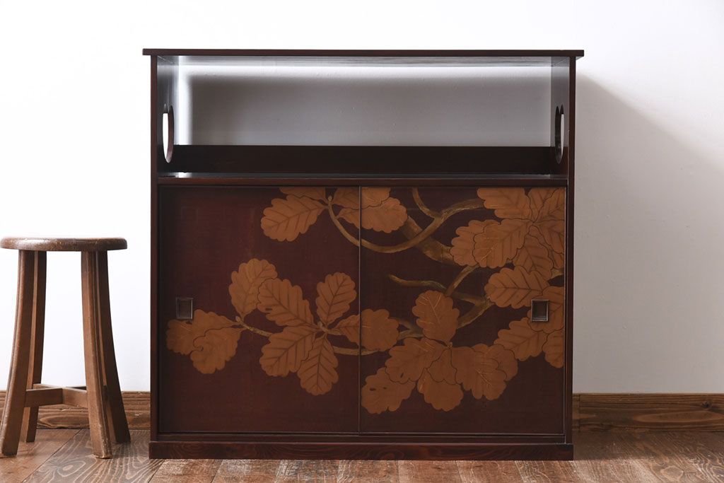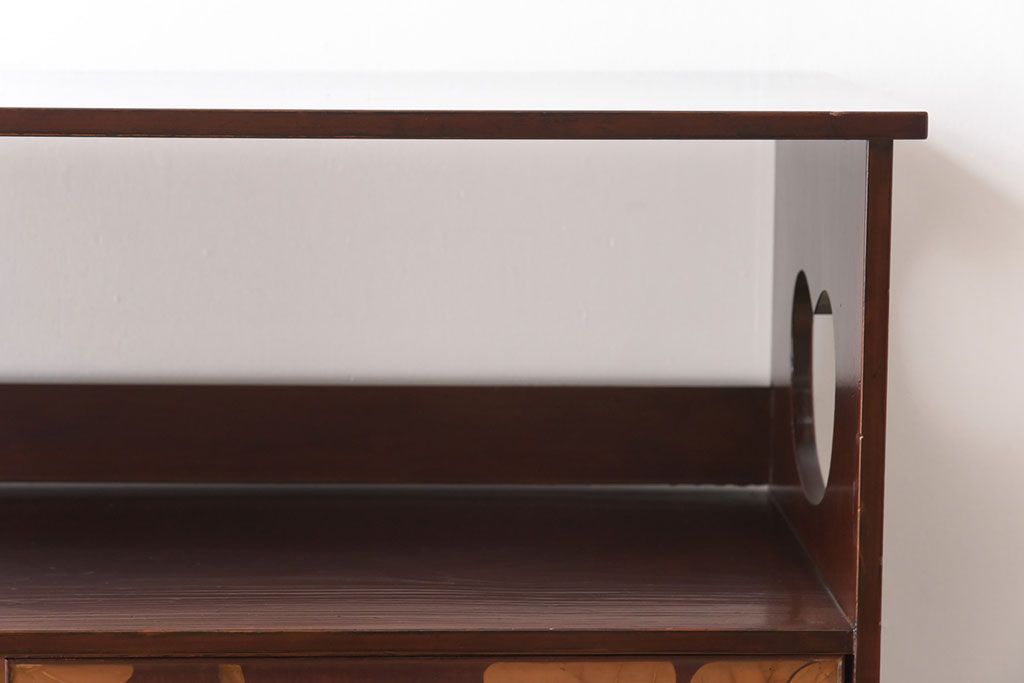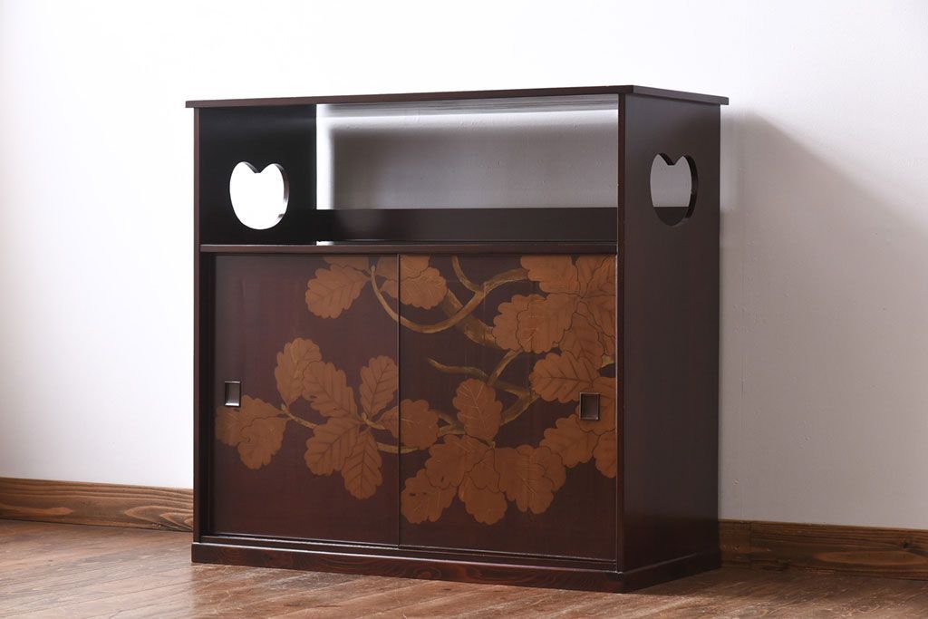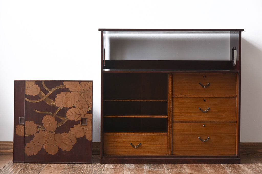 ラフジュ工房> 和箪笥> 茶箪笥・茶棚 > アンティーク家具 和製アンティーク 蒔絵 渋い色味が魅力的な日本風情を感じる茶棚(飾り棚)
