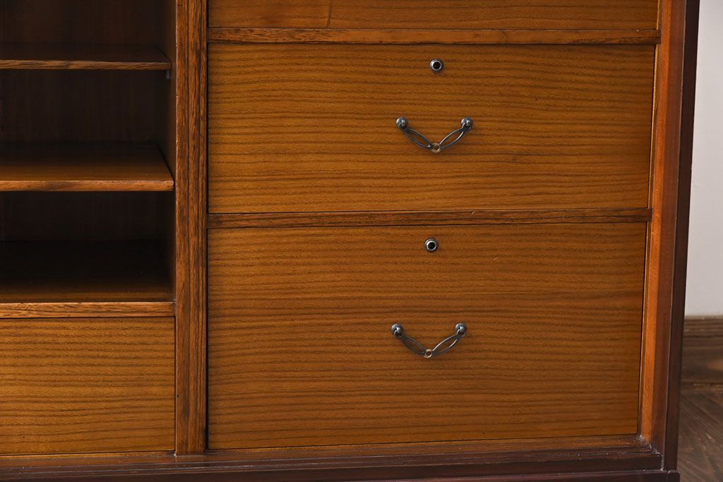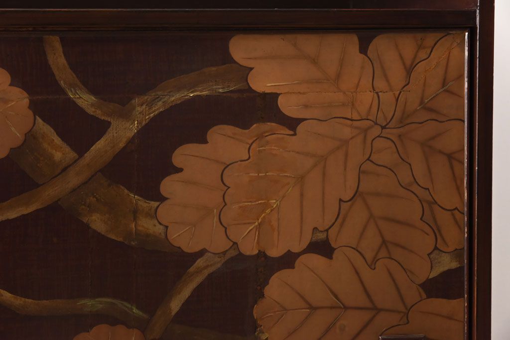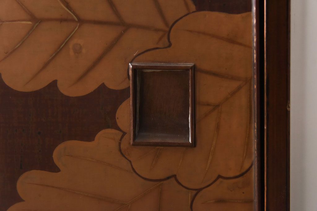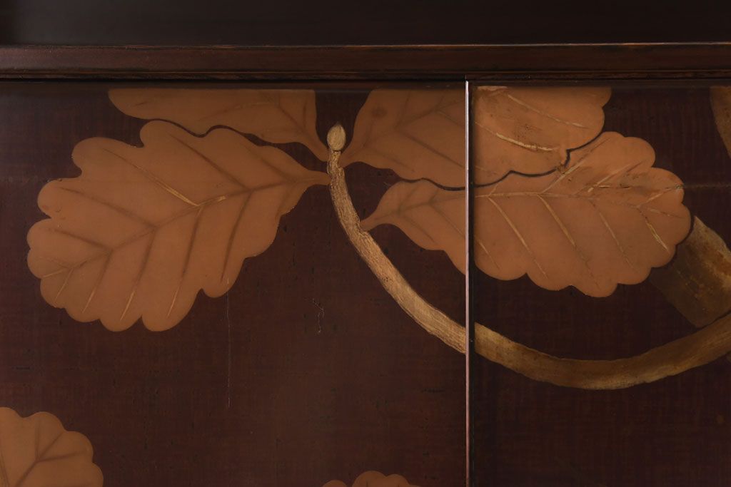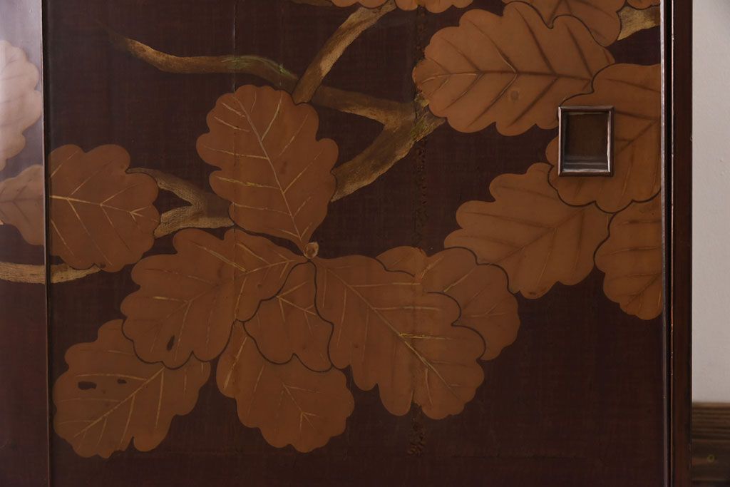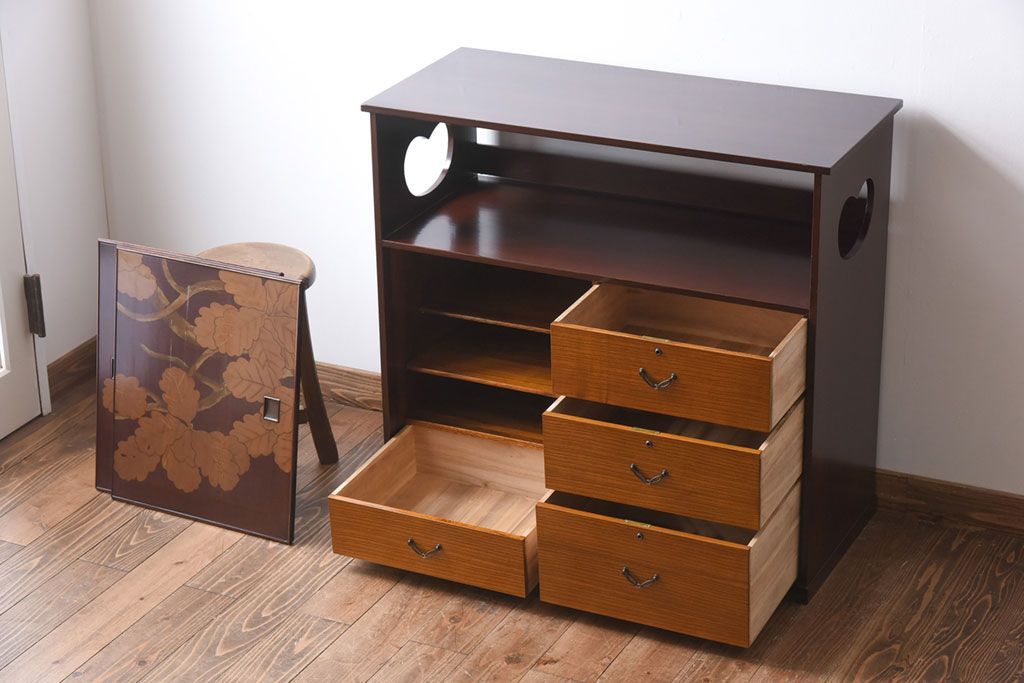 ラフジュ工房> 和箪笥> 茶箪笥・茶棚 > アンティーク家具 和製アンティーク 蒔絵 渋い色味が魅力的な日本風情を感じる茶棚(飾り棚)
