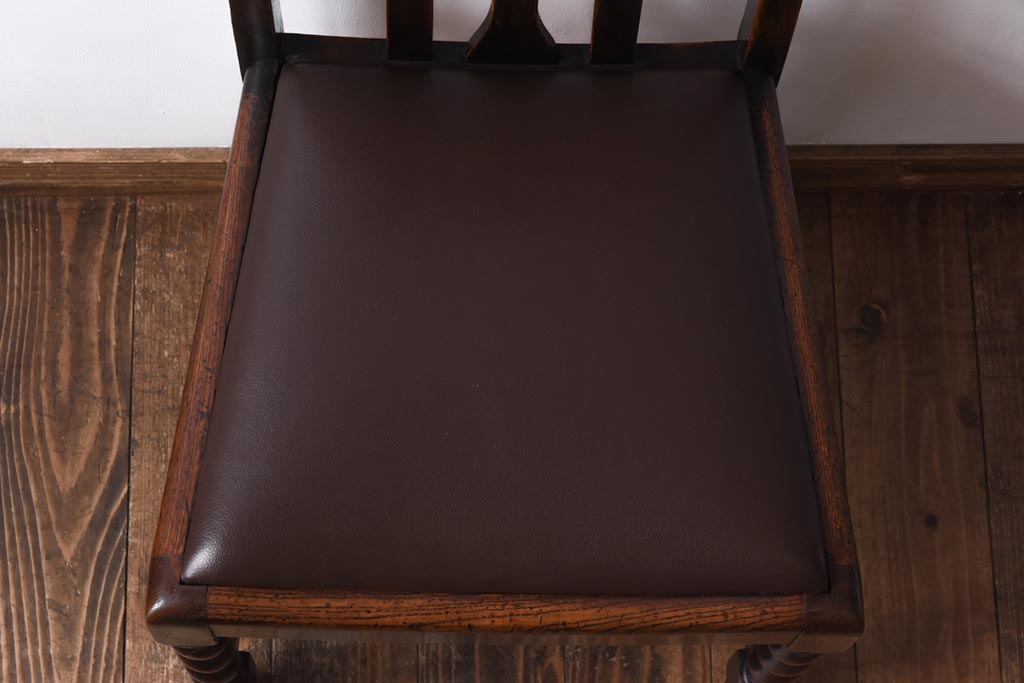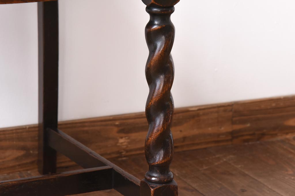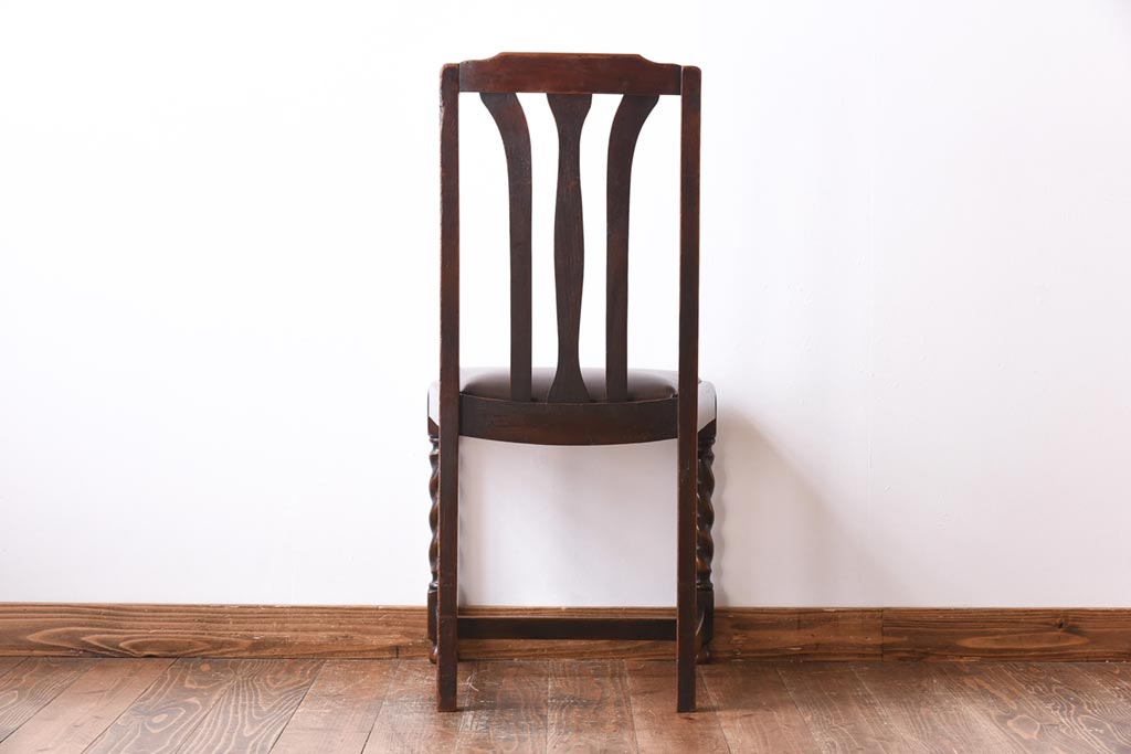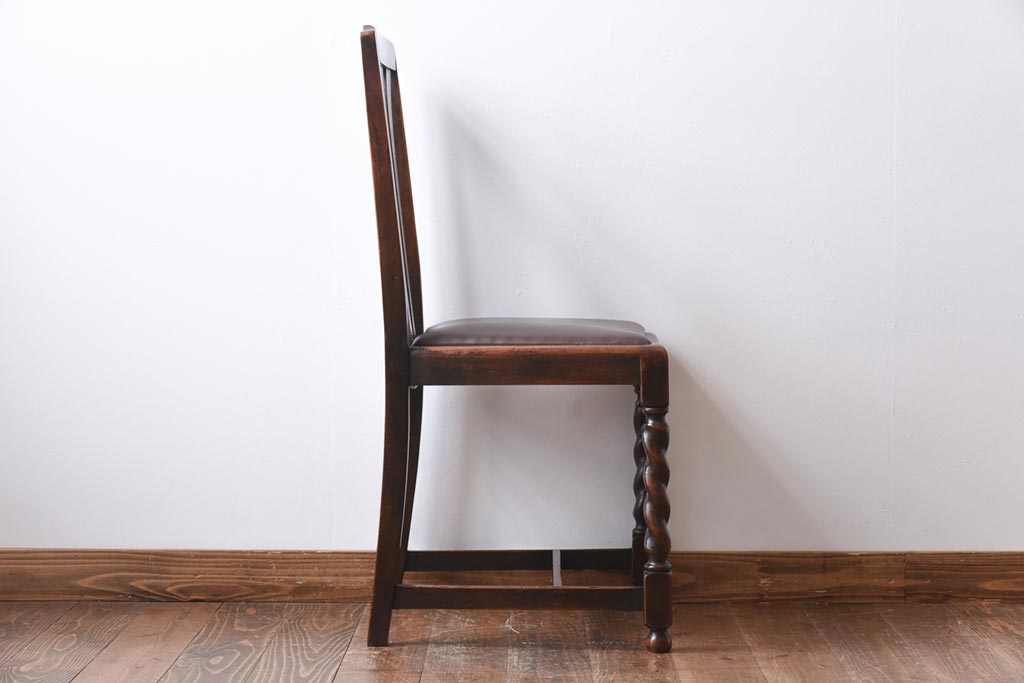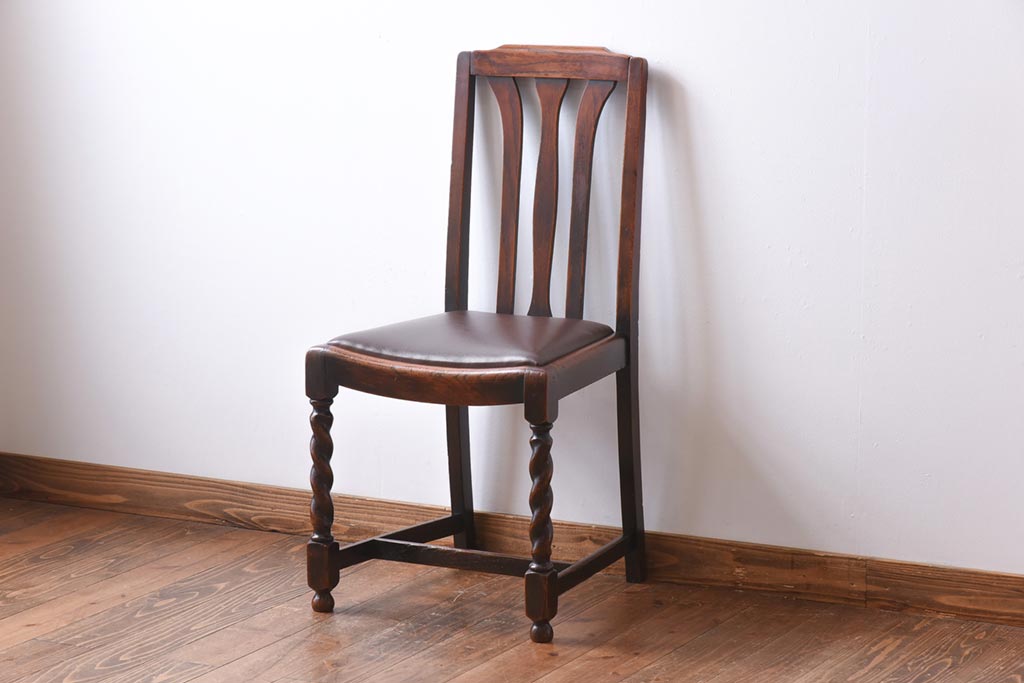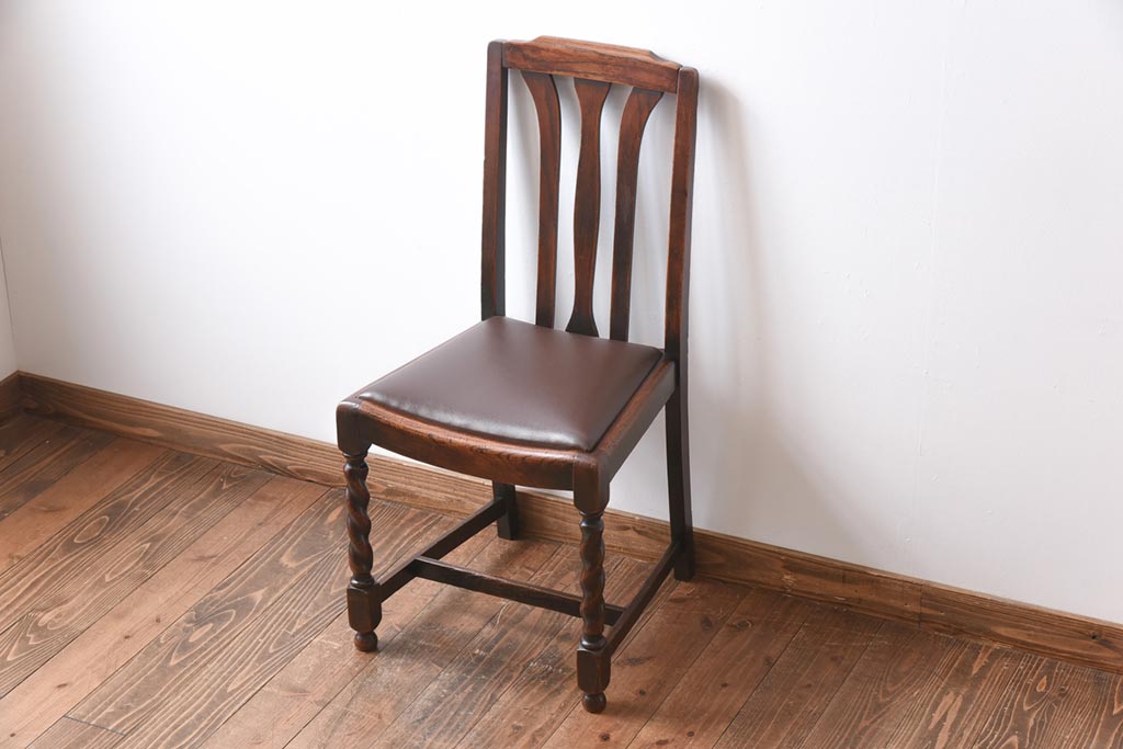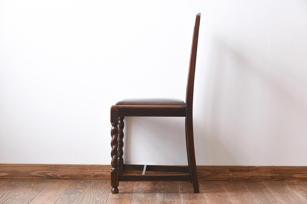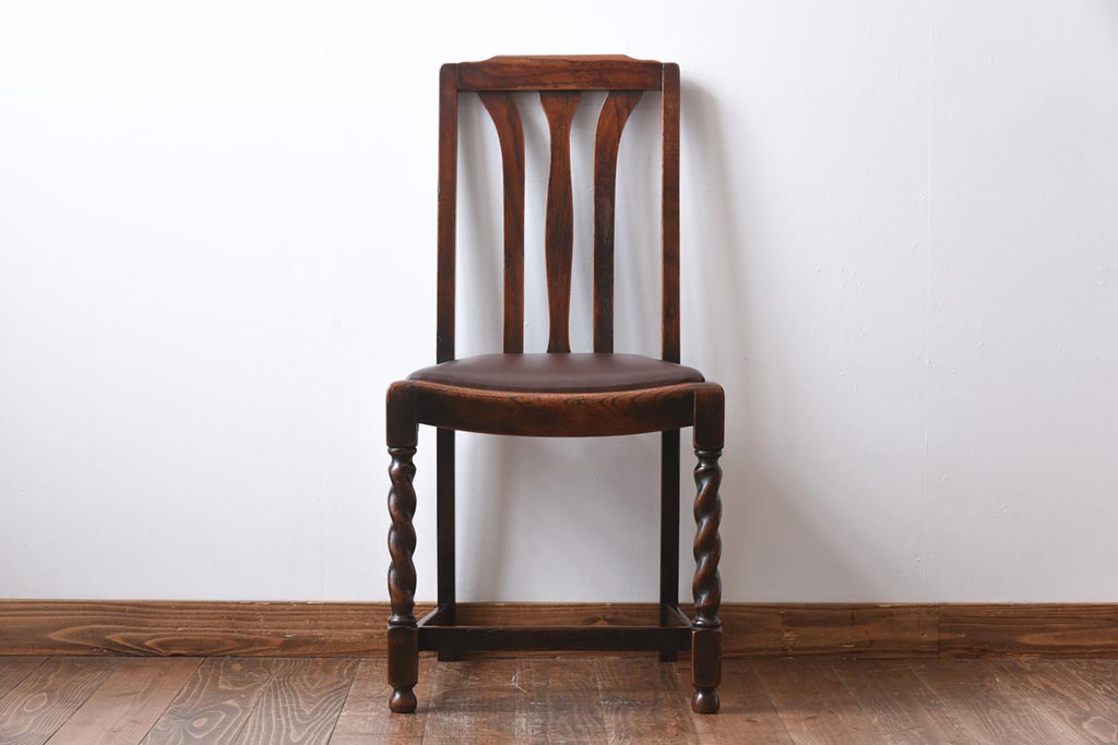 アンティーク家具 イギリスアンティーク オーク材 ツイストレッグが目を引くシックなダイニングチェア(ワークチェア、椅子)