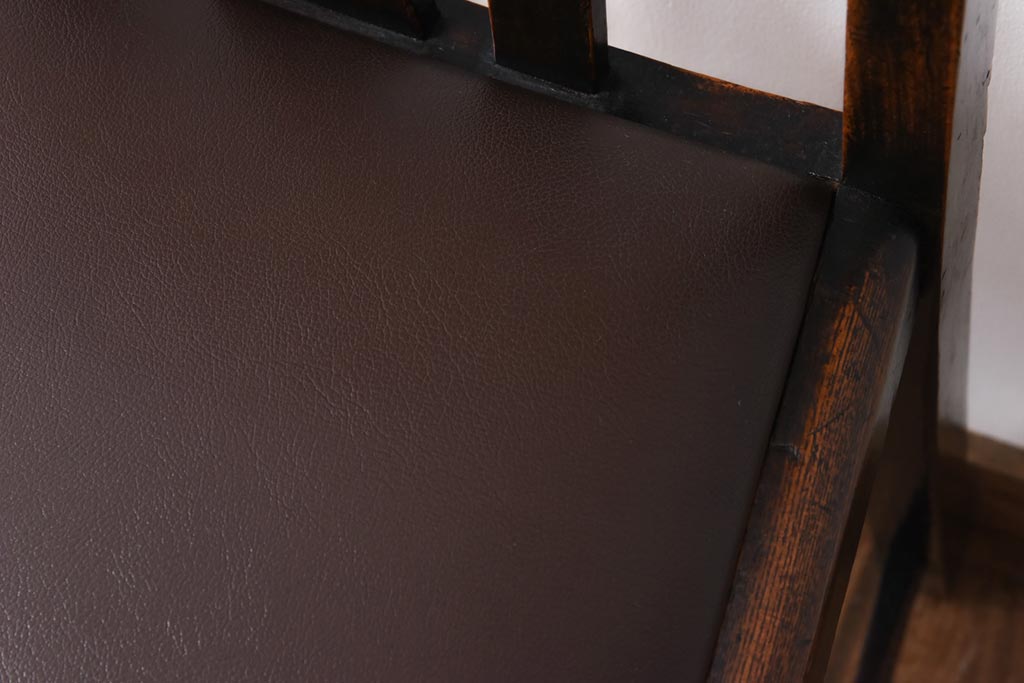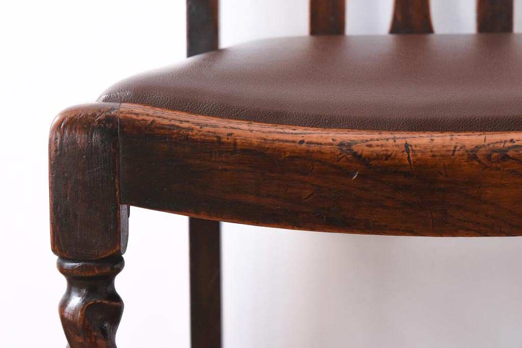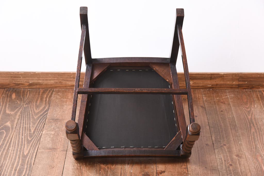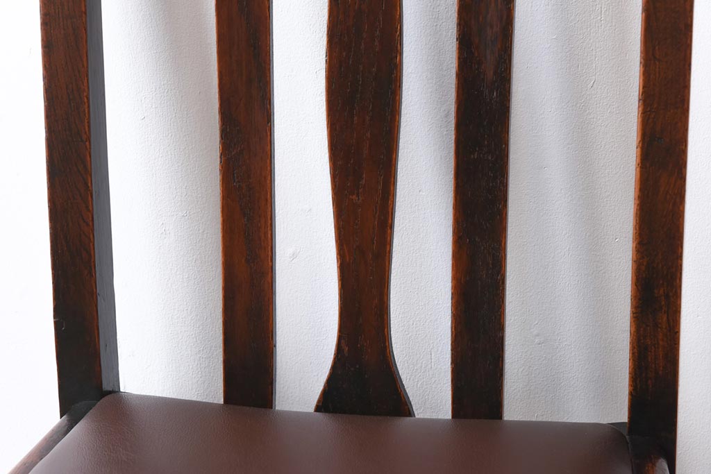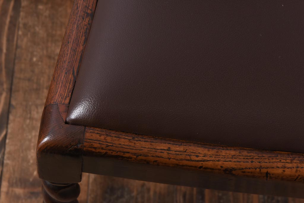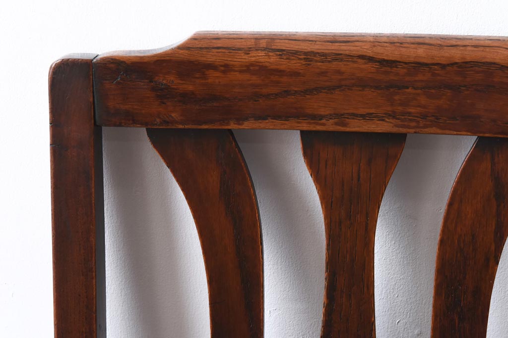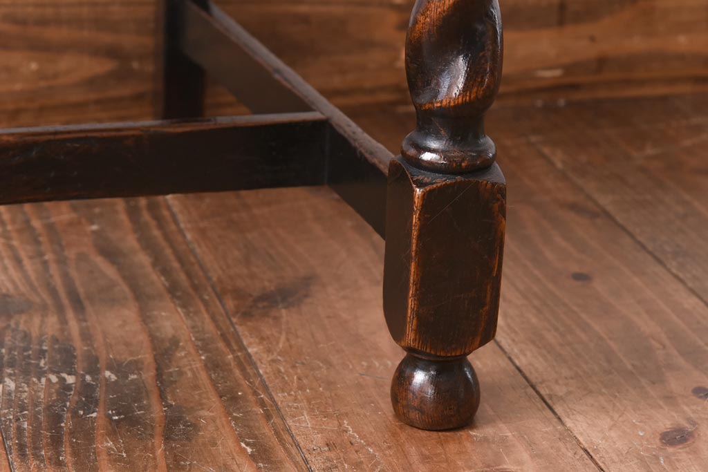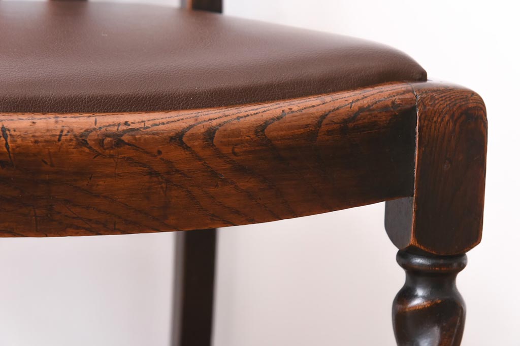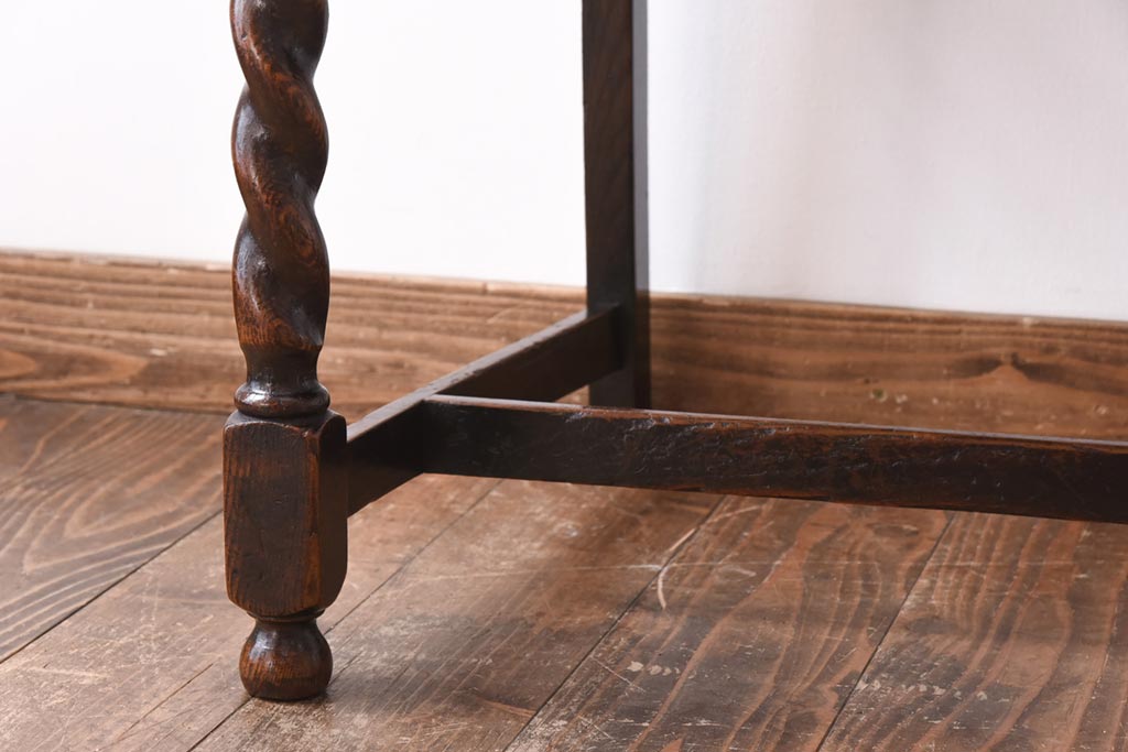 アンティーク家具 イギリスアンティーク オーク材 ツイストレッグが目を引くシックなダイニングチェア(ワークチェア、椅子)