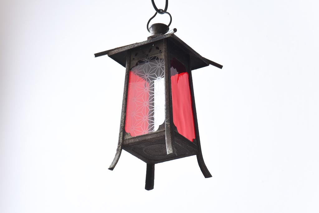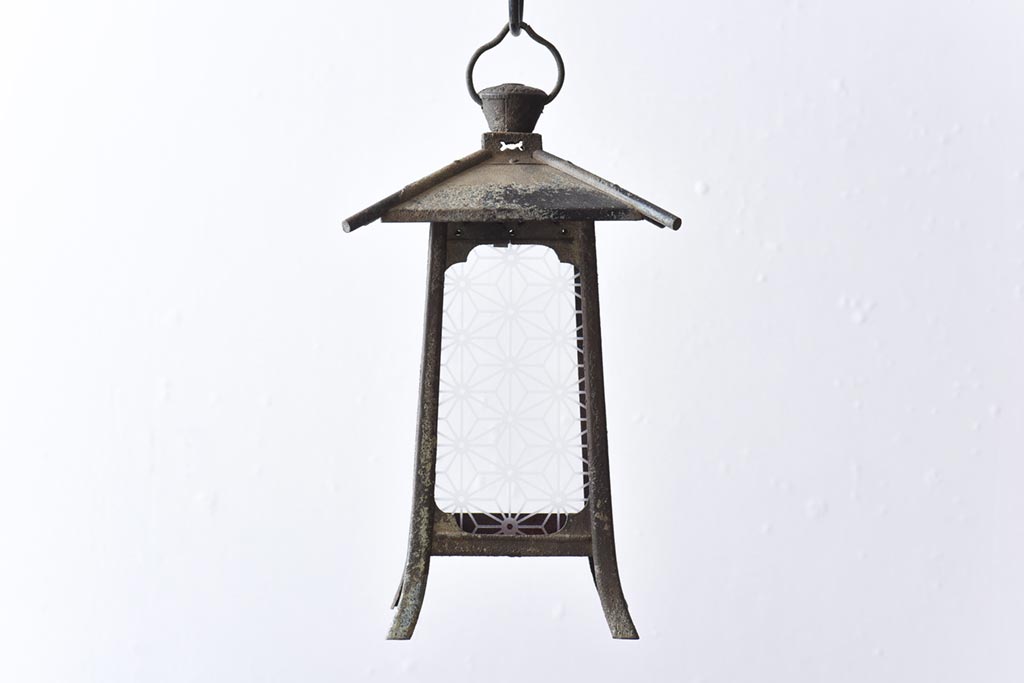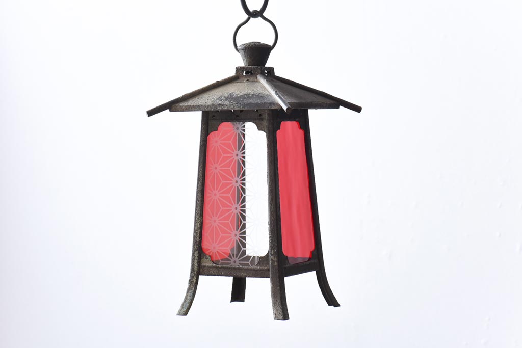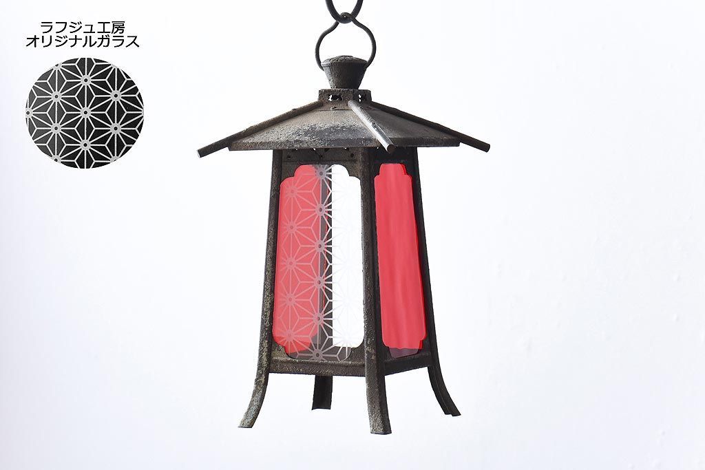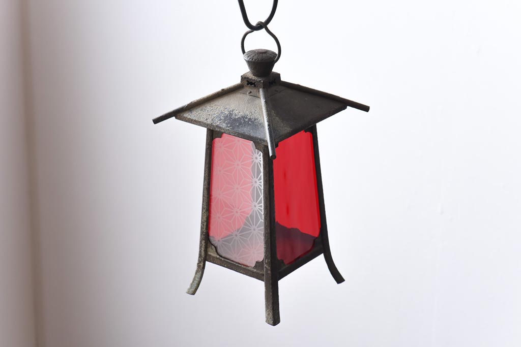 ラフジュ工房> 照明・ランプ> ペンダントライト > アンティーク雑貨 リメイク ラフジュオリジナルガラス入り 銅製灯籠(照明、ディスプレイ)