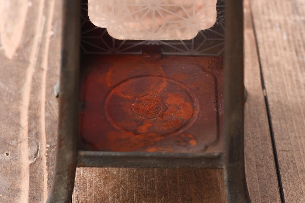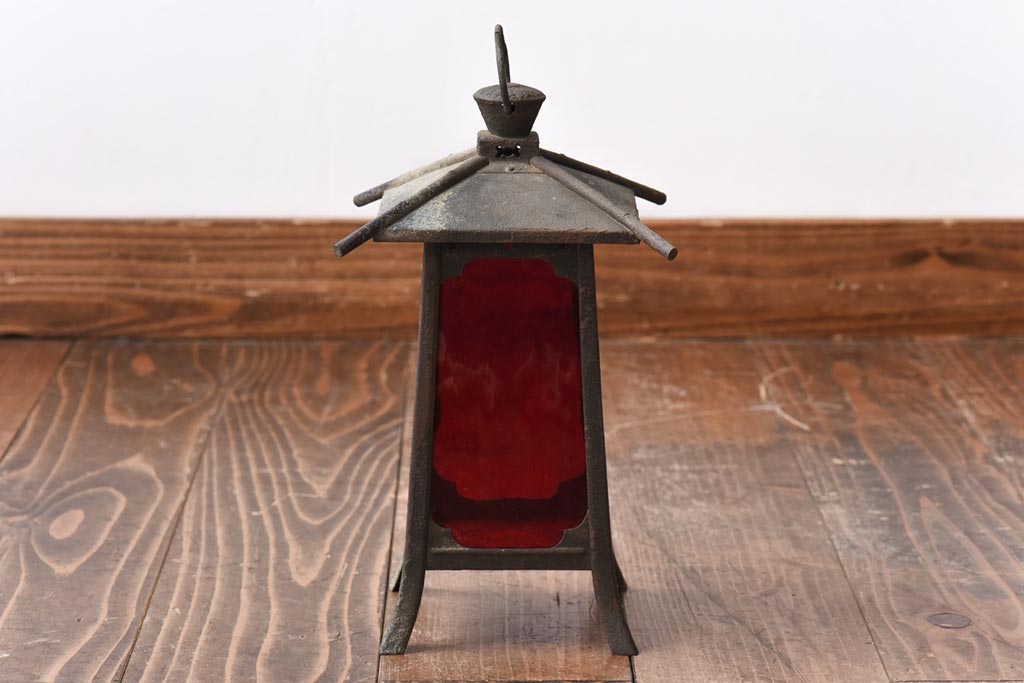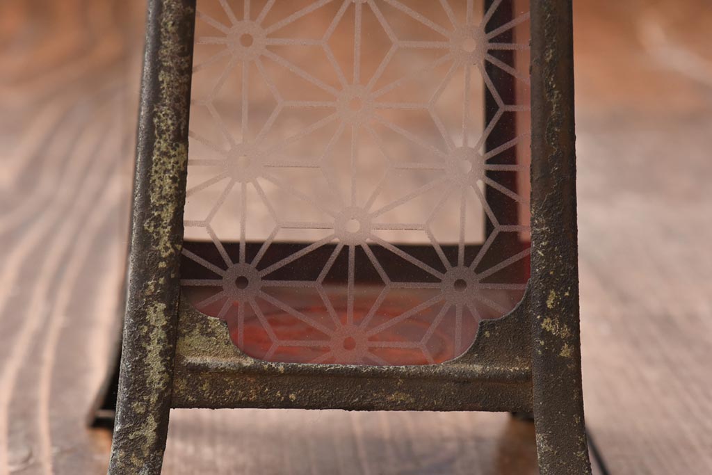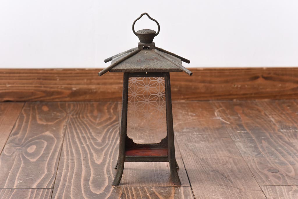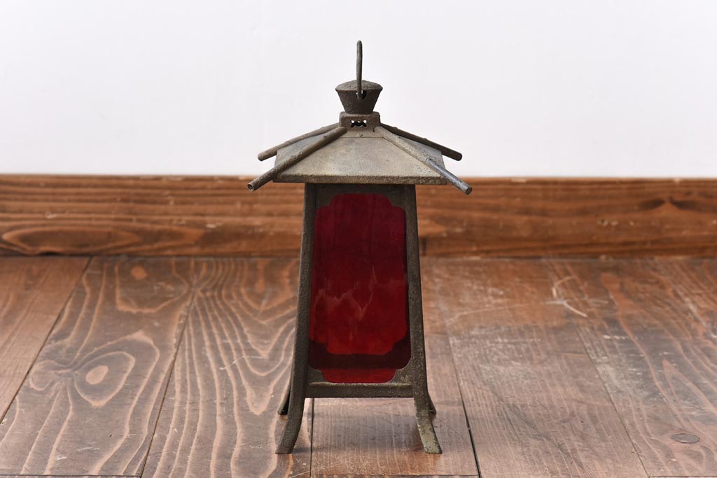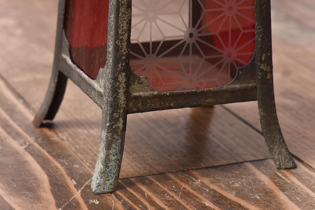 アンティーク雑貨 リメイク ラフジュオリジナルガラス入り 銅製灯籠(照明、ディスプレイ)