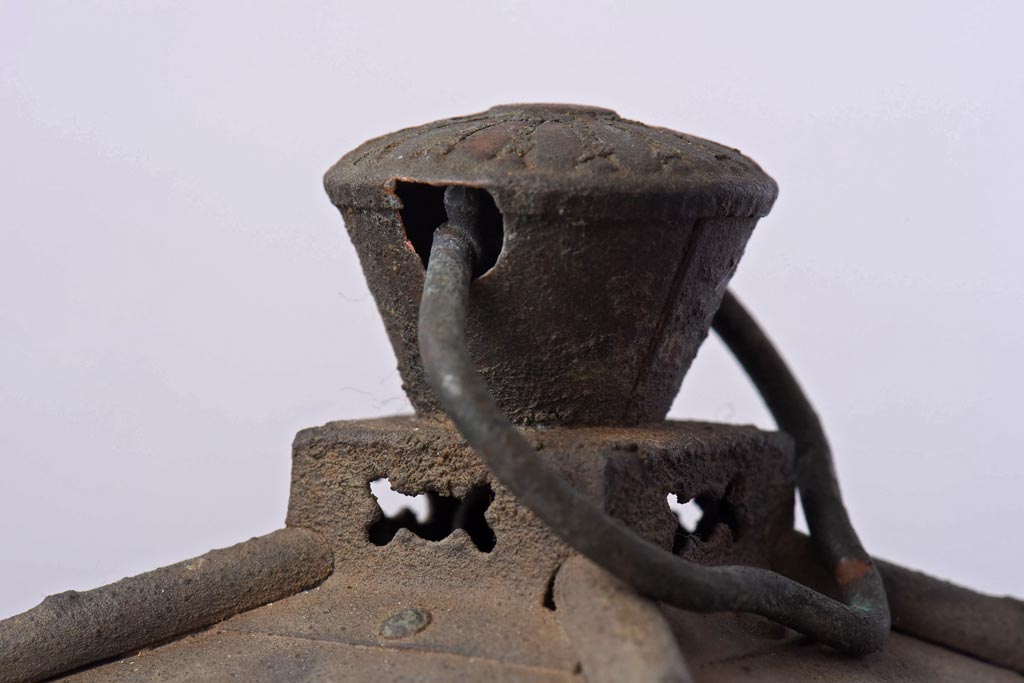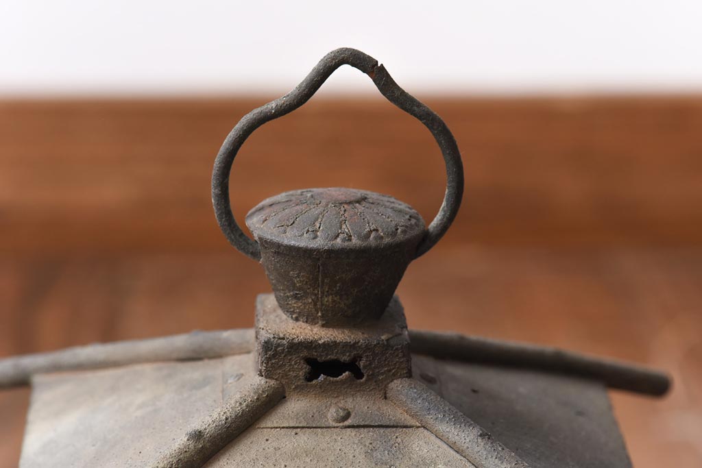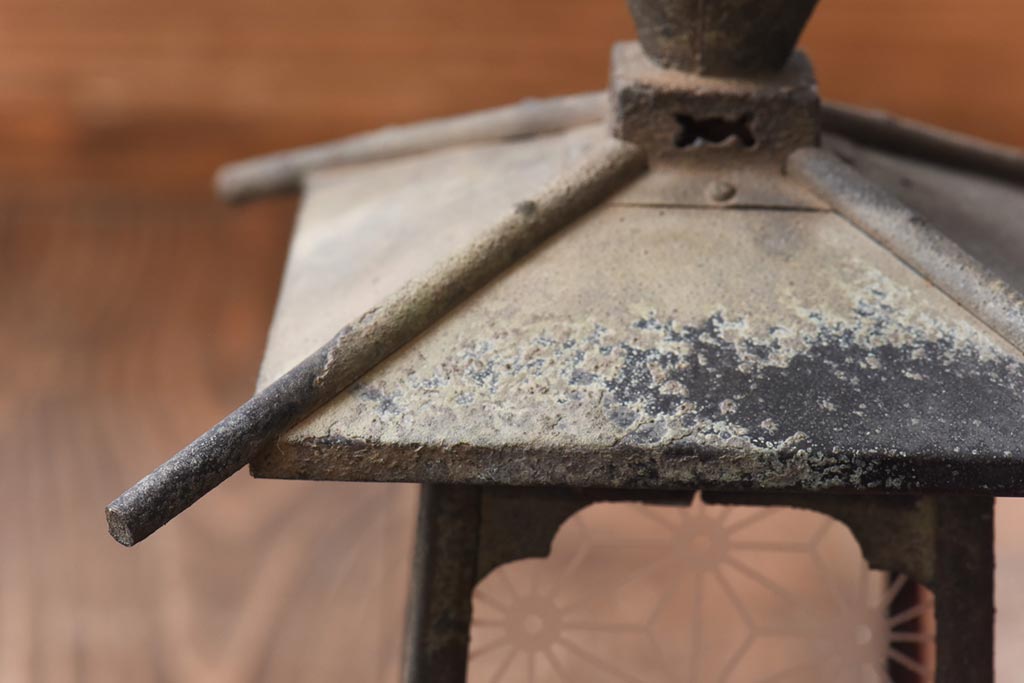 ラフジュ工房> 照明・ランプ> 灯籠・提灯・行灯 > アンティーク雑貨 リメイク ラフジュオリジナルガラス入り 銅製灯籠(照明、ディスプレイ)