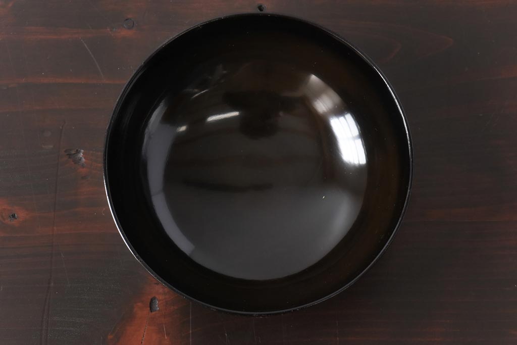 ラフジュ工房> 骨董・美術品> 骨董-漆器 > 和製アンティーク アジアンな図柄が目を引く蓋付き木製椀(漆器、和食器)4客セット