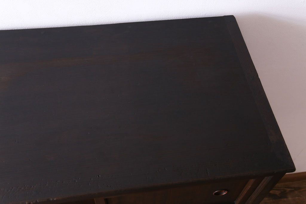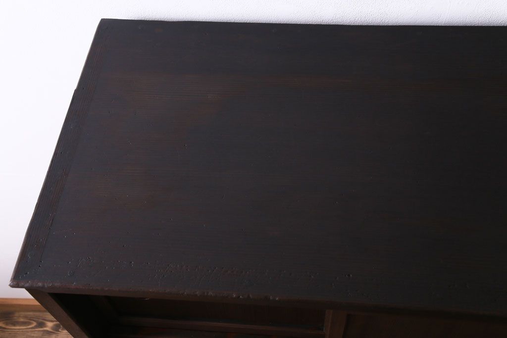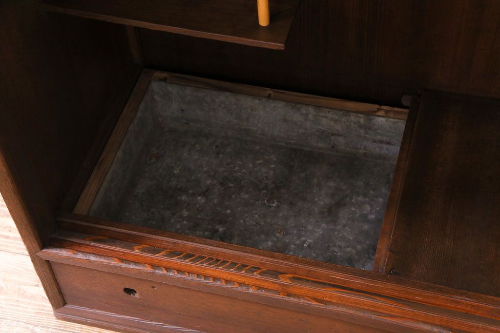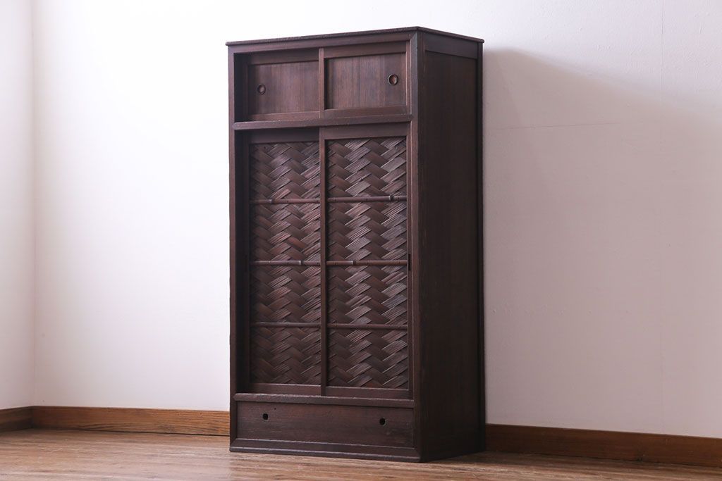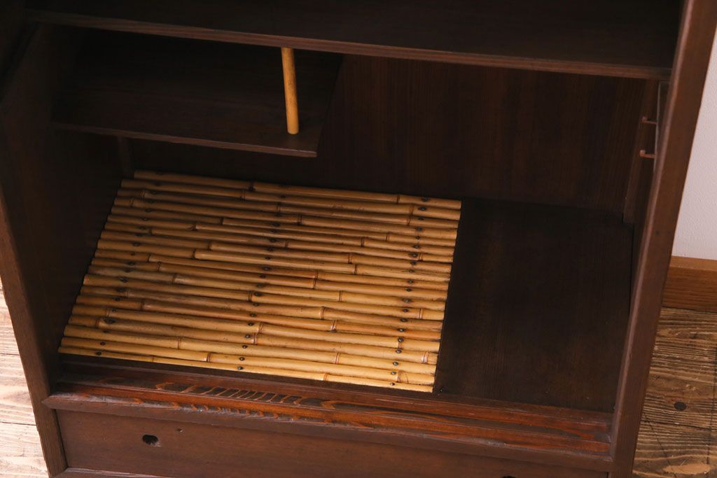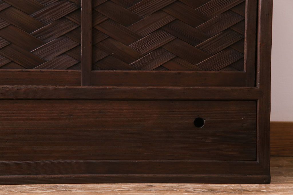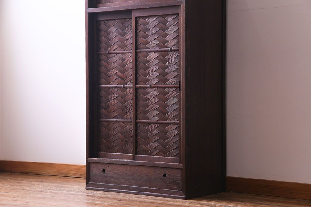 和箪笥 > アンティーク家具 昭和期 網代編みの引き戸が美しい渋い味わいの置き水屋(茶水屋、茶棚)