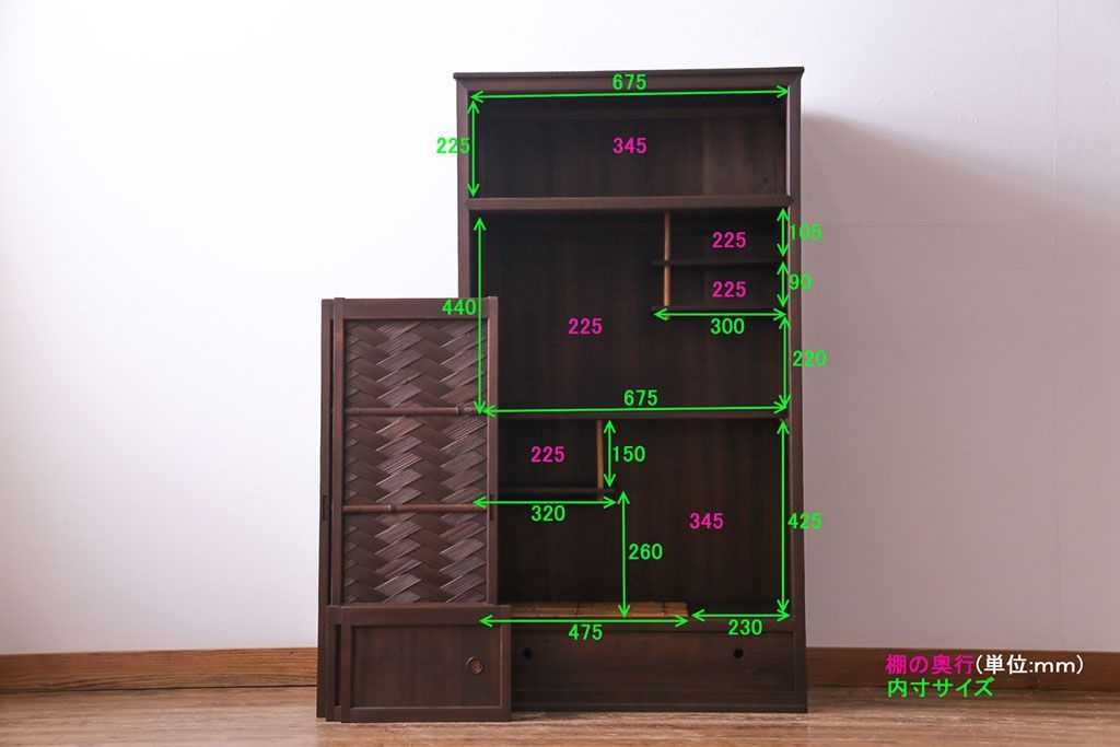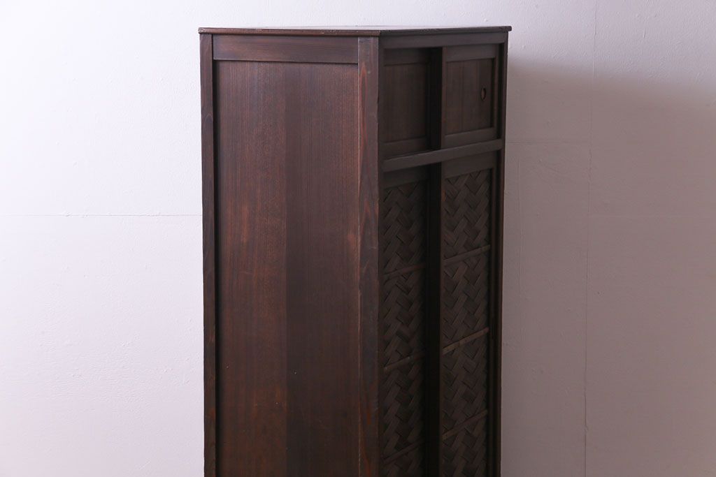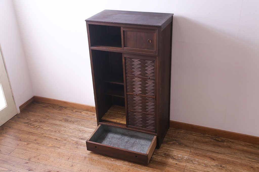 アンティーク家具 昭和期 網代編みの引き戸が美しい渋い味わいの置き水屋(茶水屋、茶棚)