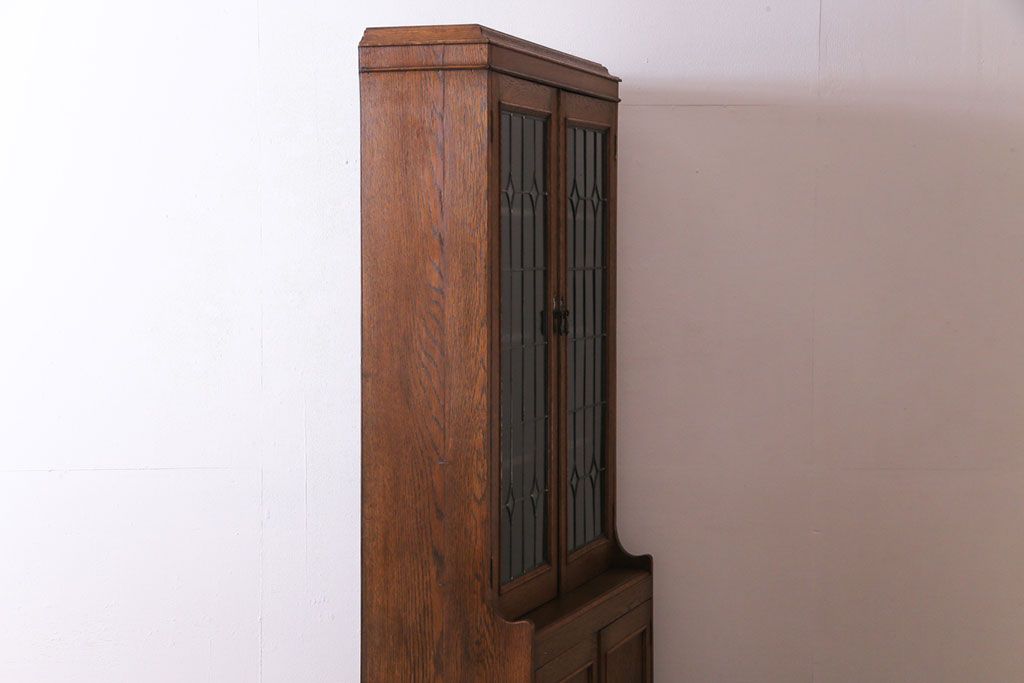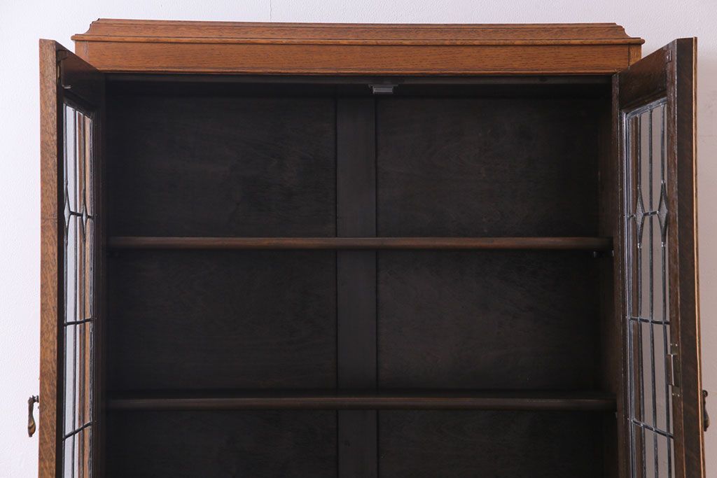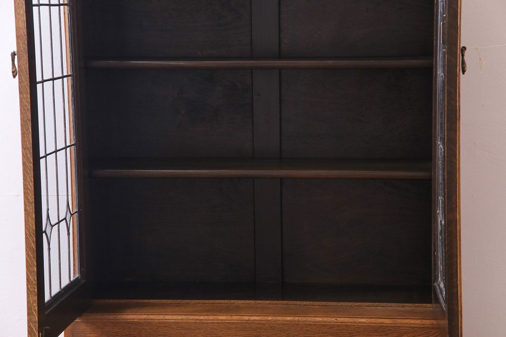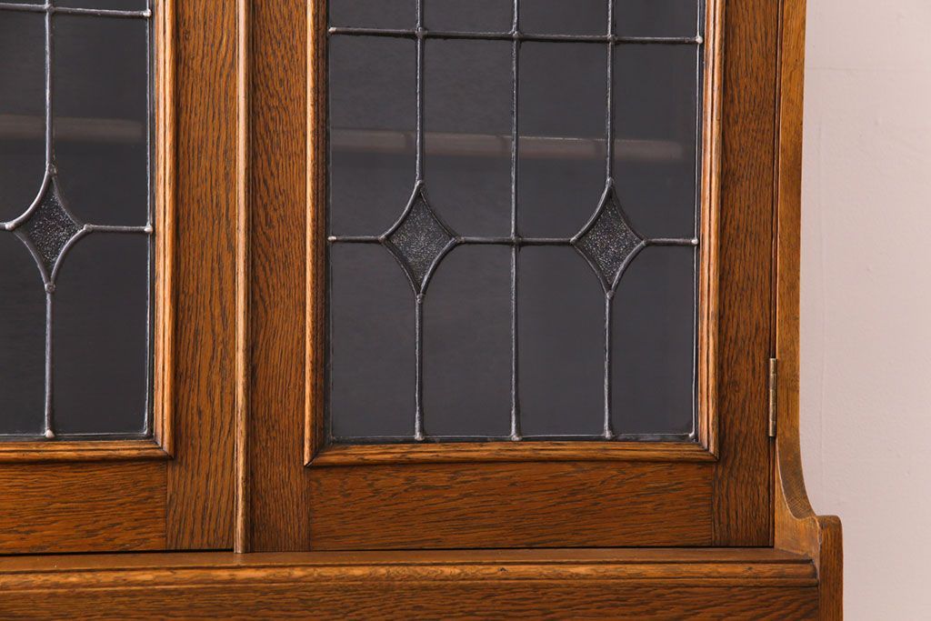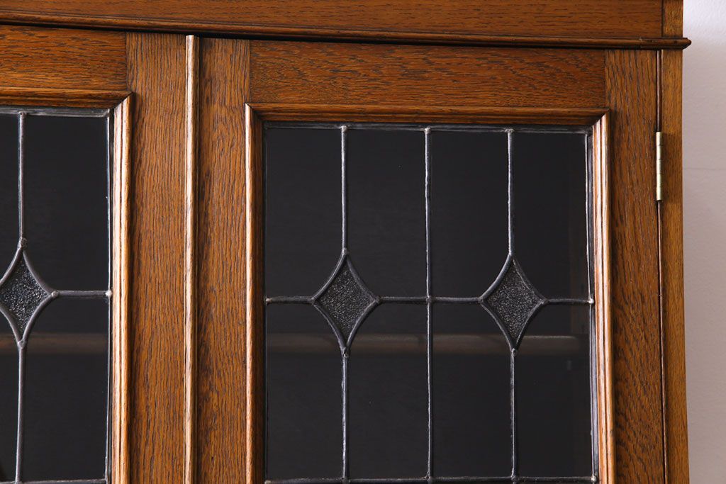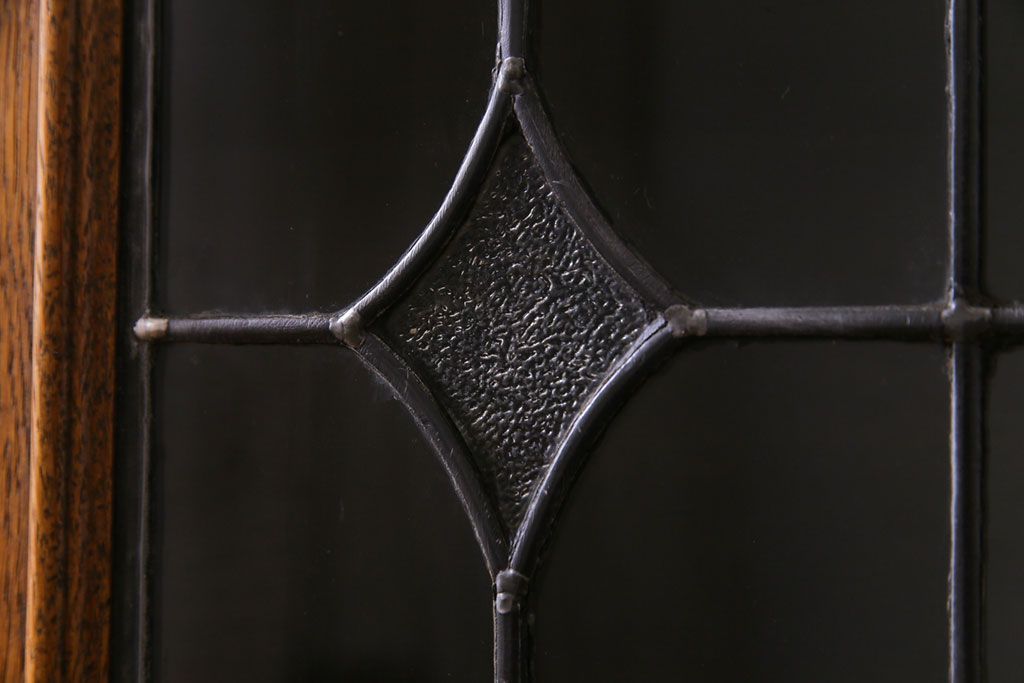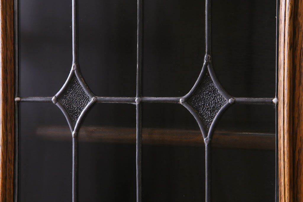 アンティーク家具 イギリスアンティーク オーク材 ステンドグラスがお洒落なブックケース(収納棚、キャビネット)