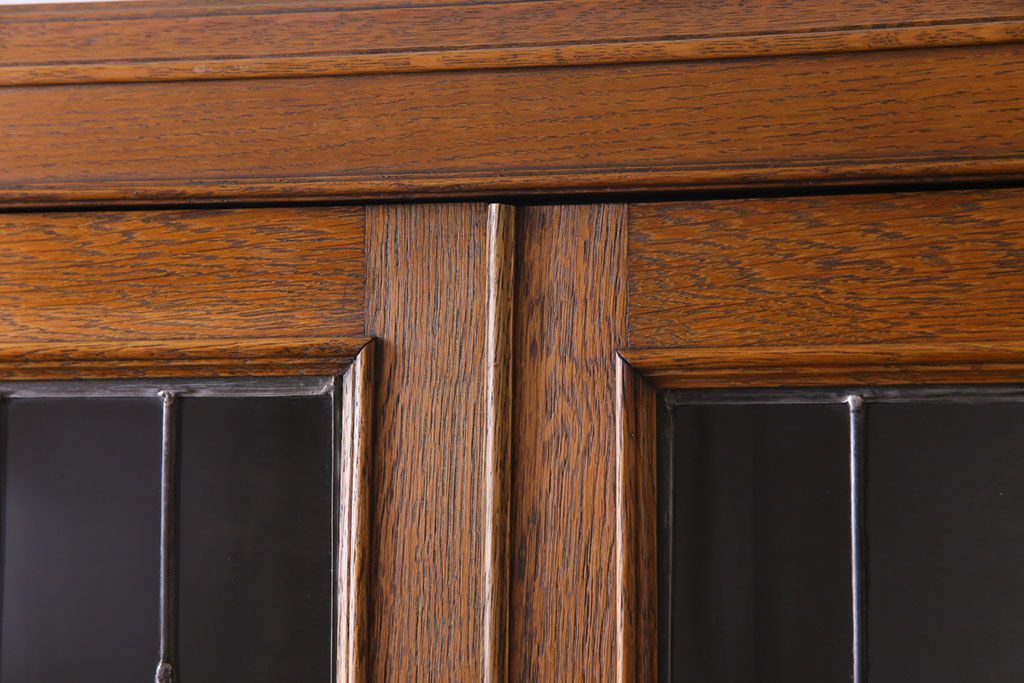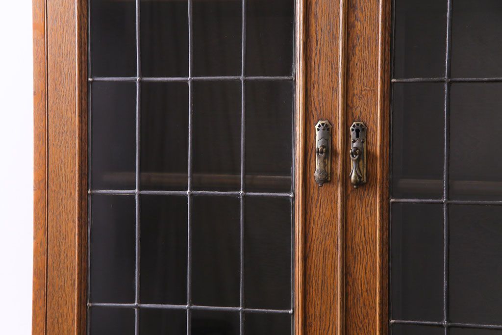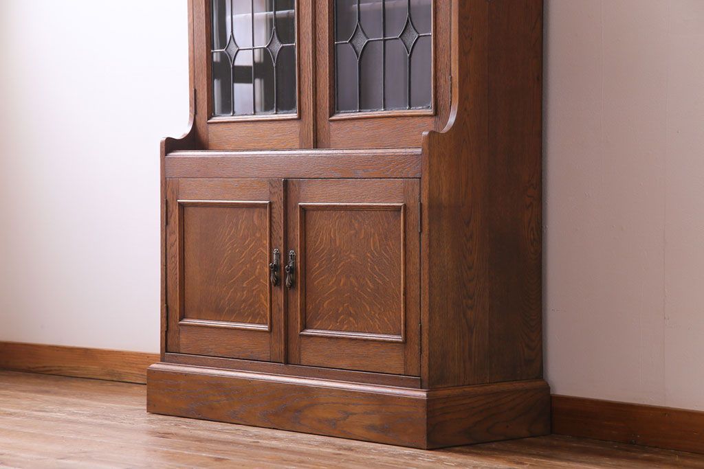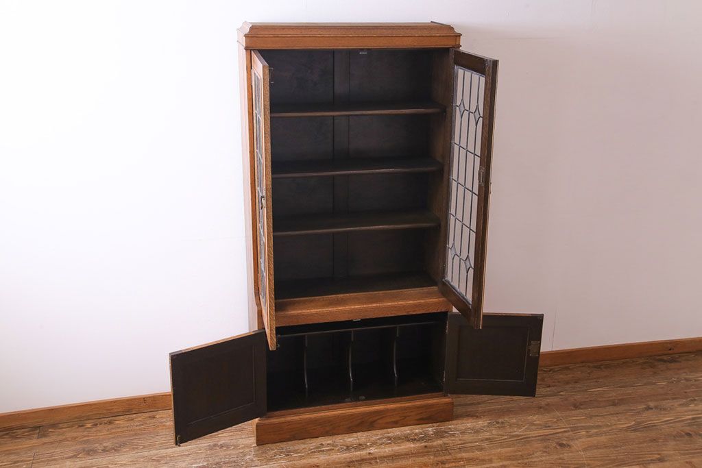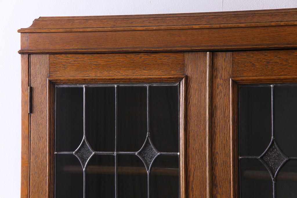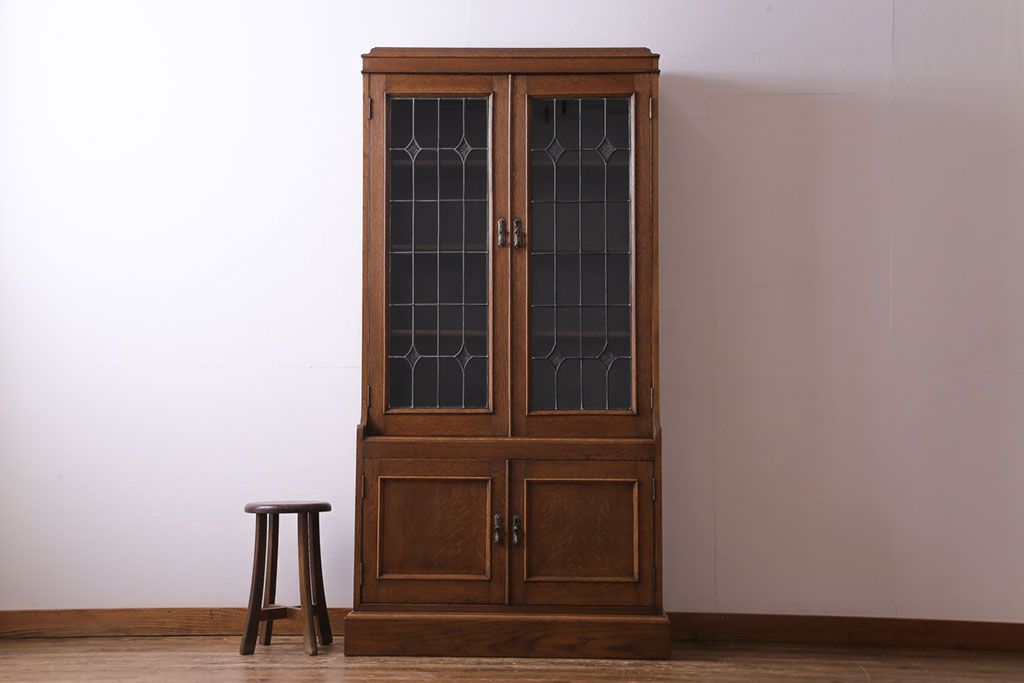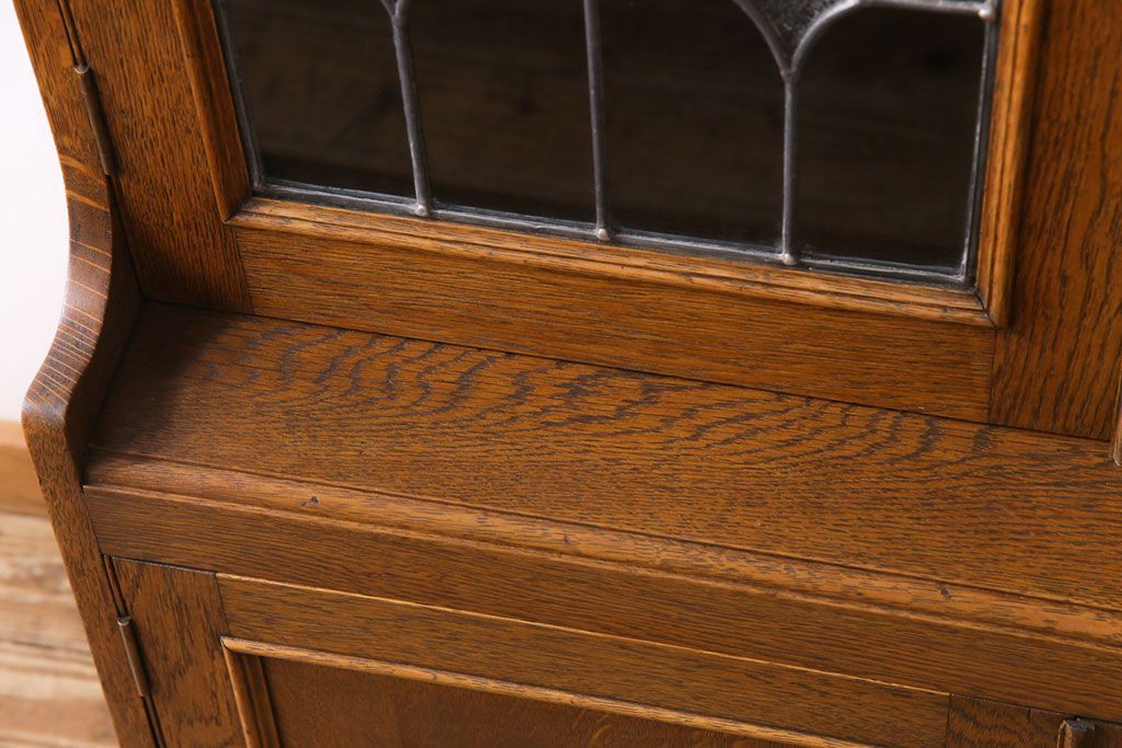 アンティーク家具 イギリスアンティーク オーク材 ステンドグラスがお洒落なブックケース(収納棚、キャビネット)