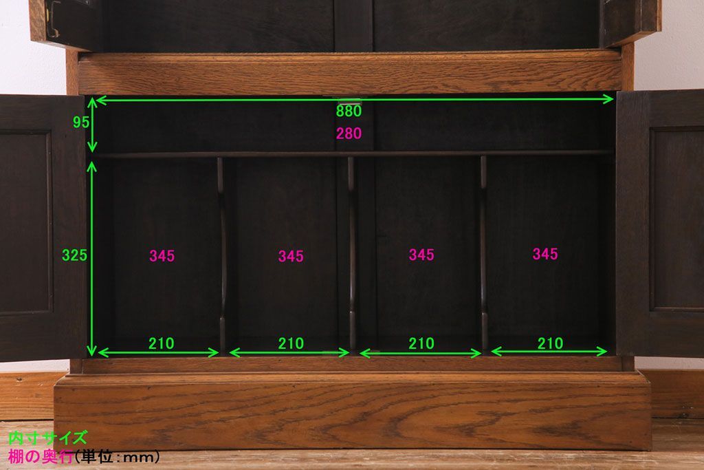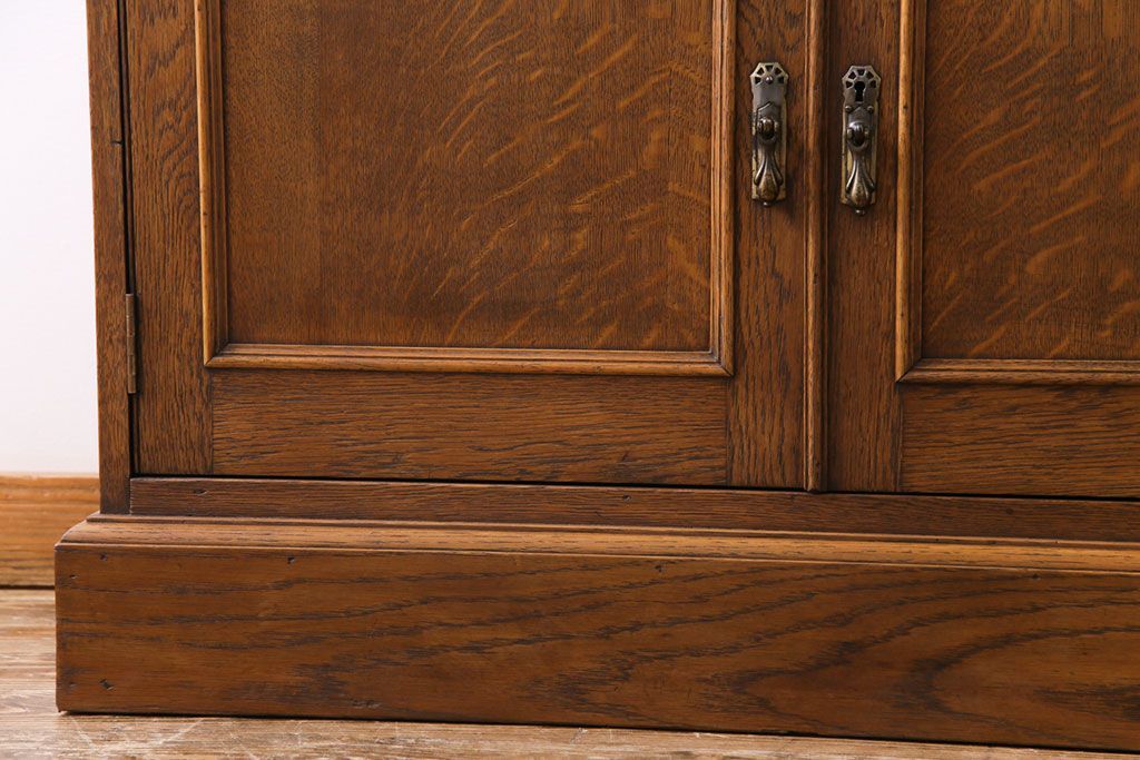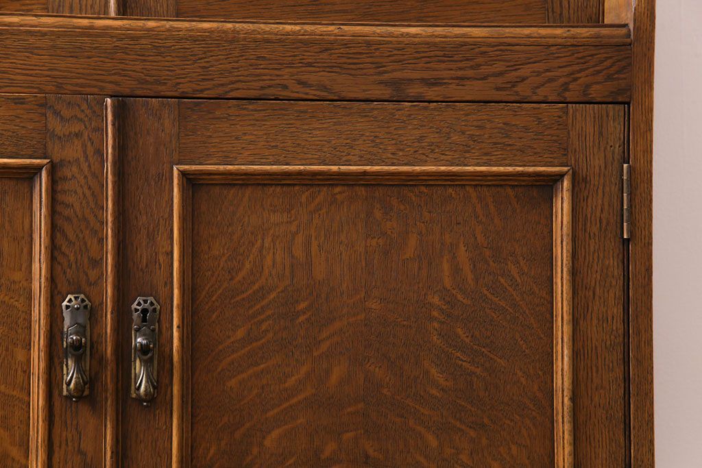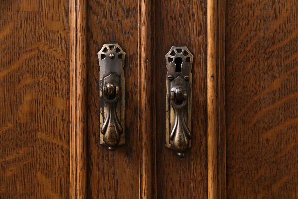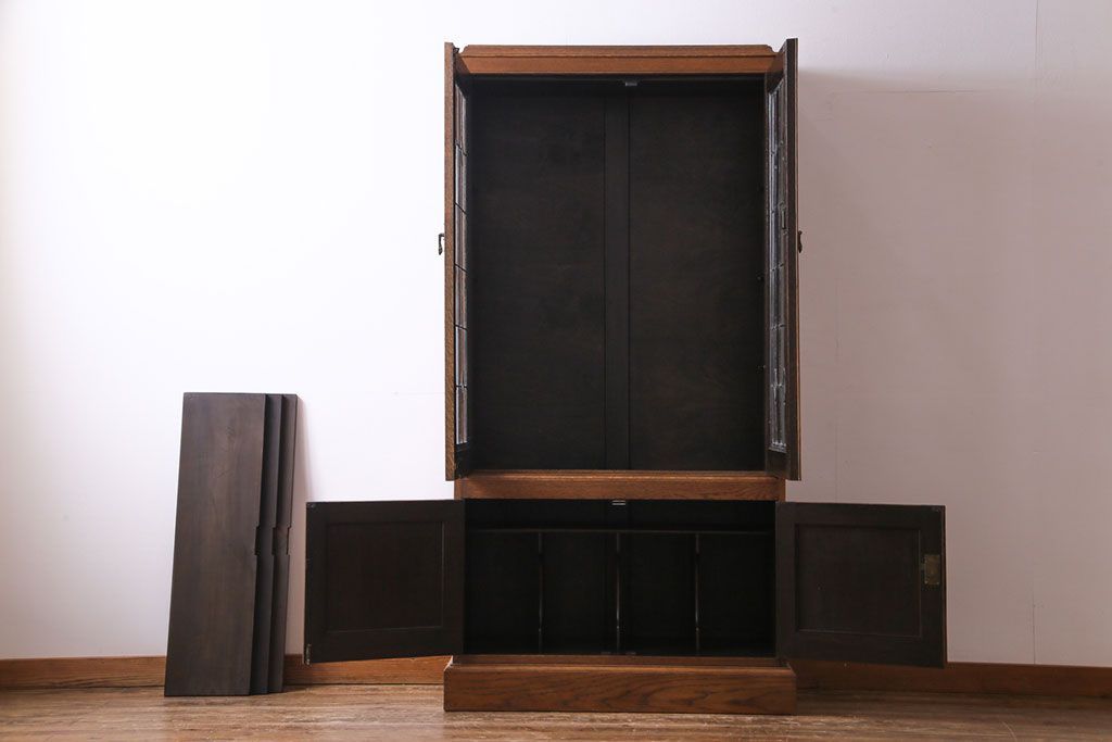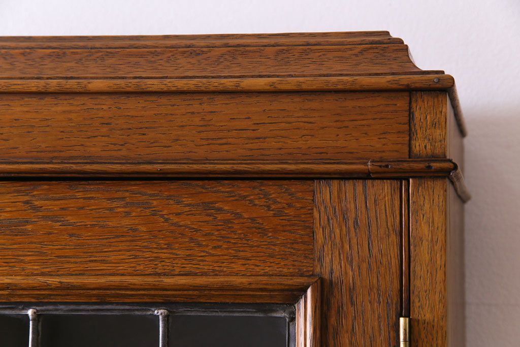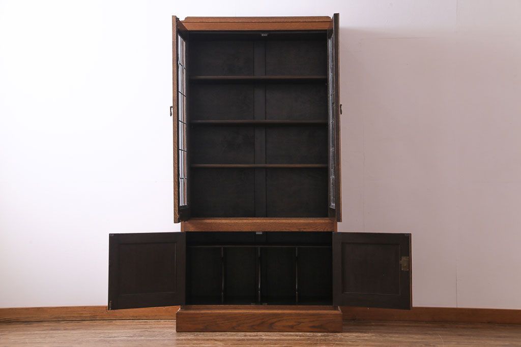 アンティーク家具 イギリスアンティーク オーク材 ステンドグラスがお洒落なブックケース(収納棚、キャビネット)