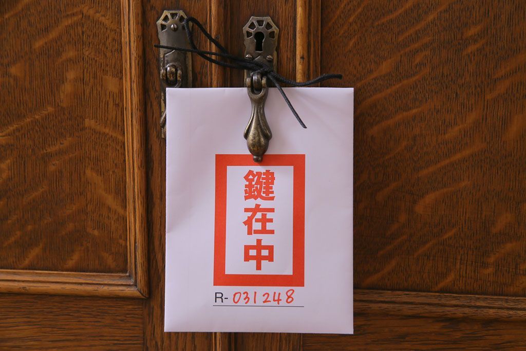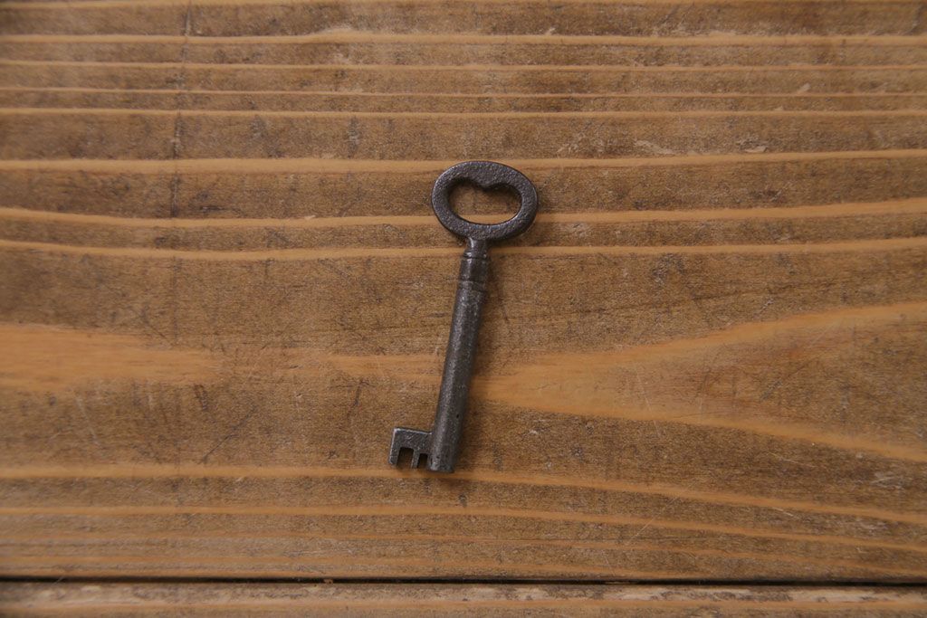 上段のみ鍵は付属します。画像にありますように、袋に入れお付けします。スムーズに動くように調整していますが、あくまでも古いものや中古品ですので、長期の使用保証は出来かねます。ご購入後不具合が発生した場合は、当店でサポートさせていただきますので、お気軽にご相談くださいませ。