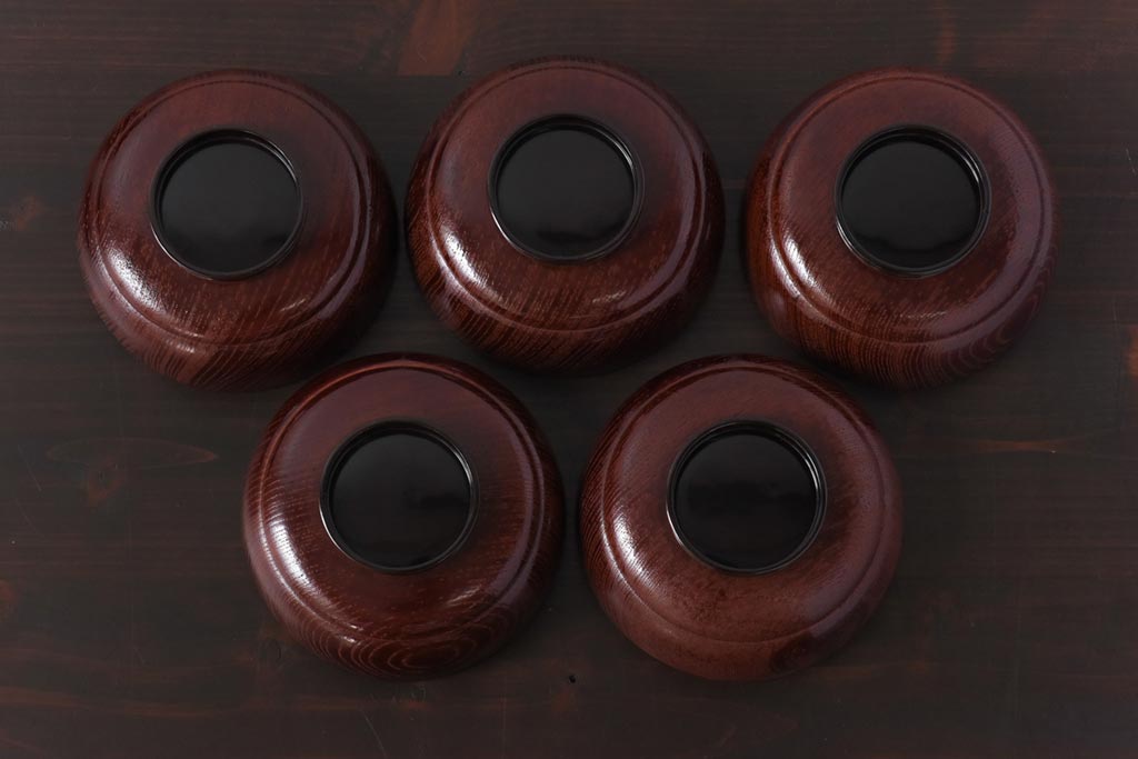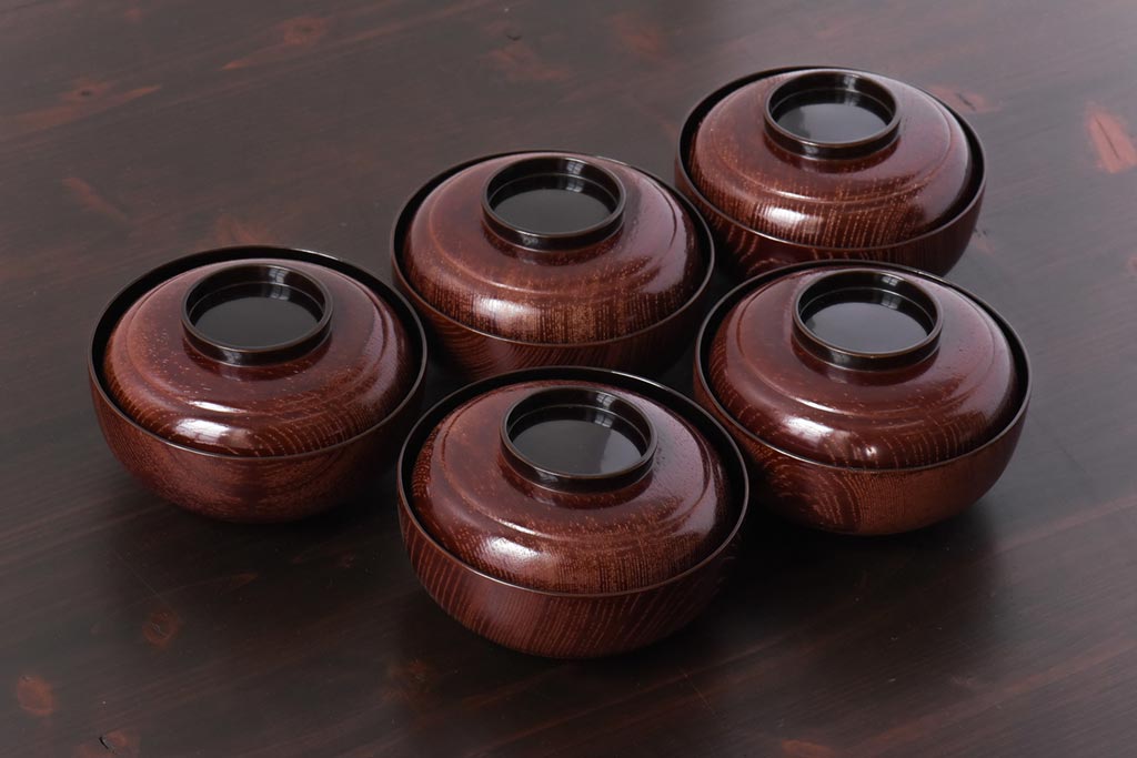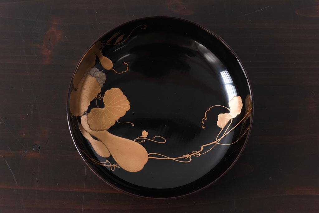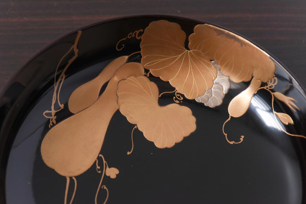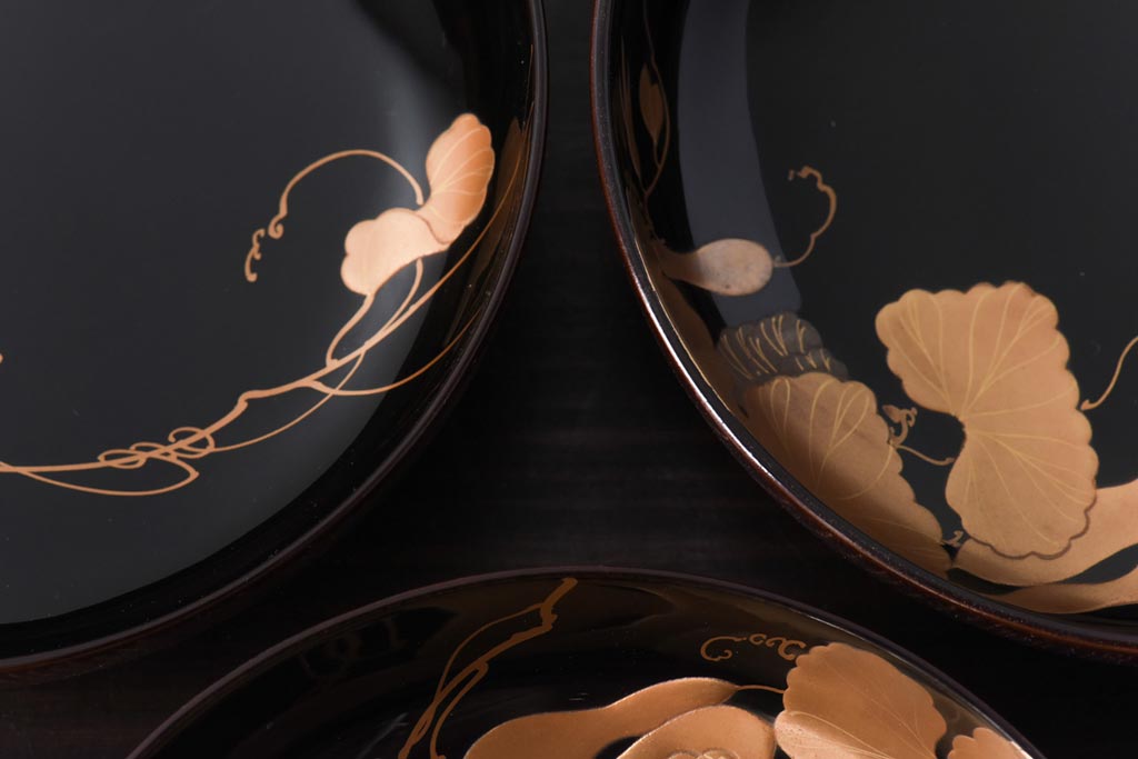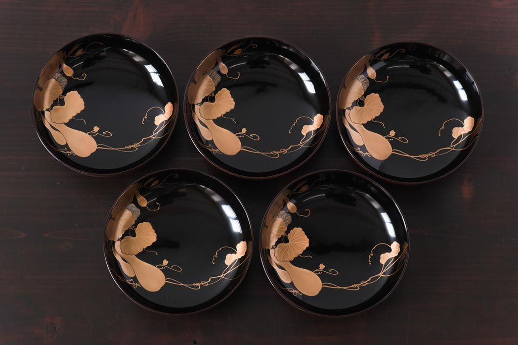 ラフジュ工房> 和食器・茶道具> お椀・茶碗 > 和製アンティーク 輪島塗 高蒔絵 瓢箪の図 上質な蓋付き木製椀(漆器、和食器)5客セット(2)