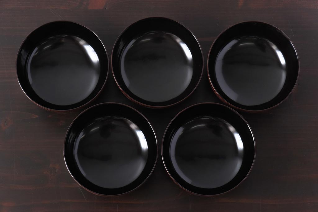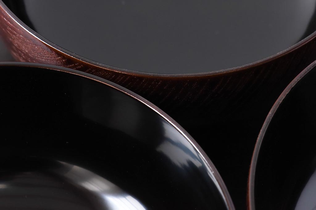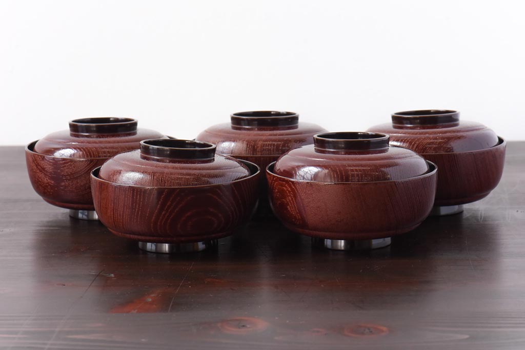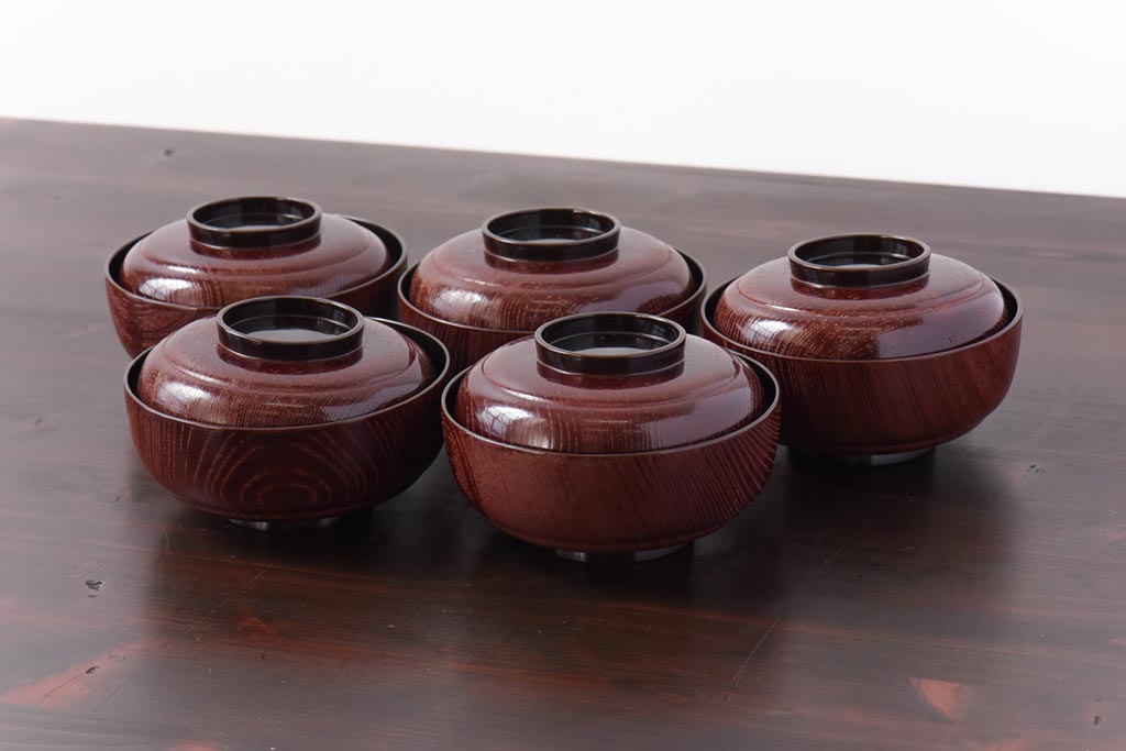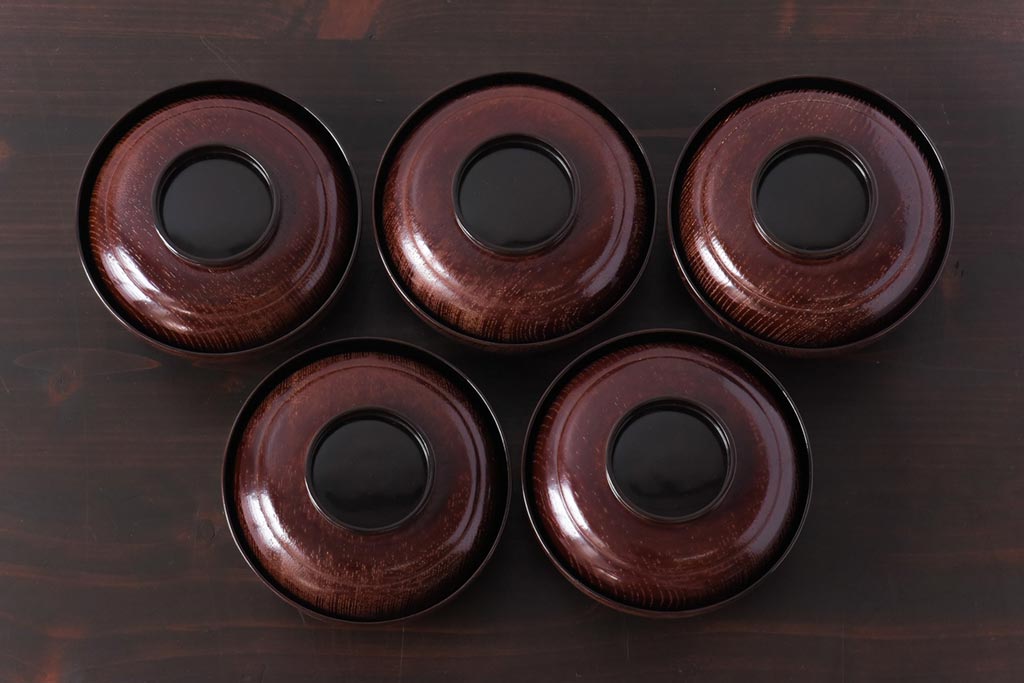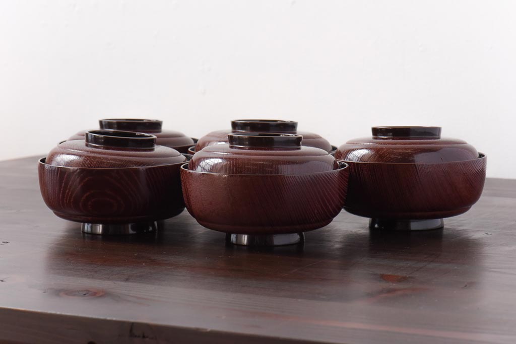 ラフジュ工房> 和食器・茶道具> お椀・茶碗 > 和製アンティーク 輪島塗 高蒔絵 瓢箪の図 上質な蓋付き木製椀(漆器、和食器)5客セット(2)
