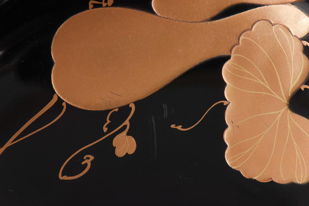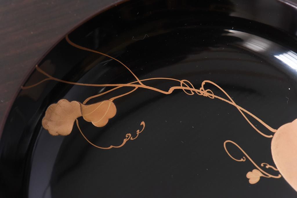 ラフジュ工房> 骨董・美術品> 骨董-漆器 > 和製アンティーク 輪島塗 高蒔絵 瓢箪の図 上質な蓋付き木製椀(漆器、和食器)5客セット(2)