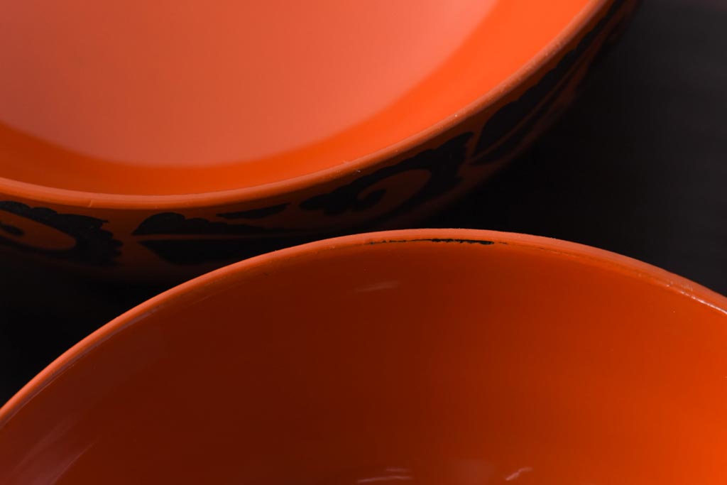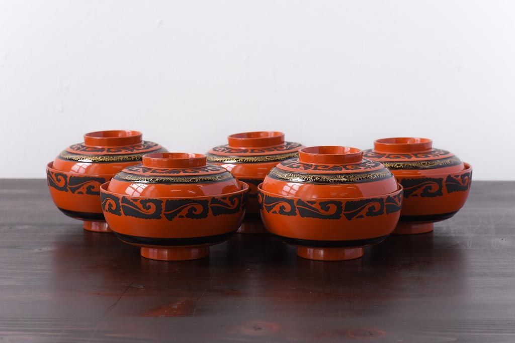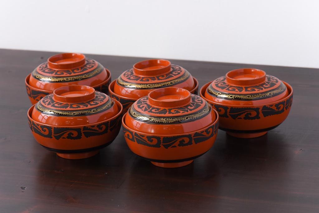 ラフジュ工房> 和食器・茶道具> お椀・茶碗 > 和製アンティーク 沈金蒔絵 波模様がユニークな蓋付き木製椀(漆器、和食器)5客セット(2)
