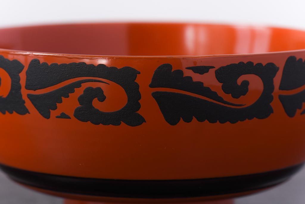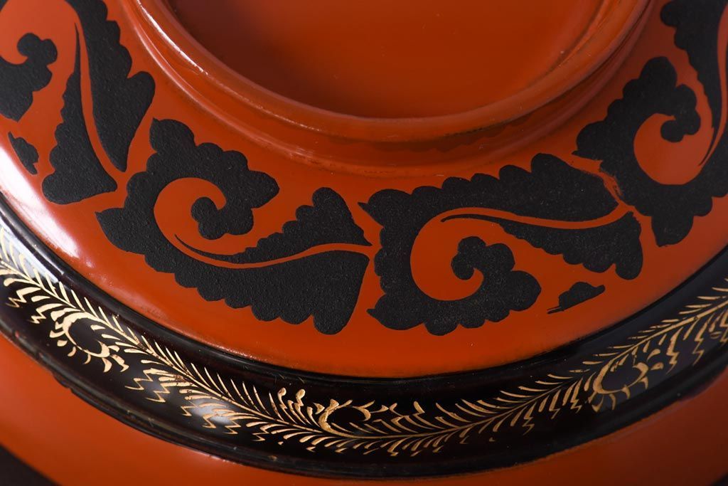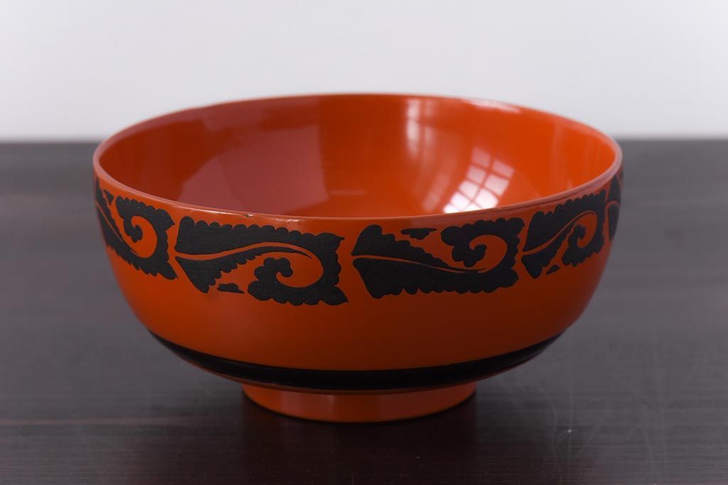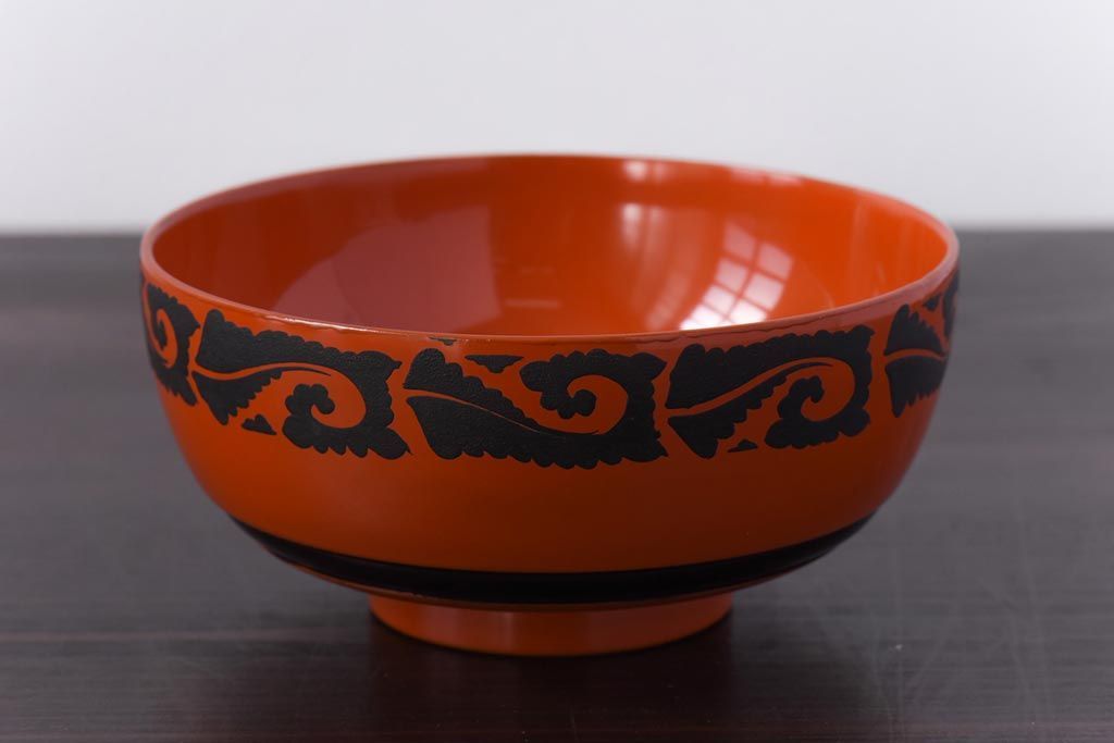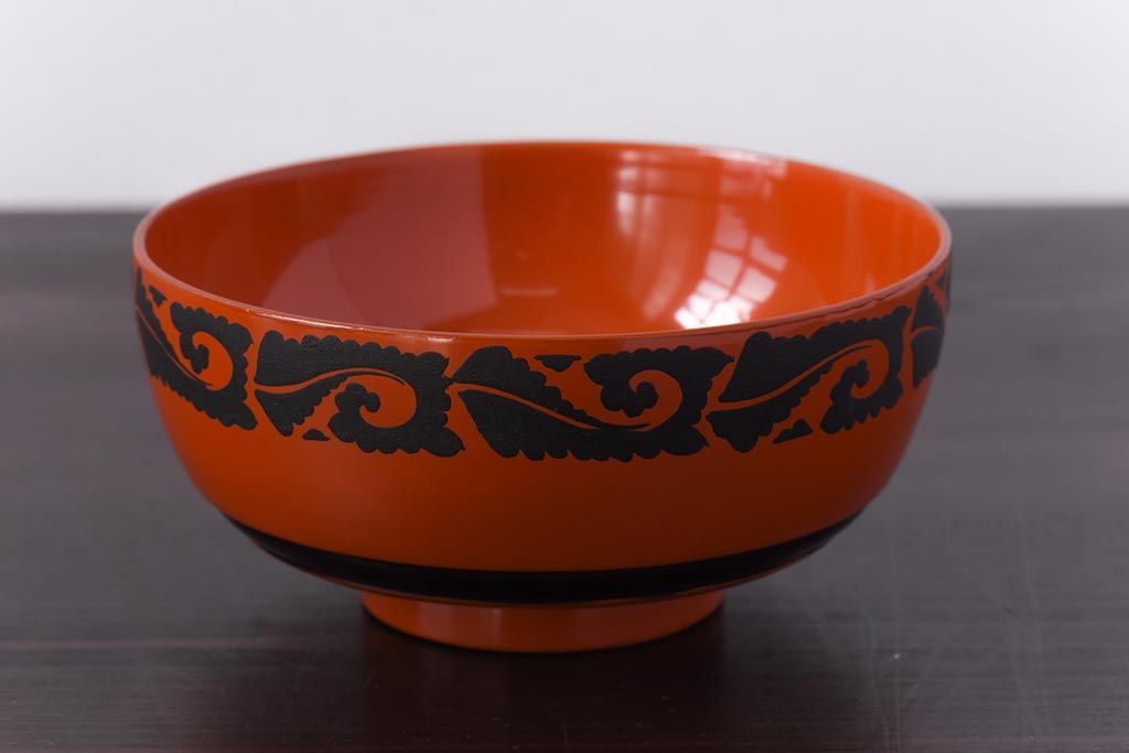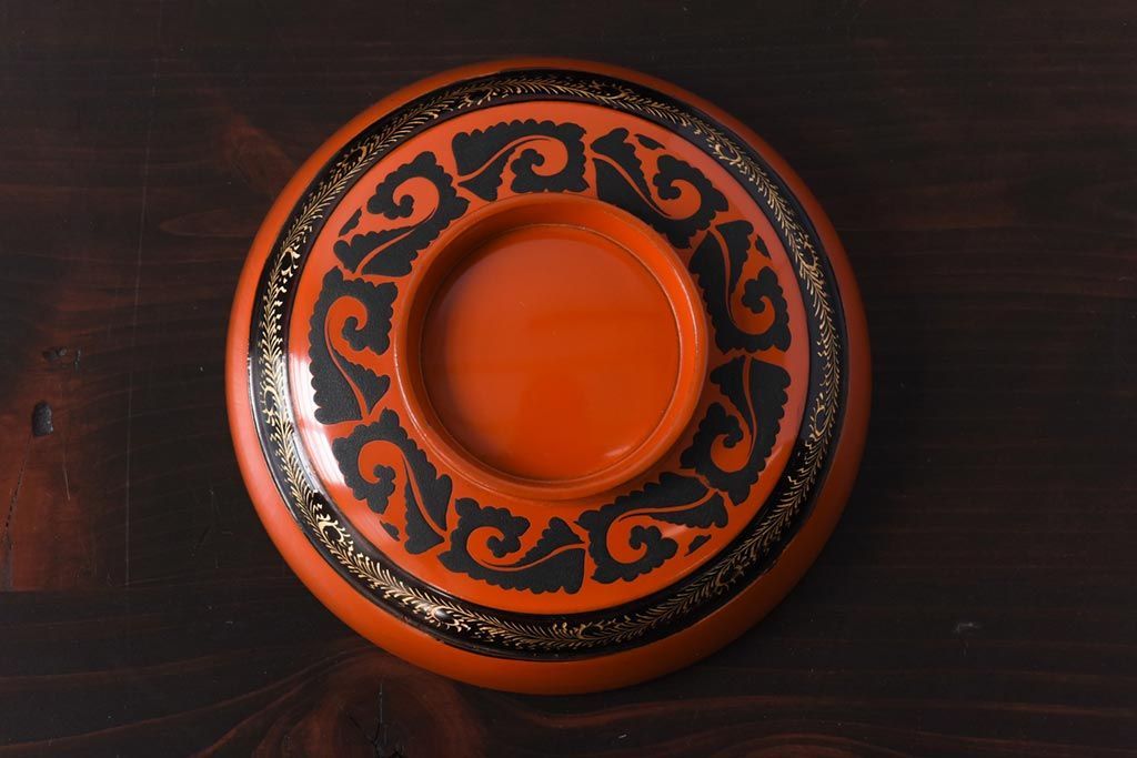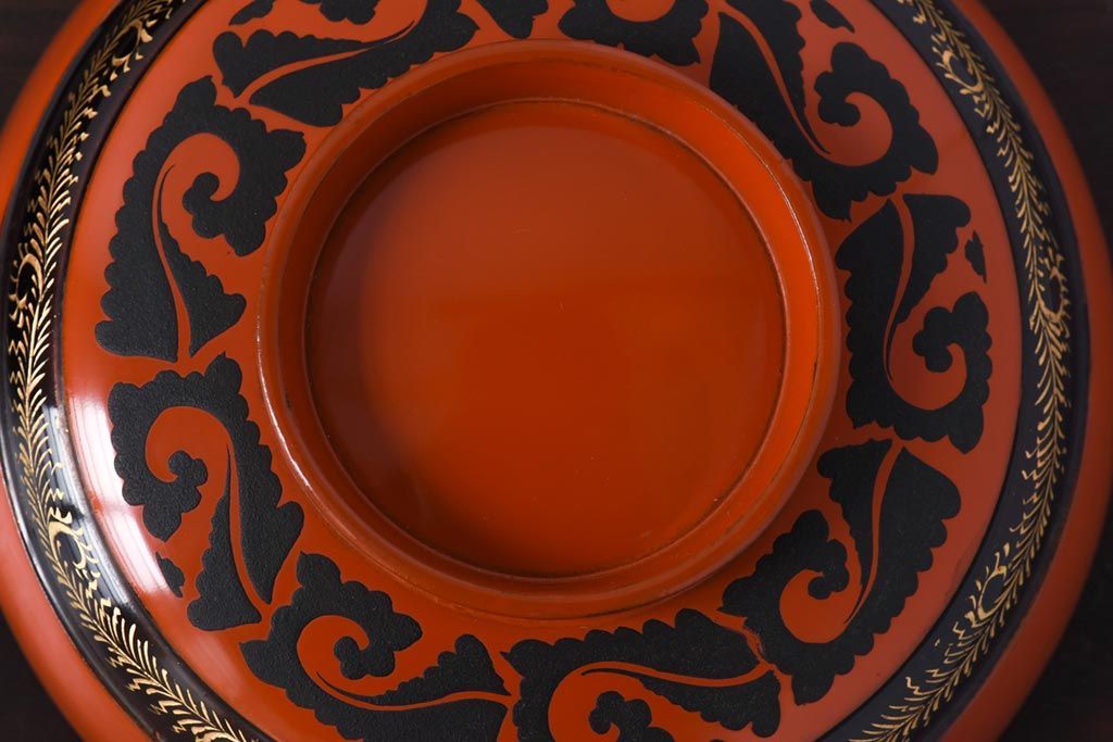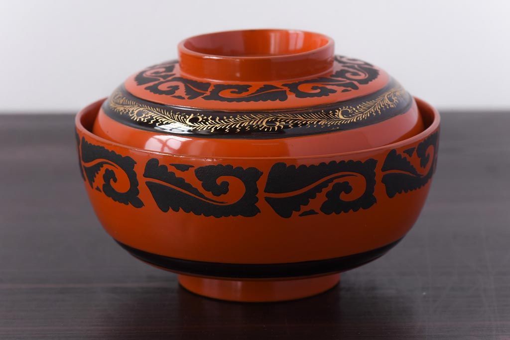 ラフジュ工房> 骨董・美術品> 骨董-漆器 > 和製アンティーク 沈金蒔絵 波模様がユニークな蓋付き木製椀(漆器、和食器)5客セット(2)