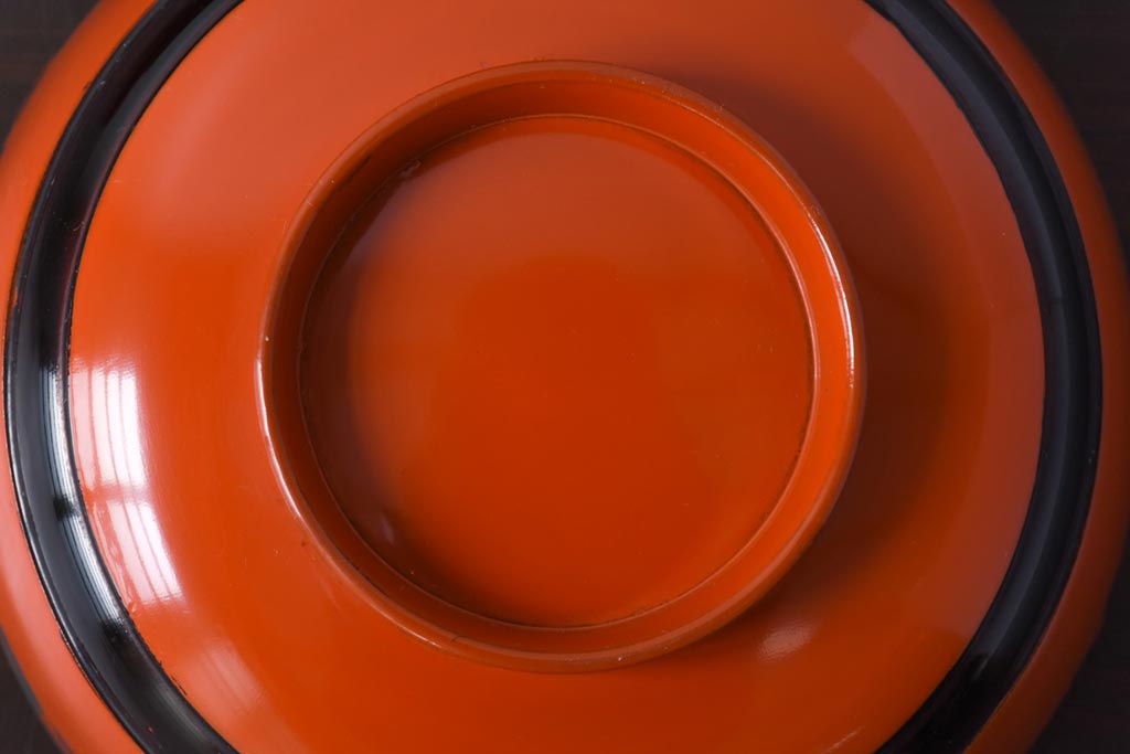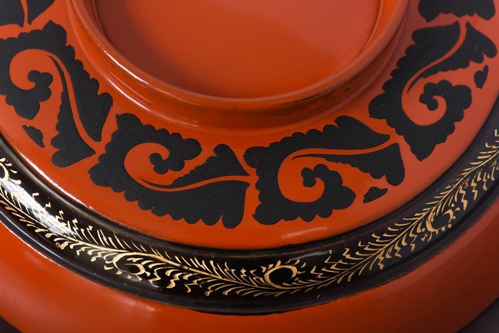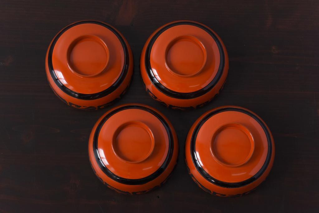 ラフジュ工房> 骨董・美術品> 骨董-漆器 > 和製アンティーク 沈金蒔絵 波模様がユニークな蓋付き木製椀(漆器、和食器)4客セット