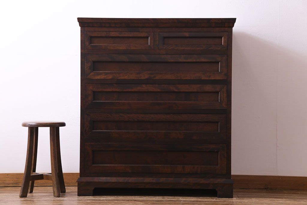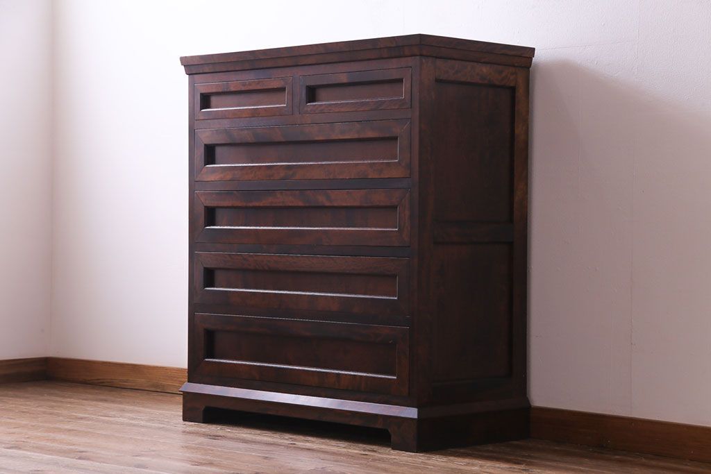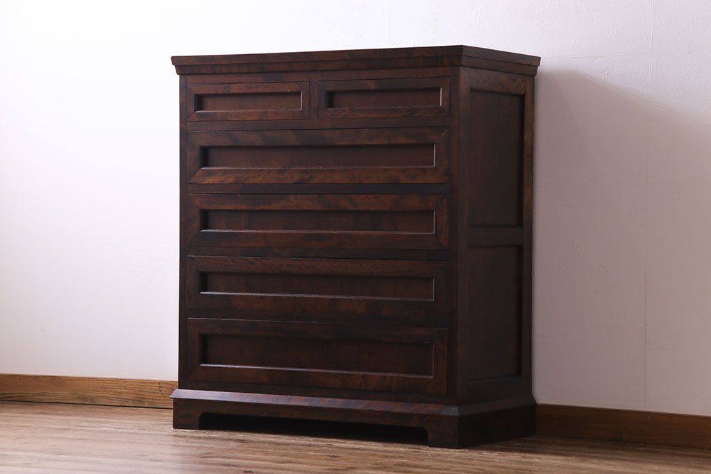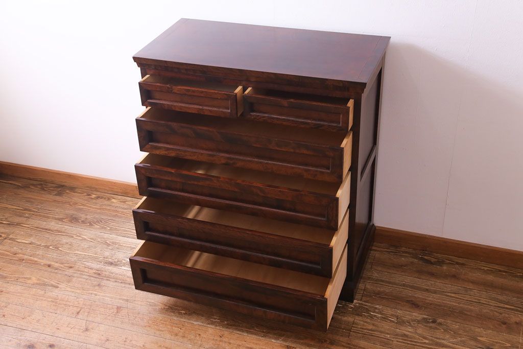 中古 松本民芸家具 503型 直線のデザインが目を引くチェスト(引き出し、衣装箪笥、整理箪笥)(定価約28万円)(2)