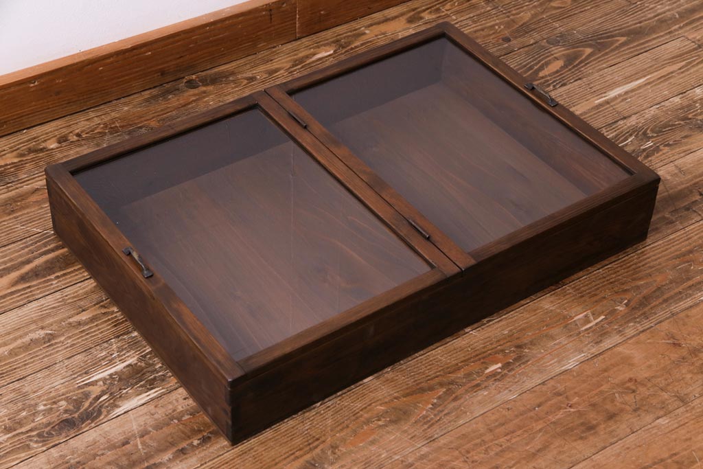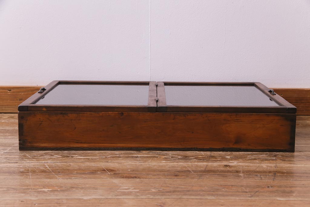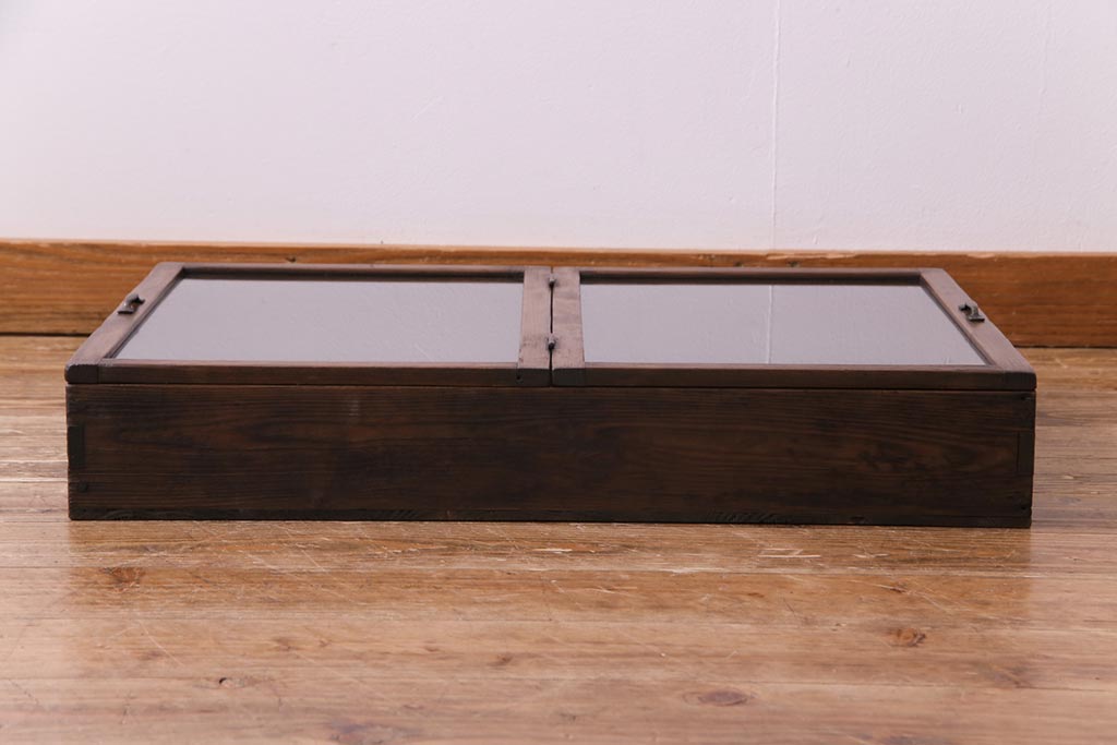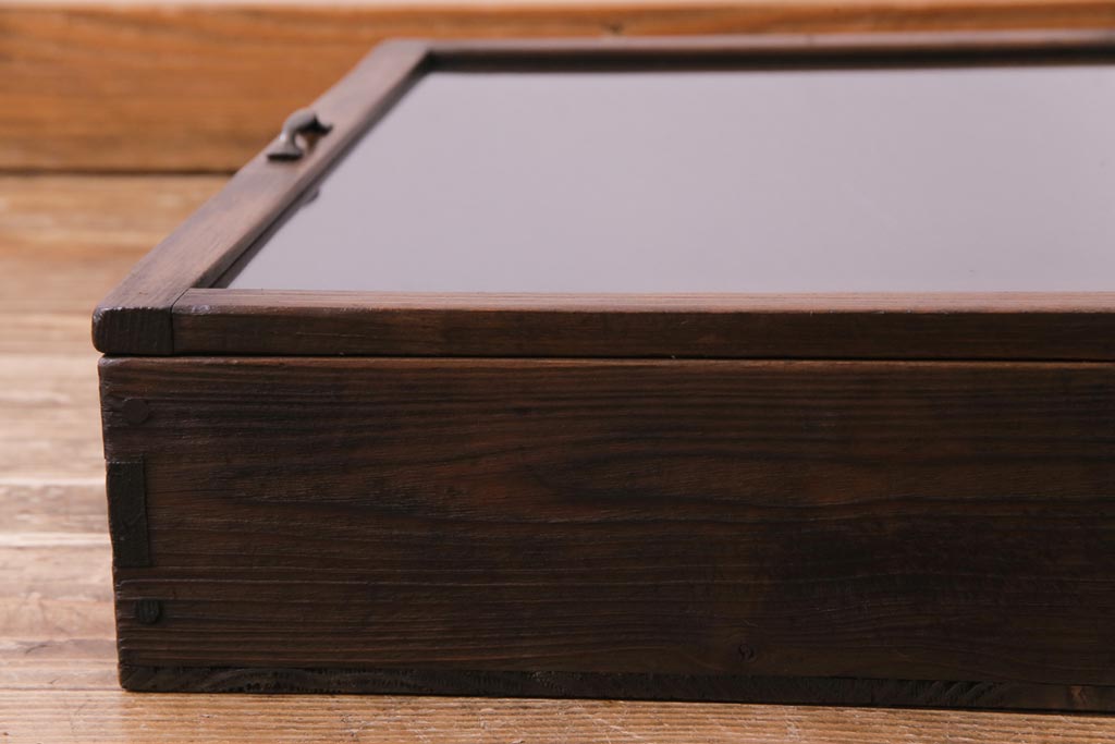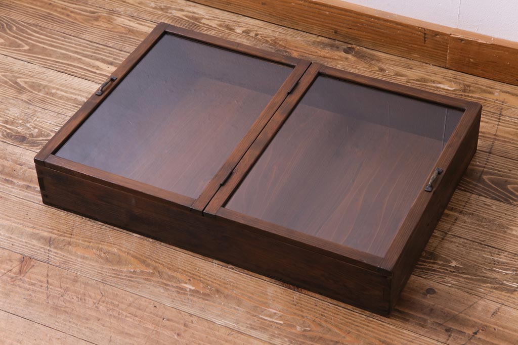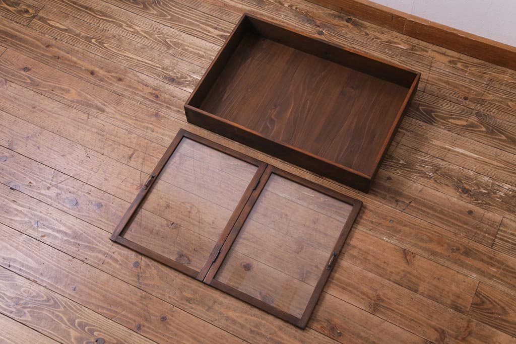 小物収納・トランク > アンティーク雑貨 昭和レトロ 落ち着いた色合いが魅力の木製コレクションケース(ガラスケース・収納箱)(1)