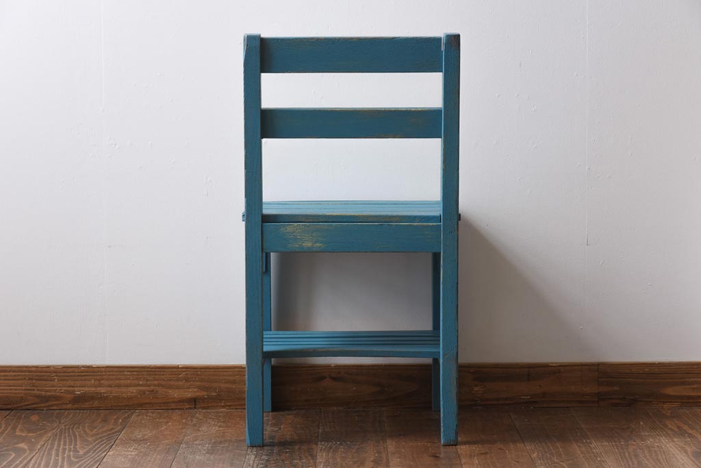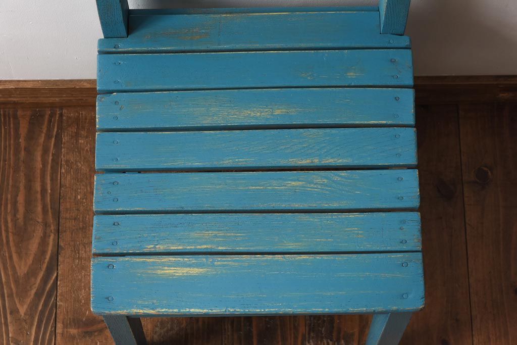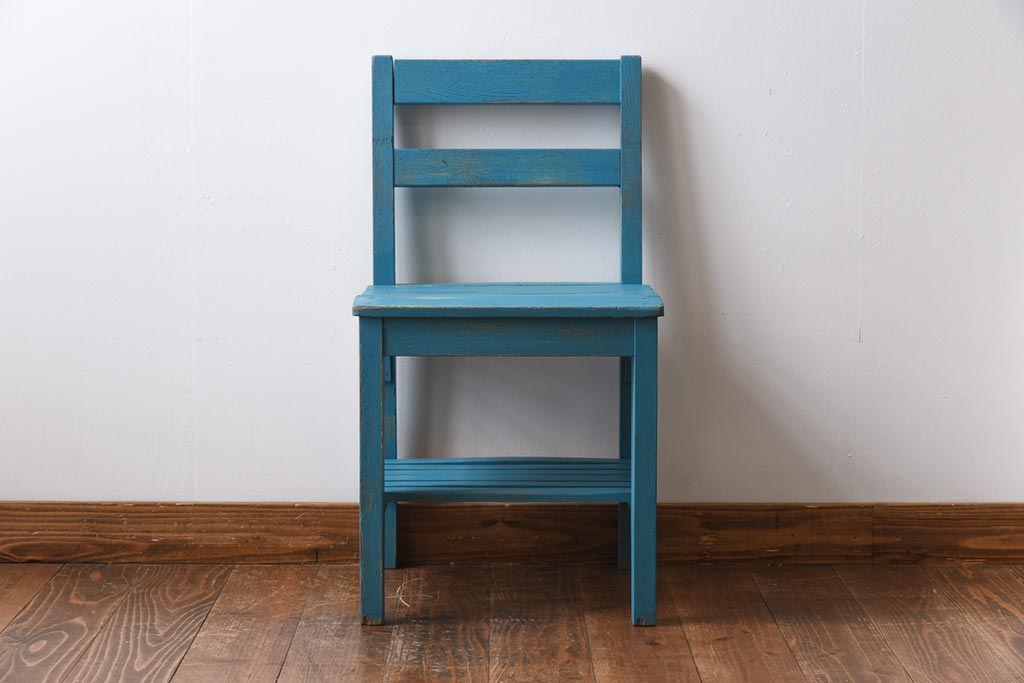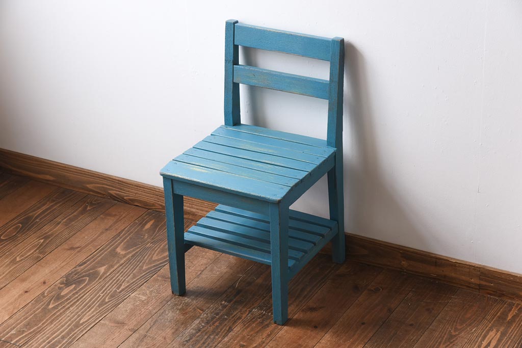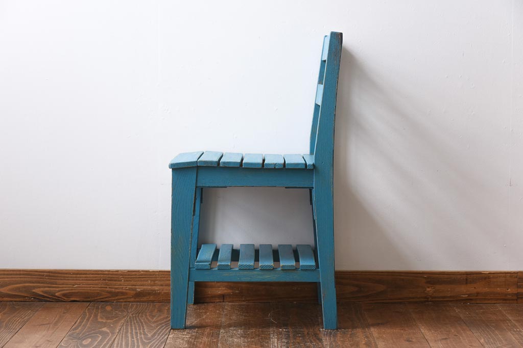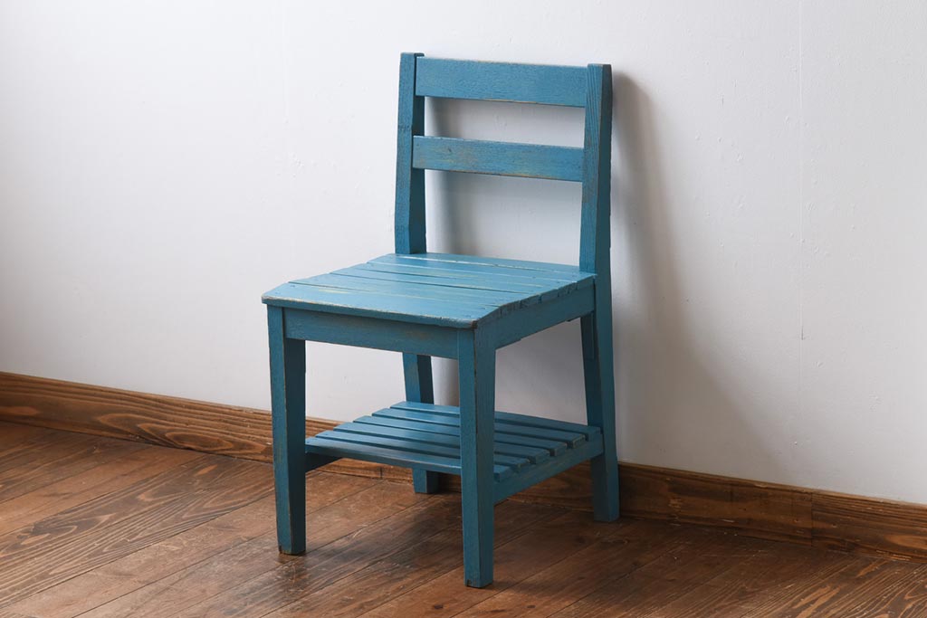 ペイント家具 棚付き インテリアの差し色にもおすすめの木製チェア(キッズチェア、椅子、板座チェア)(R-031305)