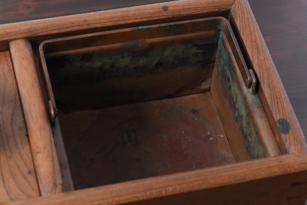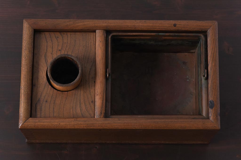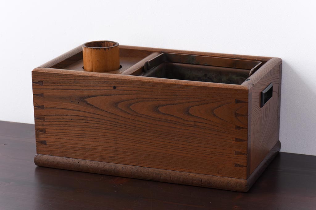 アンティーク雑貨 昭和初期 ケヤキ材 味わい深い佇まいの木製火鉢(手あぶり)