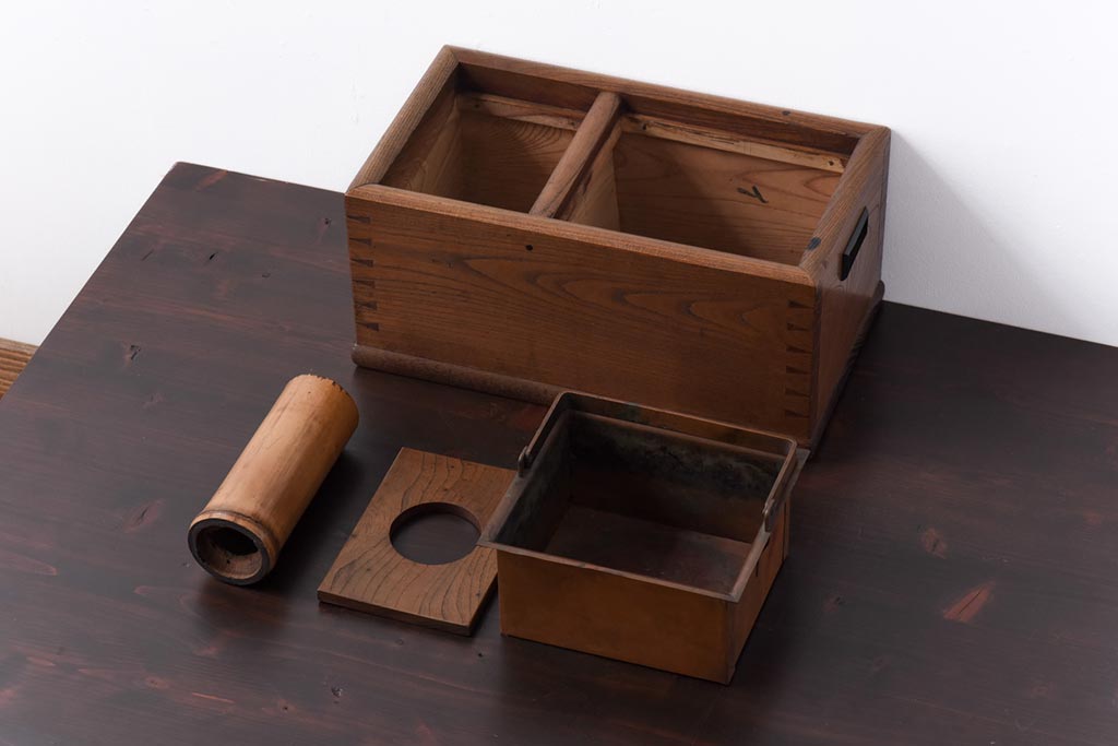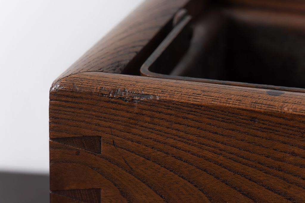 火鉢> 木製火鉢 > アンティーク雑貨 昭和初期 ケヤキ材 味わい深い佇まいの木製火鉢(手あぶり)