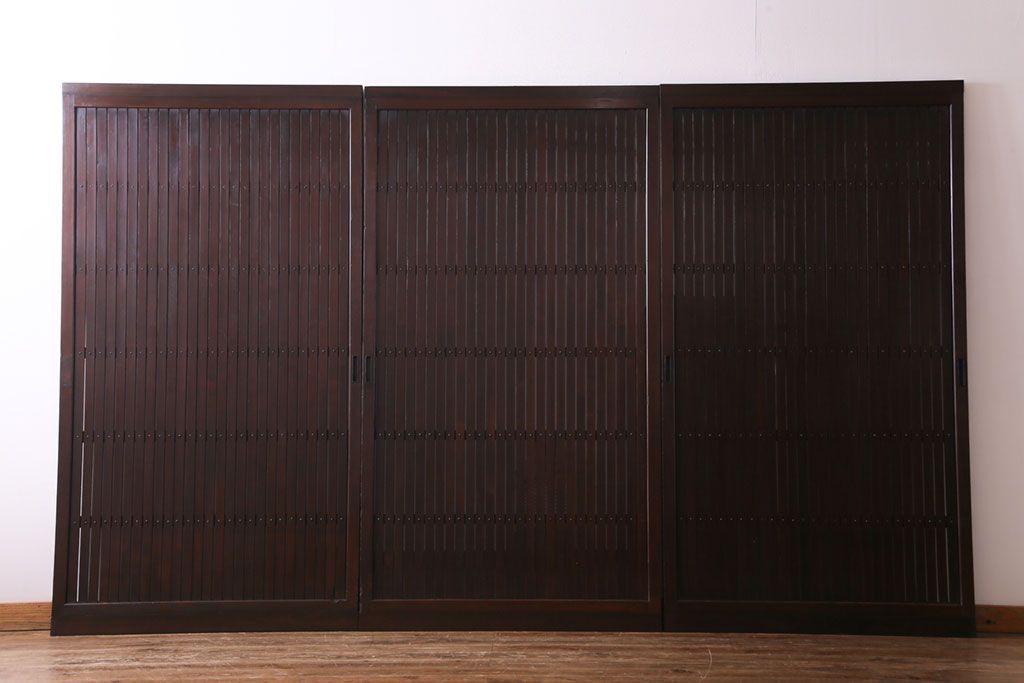和製アンティーク ガラス入り 和の風情を演出してくれる平格子戸3枚セット(引き戸、ガラス戸)