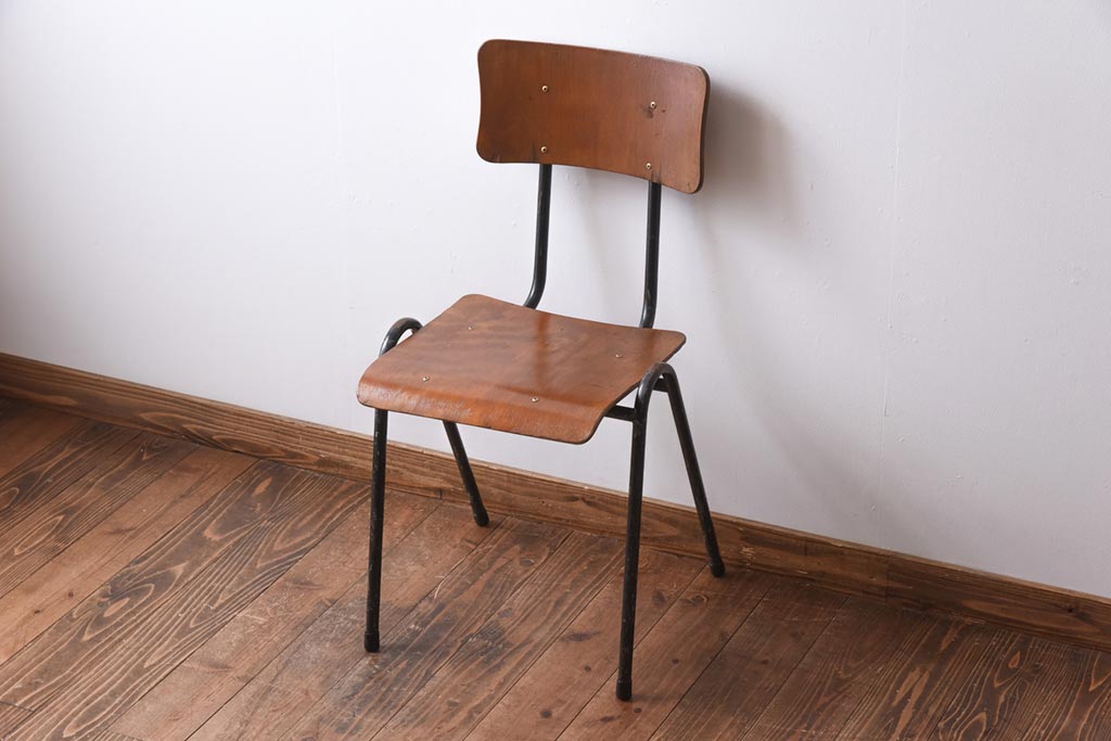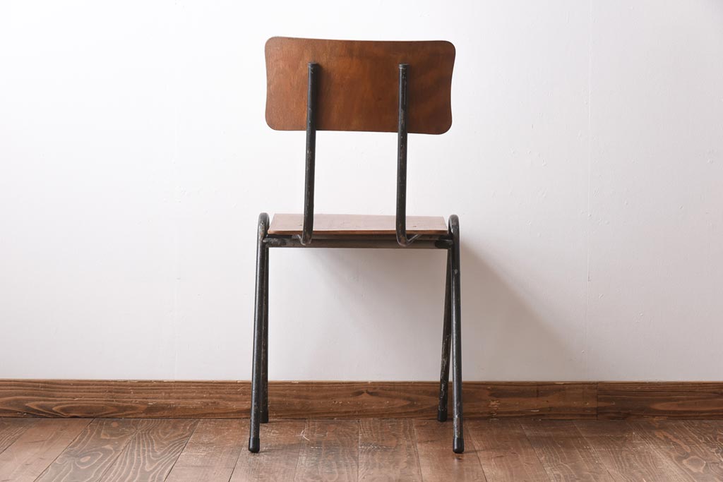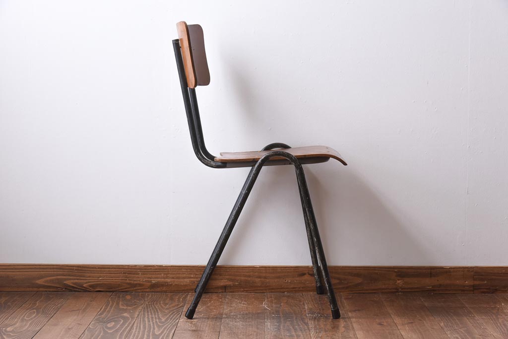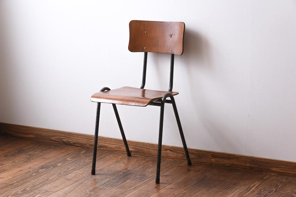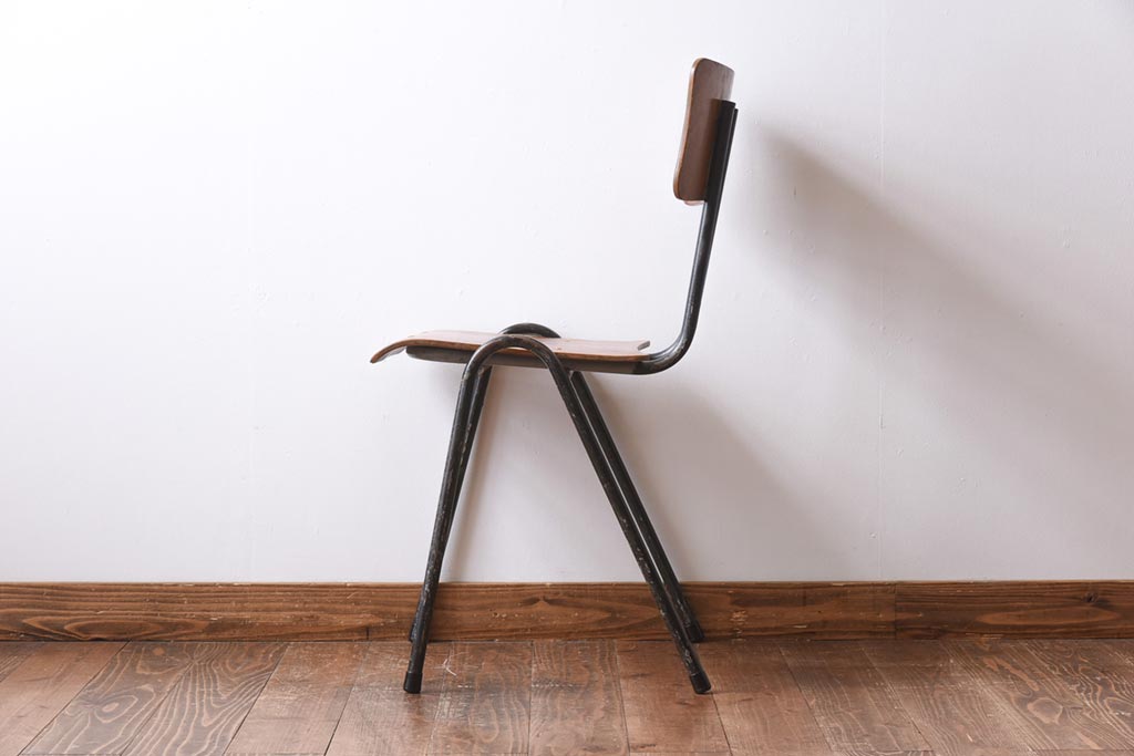 ヴィンテージ家具 イギリスビンテージ レトロな雰囲気が漂うスクールチェア(鉄脚チェア、椅子)(1)