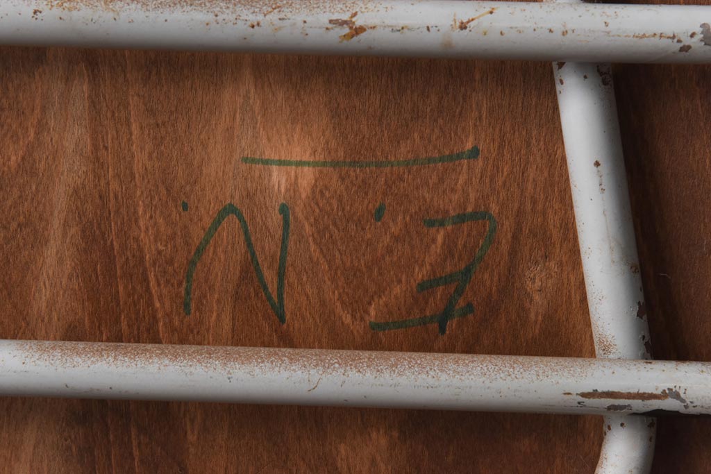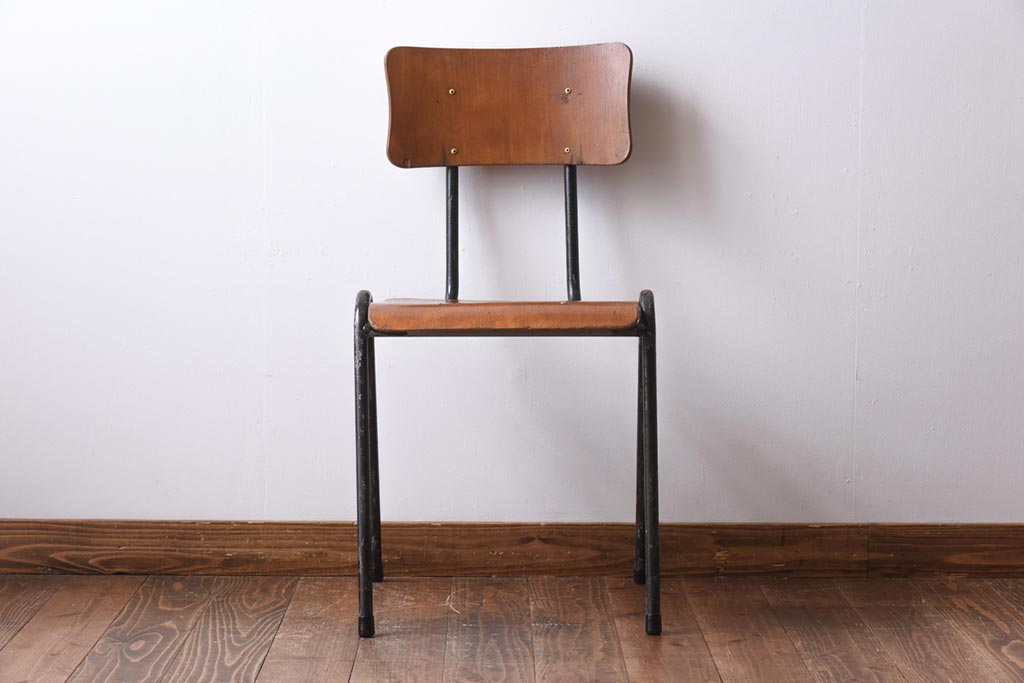 イギリスビンテージ レトロな雰囲気が漂うスクールチェア(鉄脚チェア、椅子)(1)です。