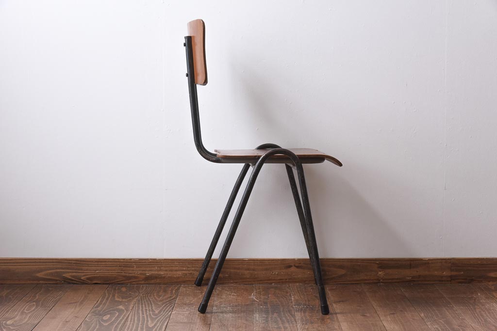 イギリスビンテージ レトロな雰囲気が漂うスクールチェア(鉄脚チェア、椅子)(3)です。