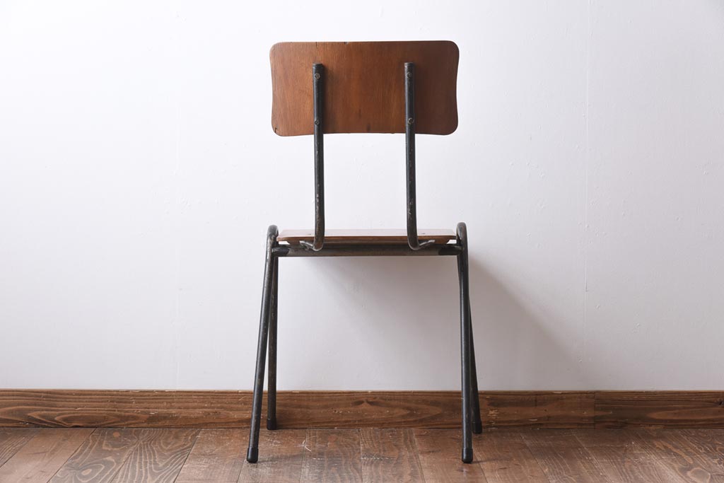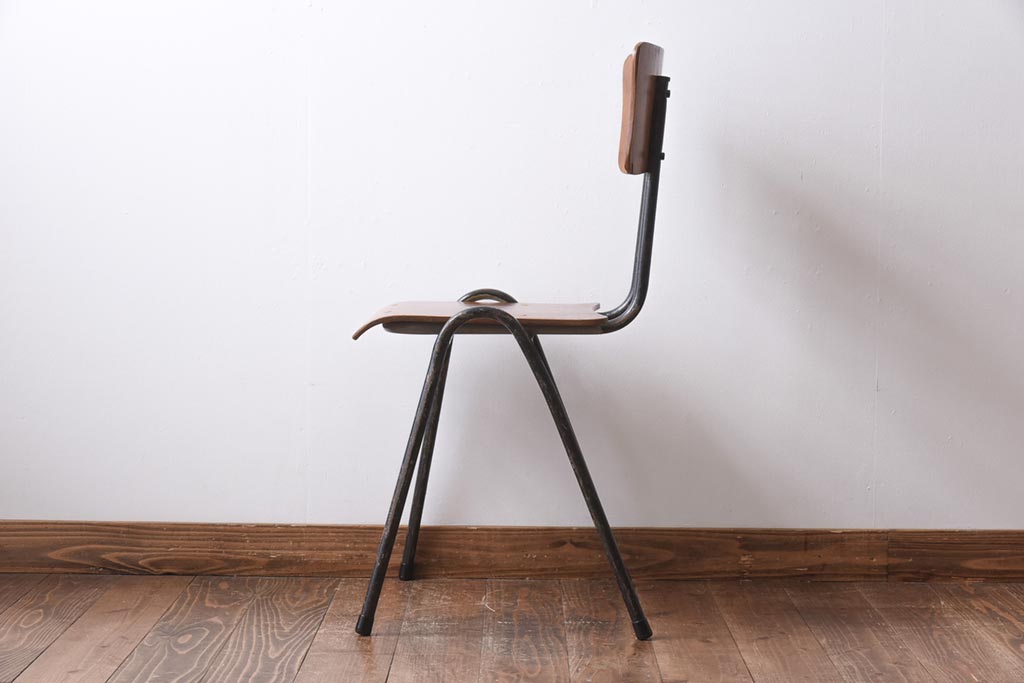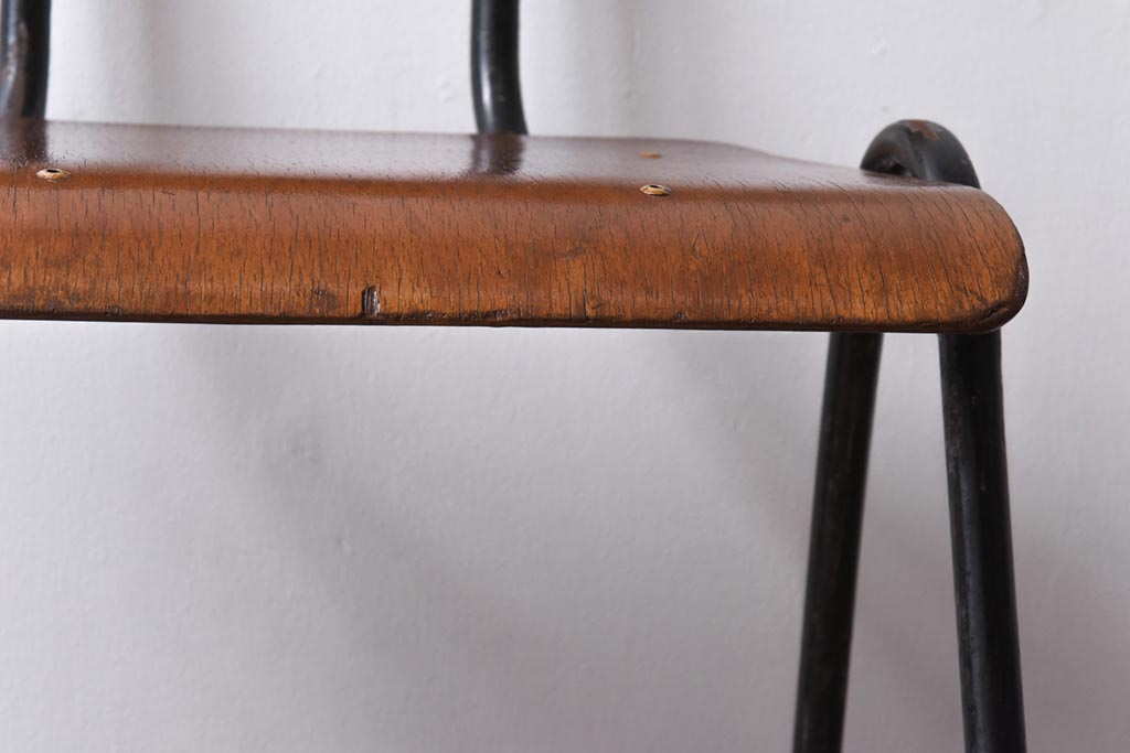 ヴィンテージ家具 イギリスビンテージ レトロな雰囲気が漂うスクールチェア(鉄脚チェア、椅子)(3)
