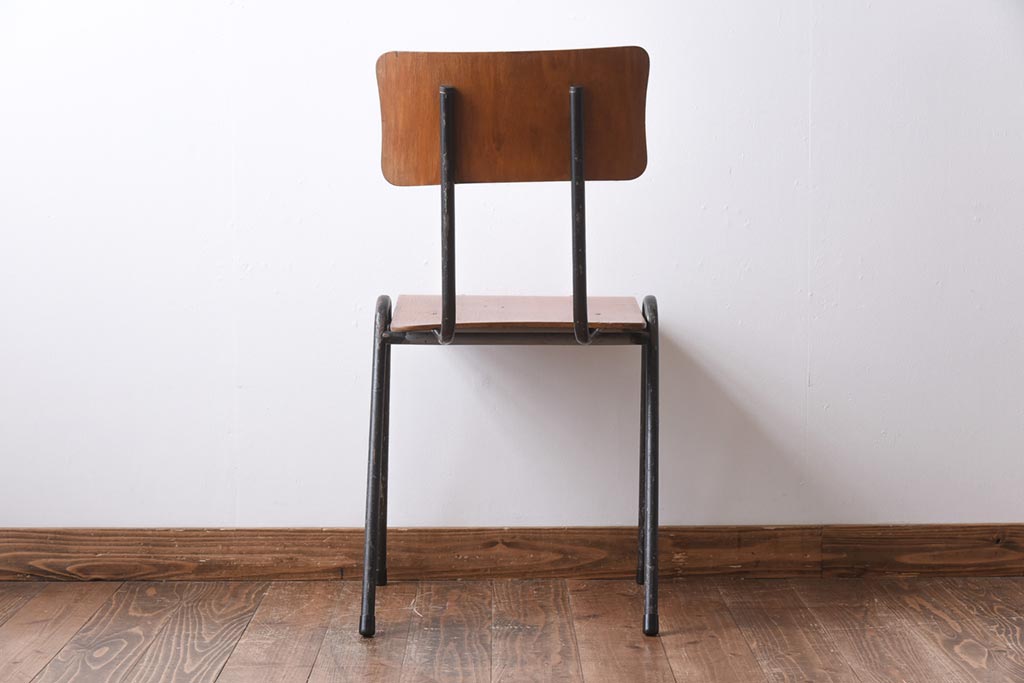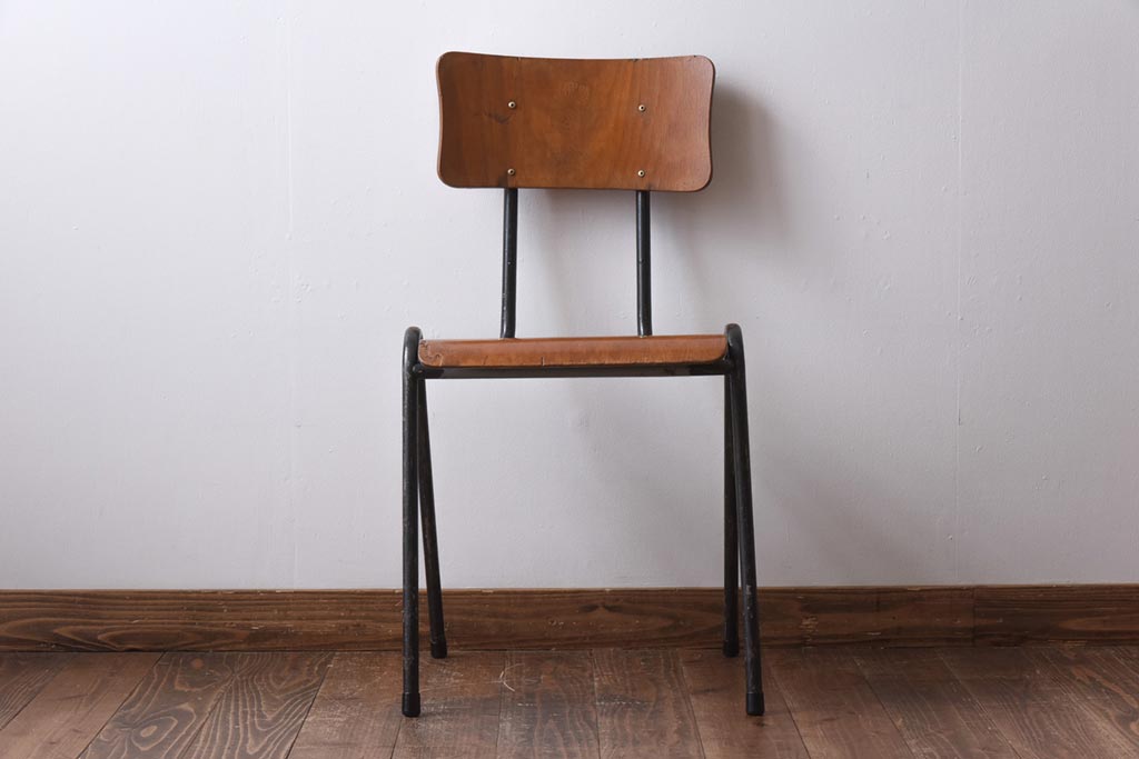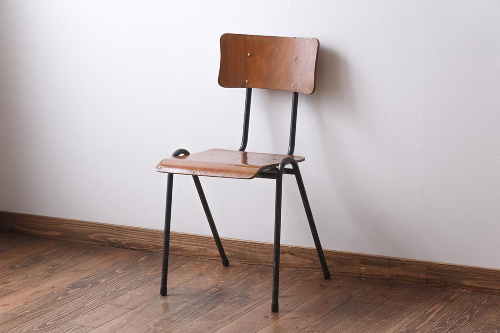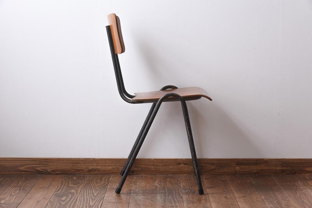 イギリスビンテージ レトロな雰囲気が漂うスクールチェア(鉄脚チェア、椅子)です。