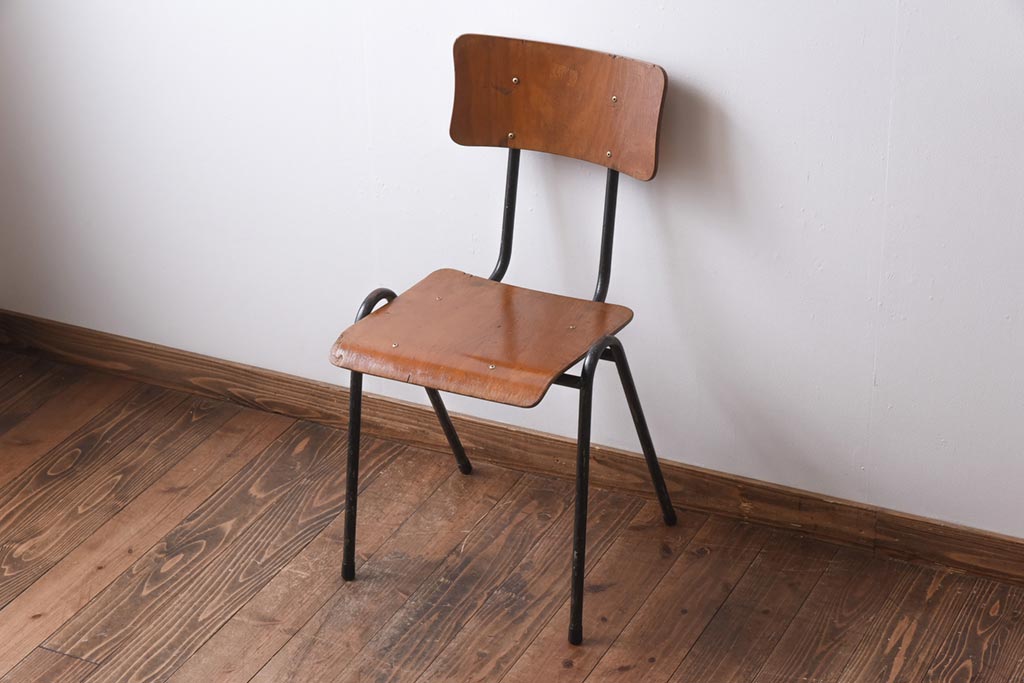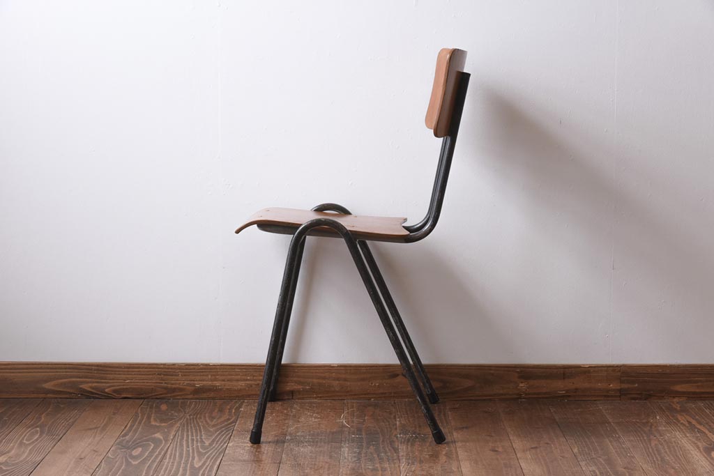 ヴィンテージ家具 イギリスビンテージ レトロな雰囲気が漂うスクールチェア(鉄脚チェア、椅子)