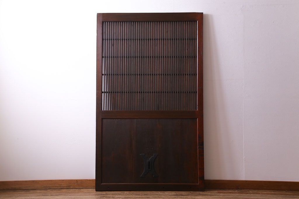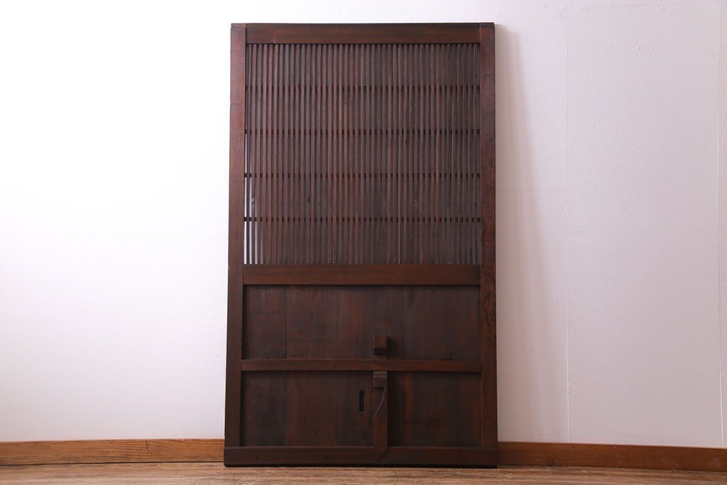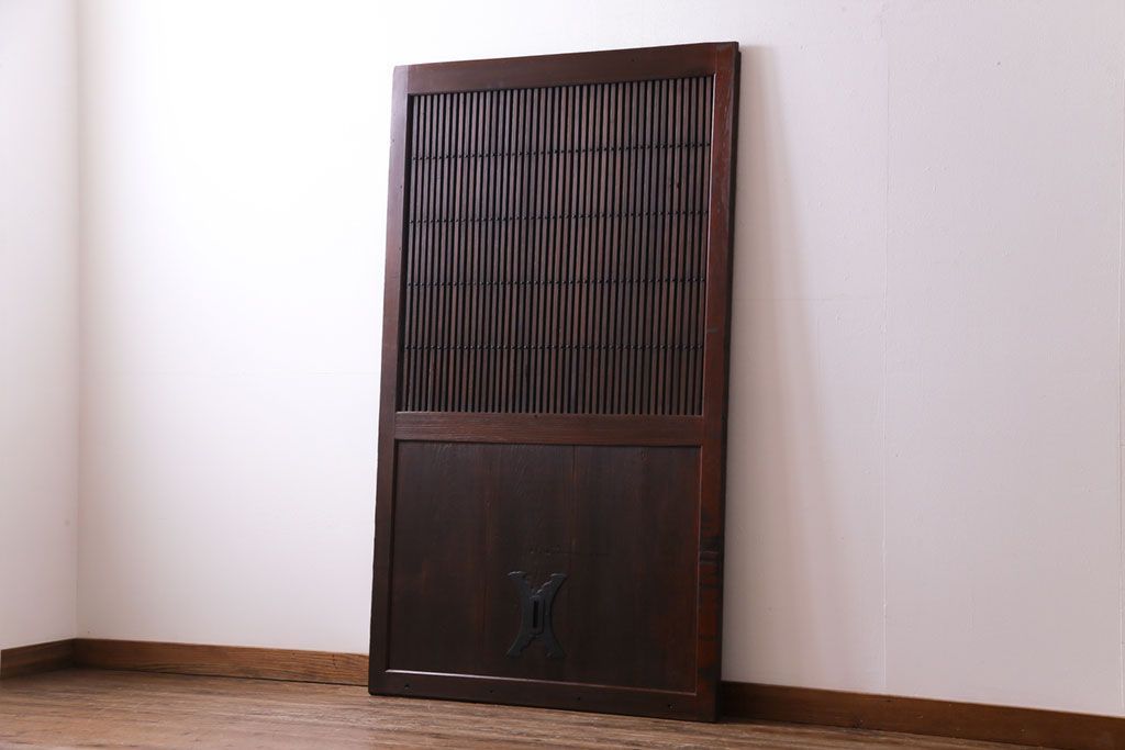 和製アンティーク 明治大正期 ヒノキ材 細い桟が魅力の格子蔵戸(格子戸、引き戸、建具、玄関戸)です。