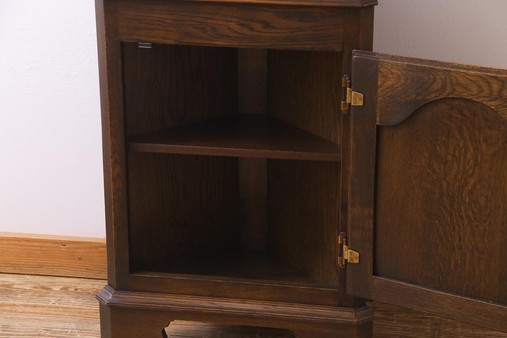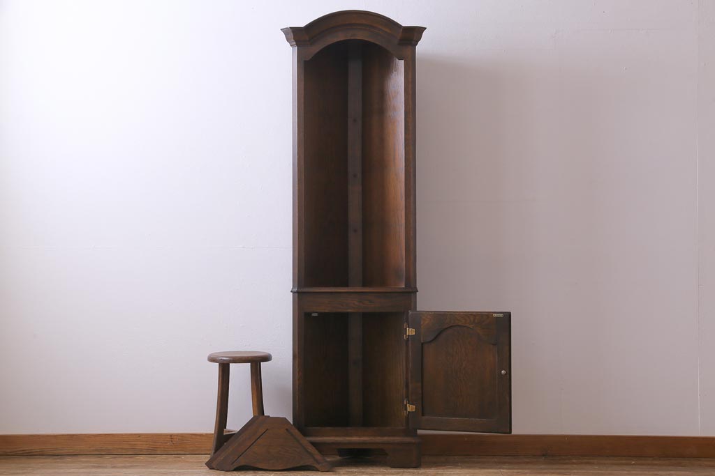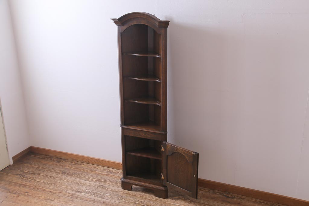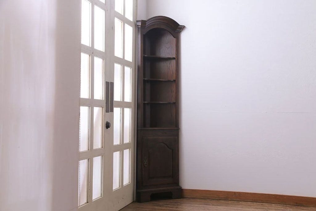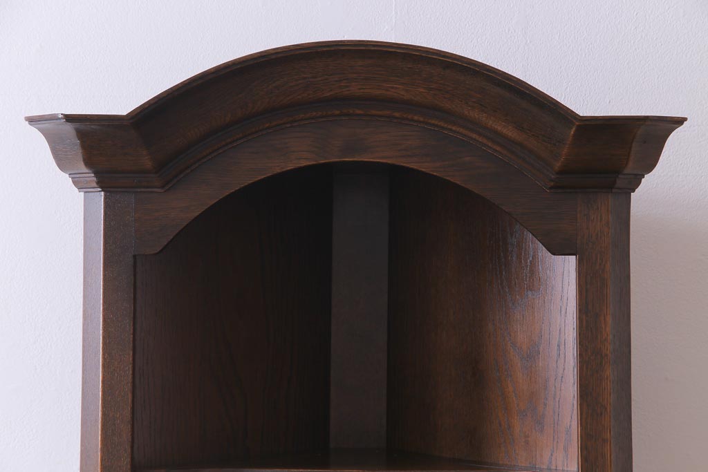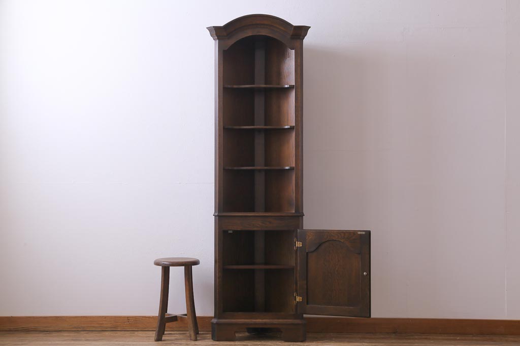 ラフジュ工房> オープンラック・シェルフ > ヴィンテージ家具 イギリスビンテージ 気品漂うなめらかなデザインのコーナーキャビネット(オープンラック、収納棚)