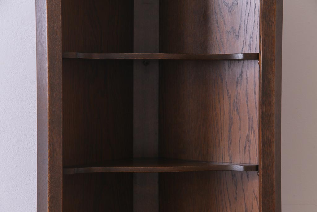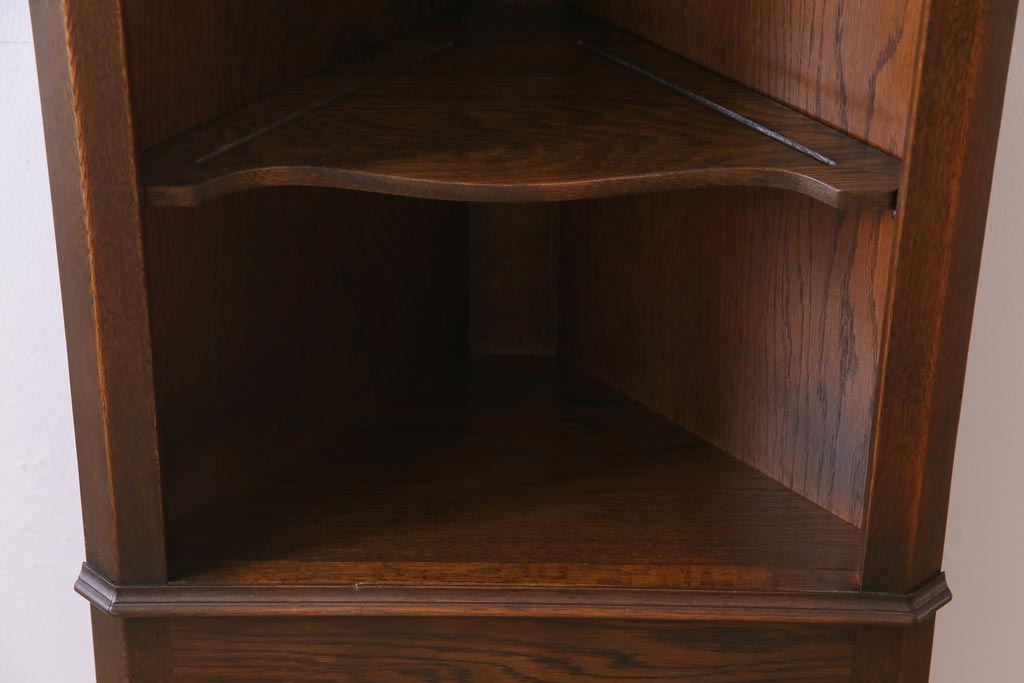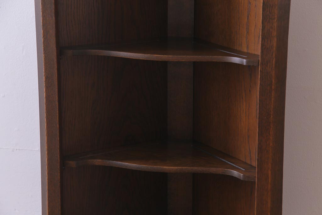 ヴィンテージ家具 イギリスビンテージ 気品漂うなめらかなデザインのコーナーキャビネット(オープンラック、収納棚)