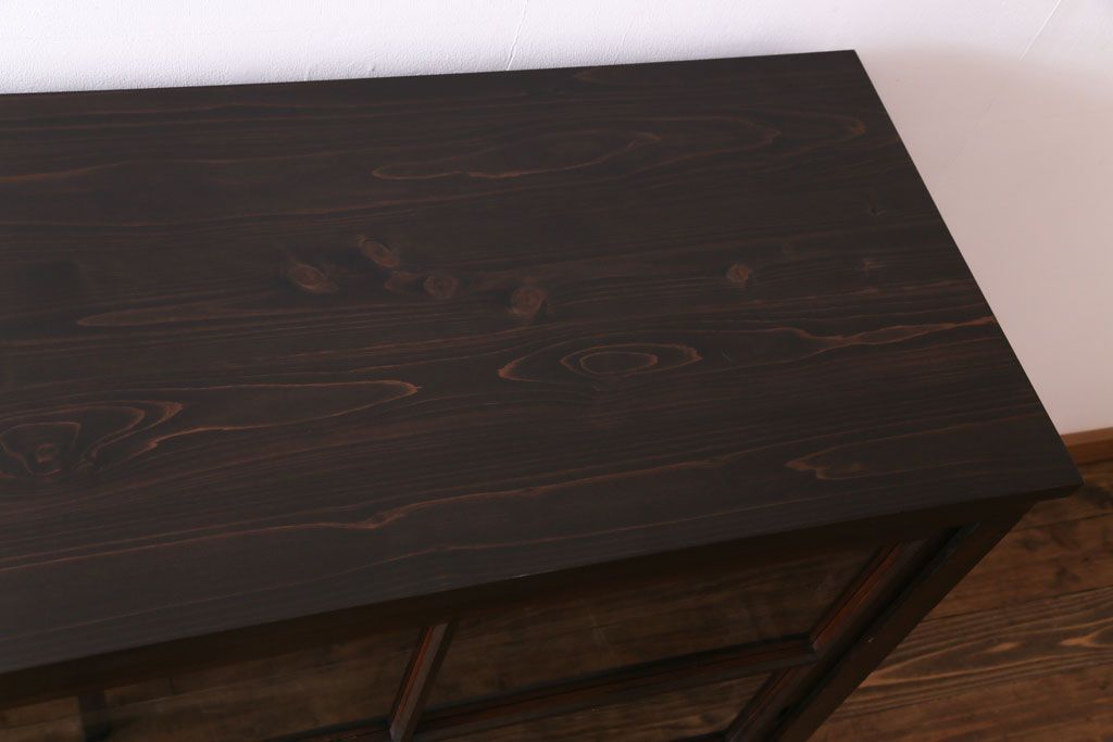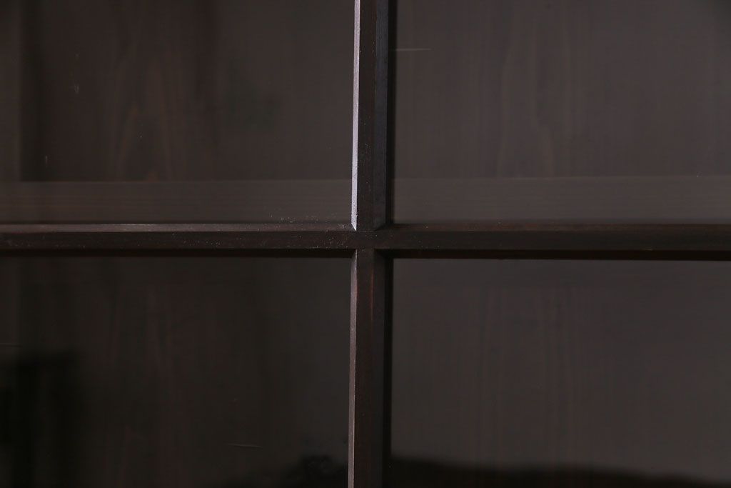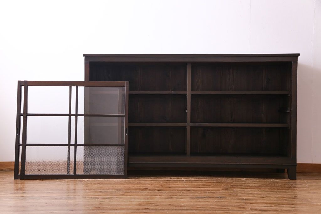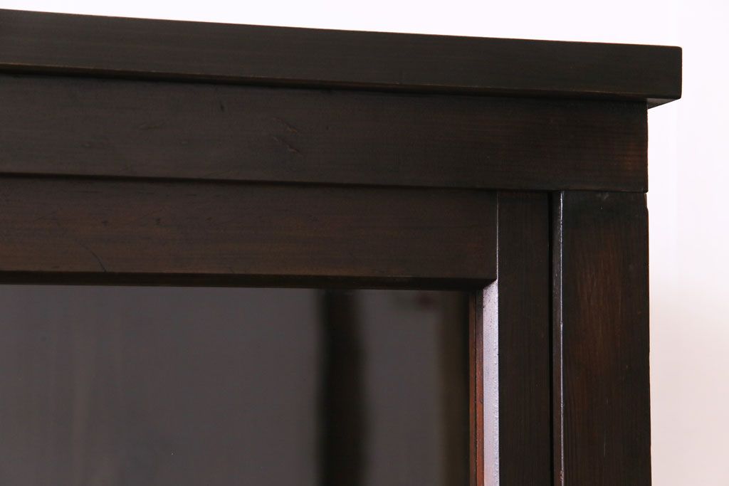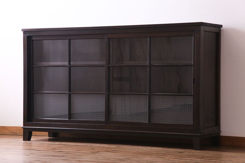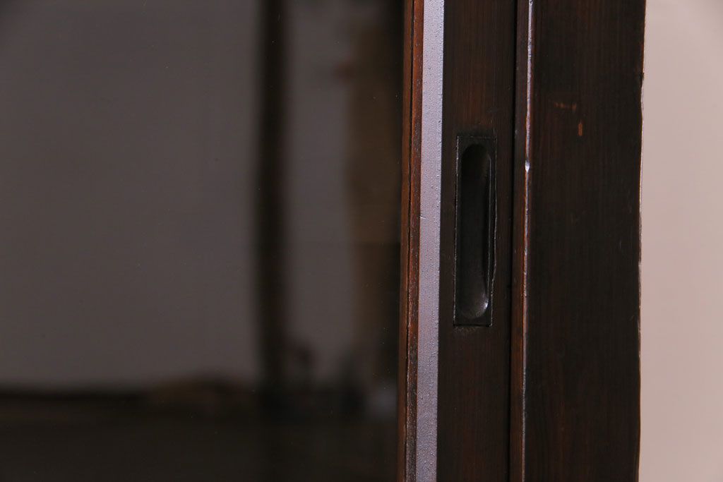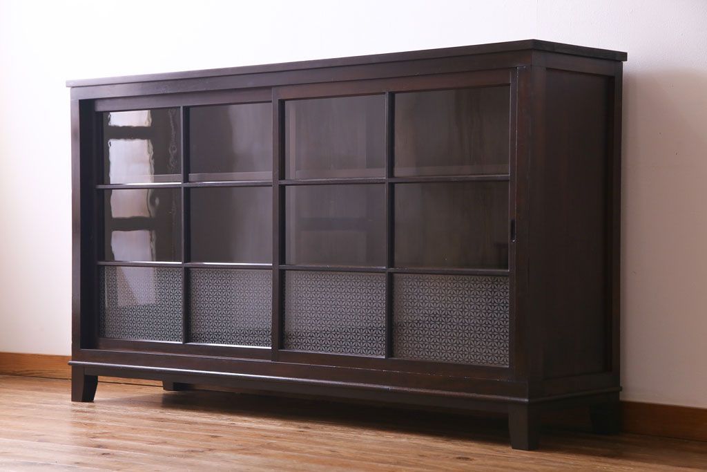 大正昭和初期 ラフジュ工房オリジナル 花菱模様ガラス入り レトロな雰囲気溢れるアンティークのガラス戸棚(食器棚、収納棚)(1)