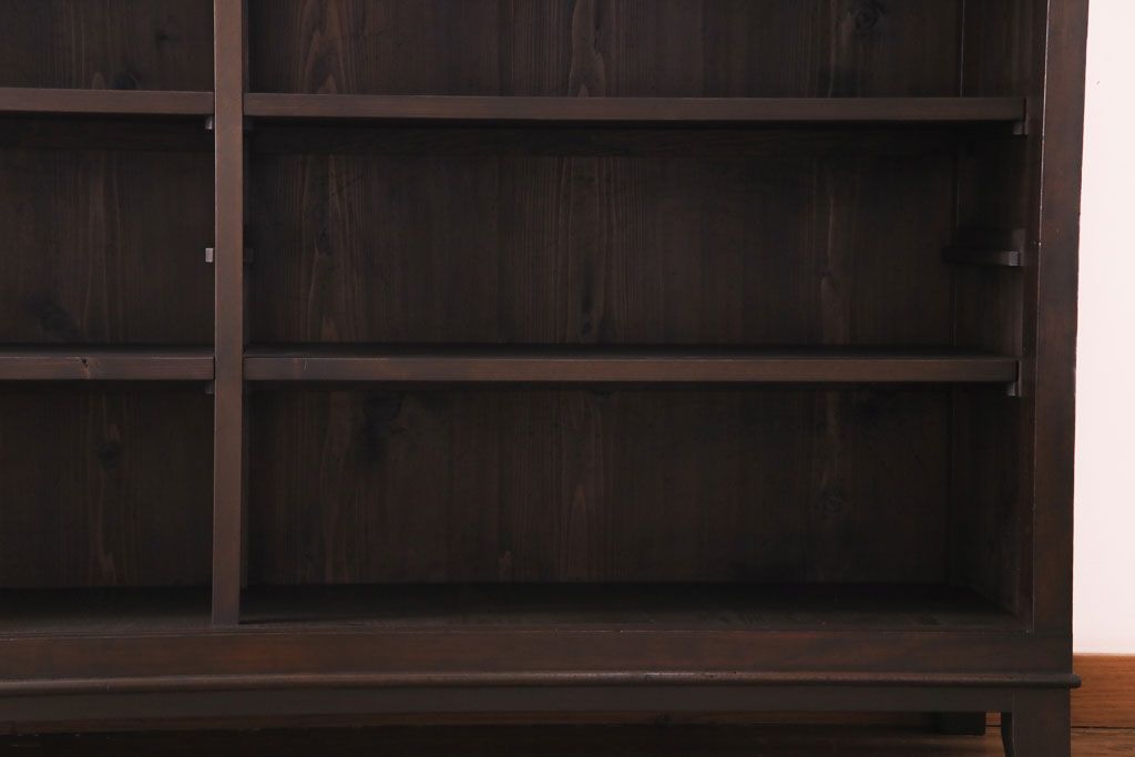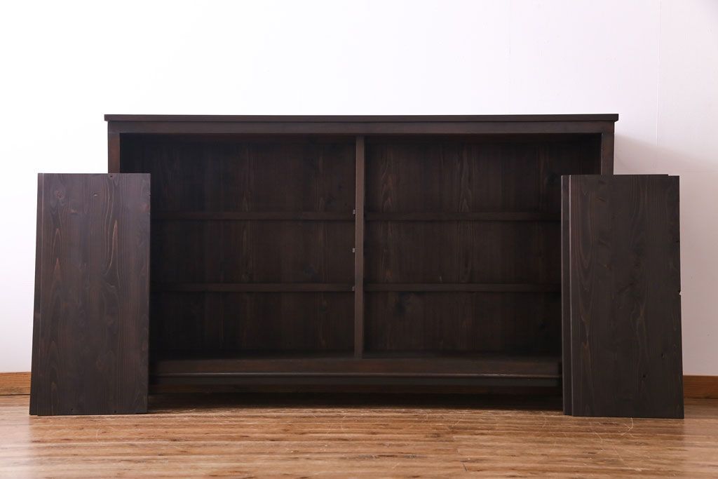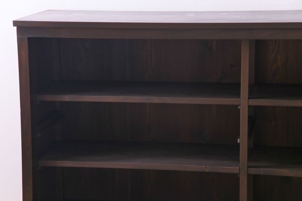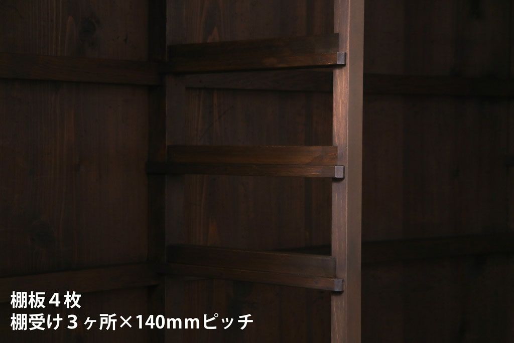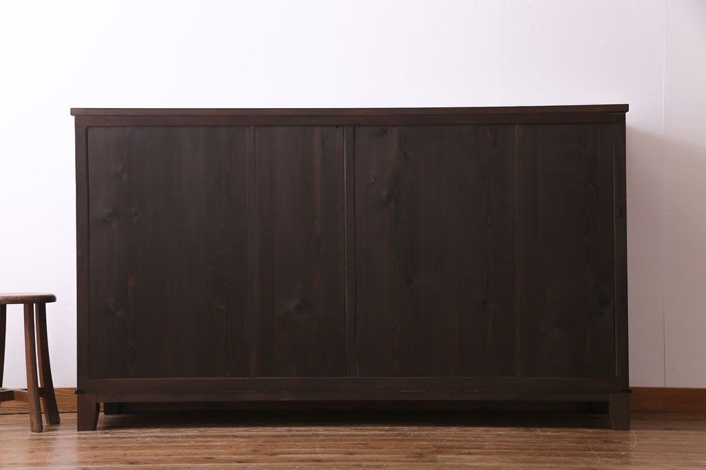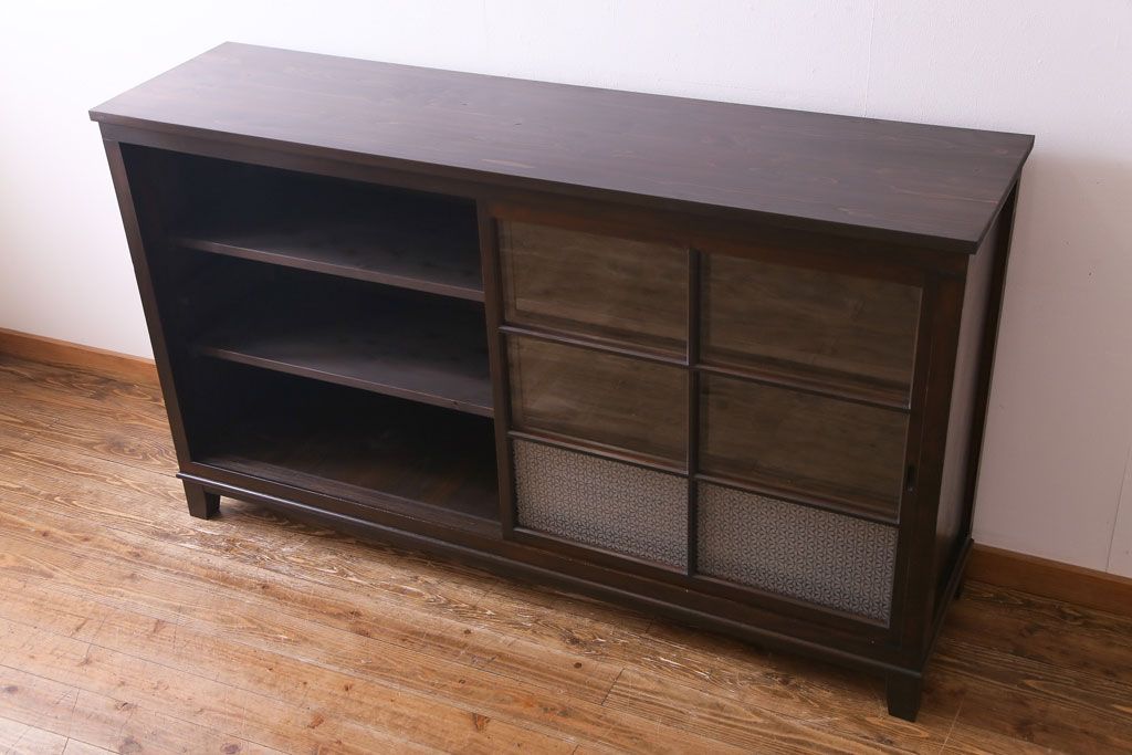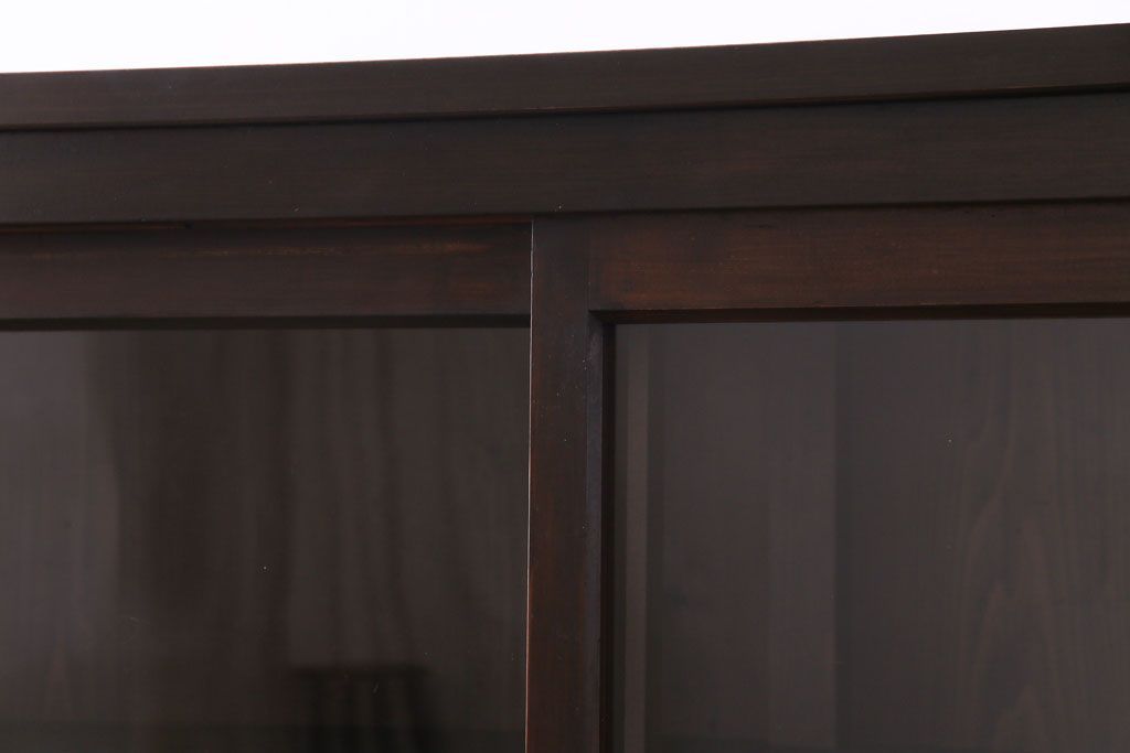 大正昭和初期 ラフジュ工房オリジナル 花菱模様ガラス入り レトロな雰囲気溢れるアンティークのガラス戸棚(食器棚、収納棚)(1)