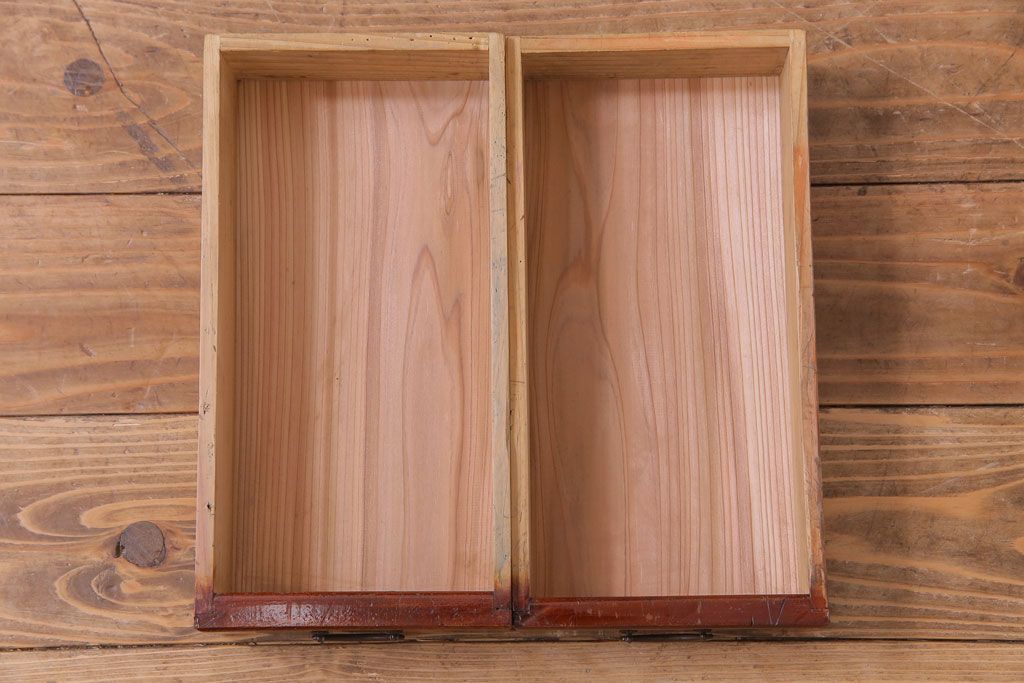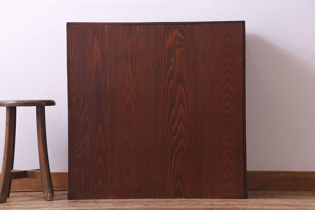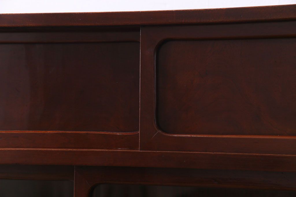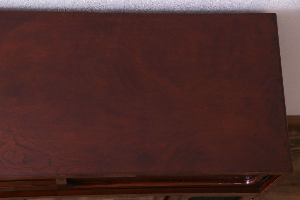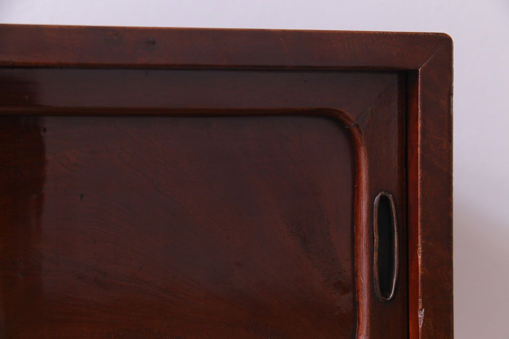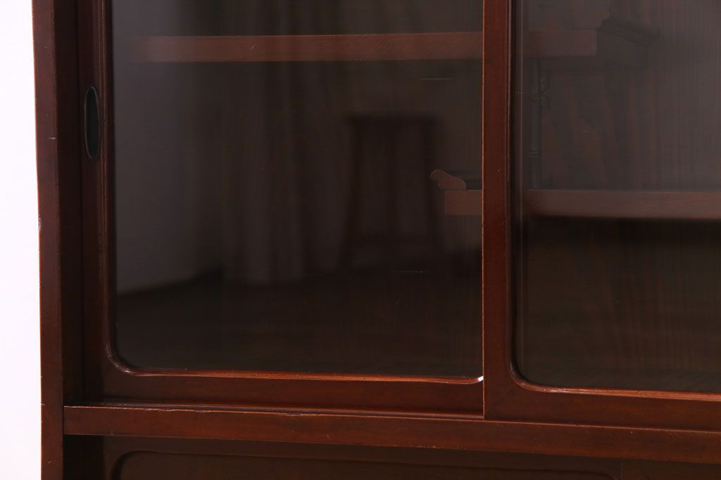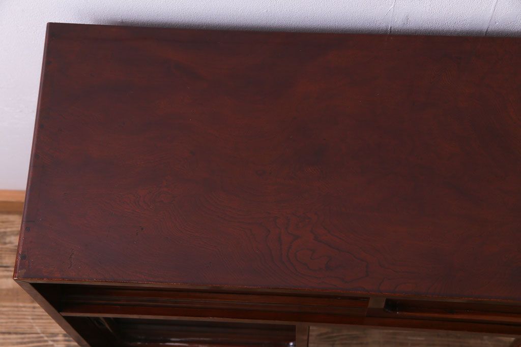 アンティーク家具 和製アンティーク 上手物 三方ケヤキ材 つややかな漆塗りと当時物色ガラスが魅力の戸棚(飾り棚、収納棚、茶棚)