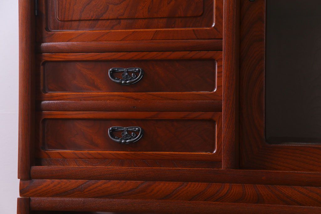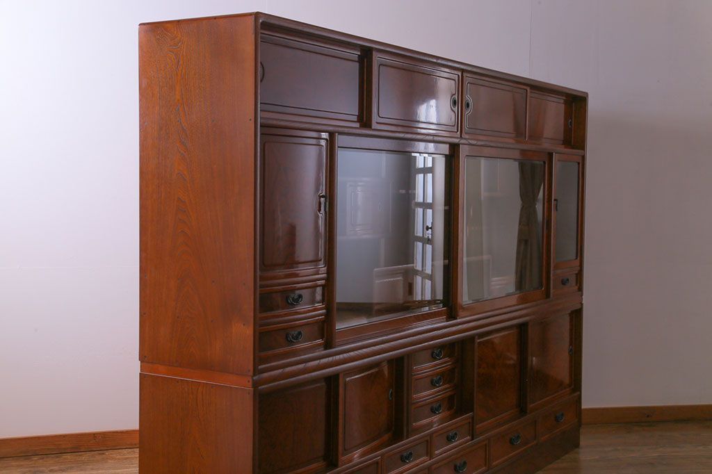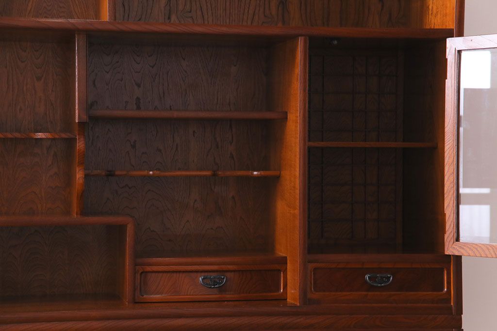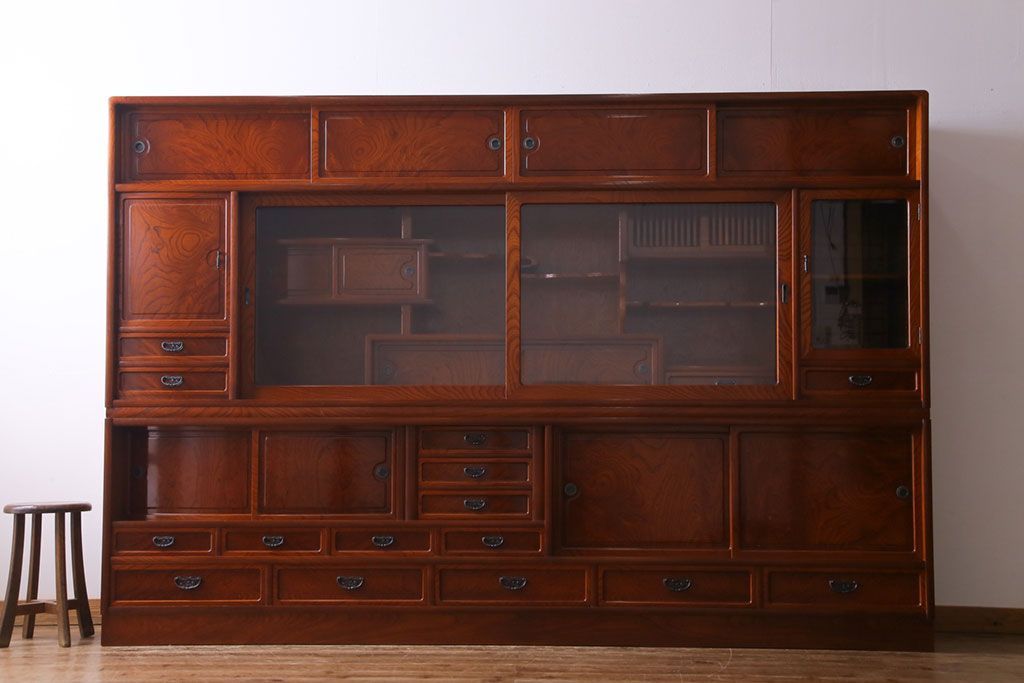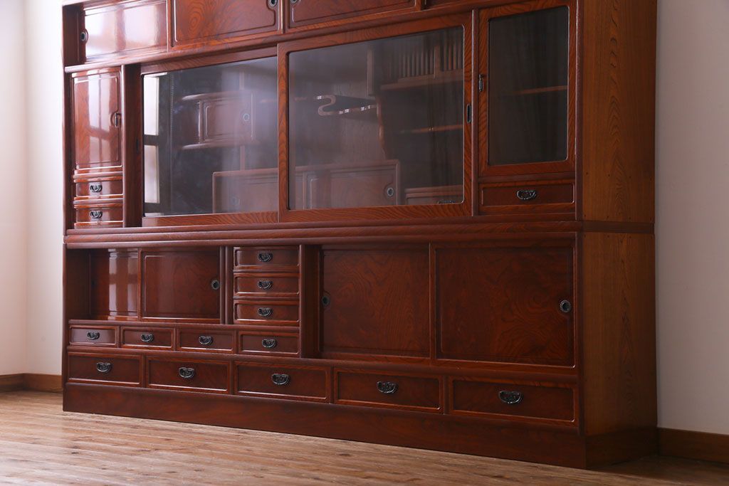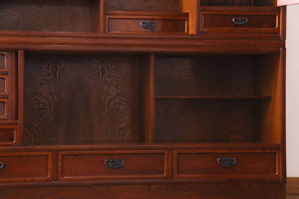 中古美品 民芸家具 9尺サイズ 隠し付き 上質な存在感を放つ重ね茶箪笥(茶棚、飾り棚)
