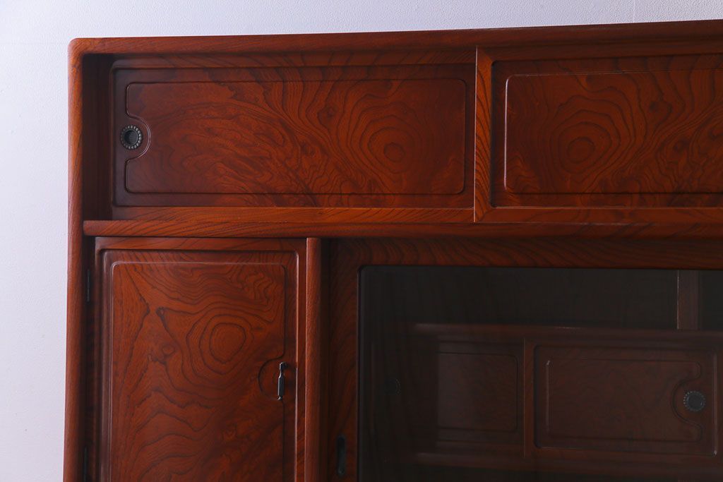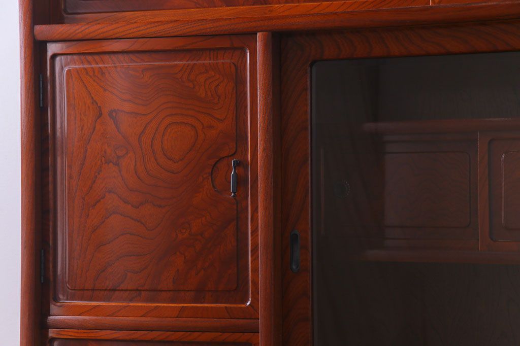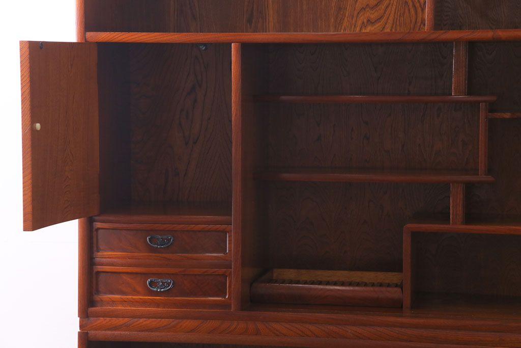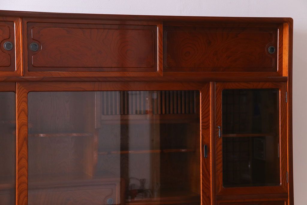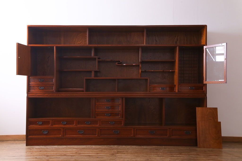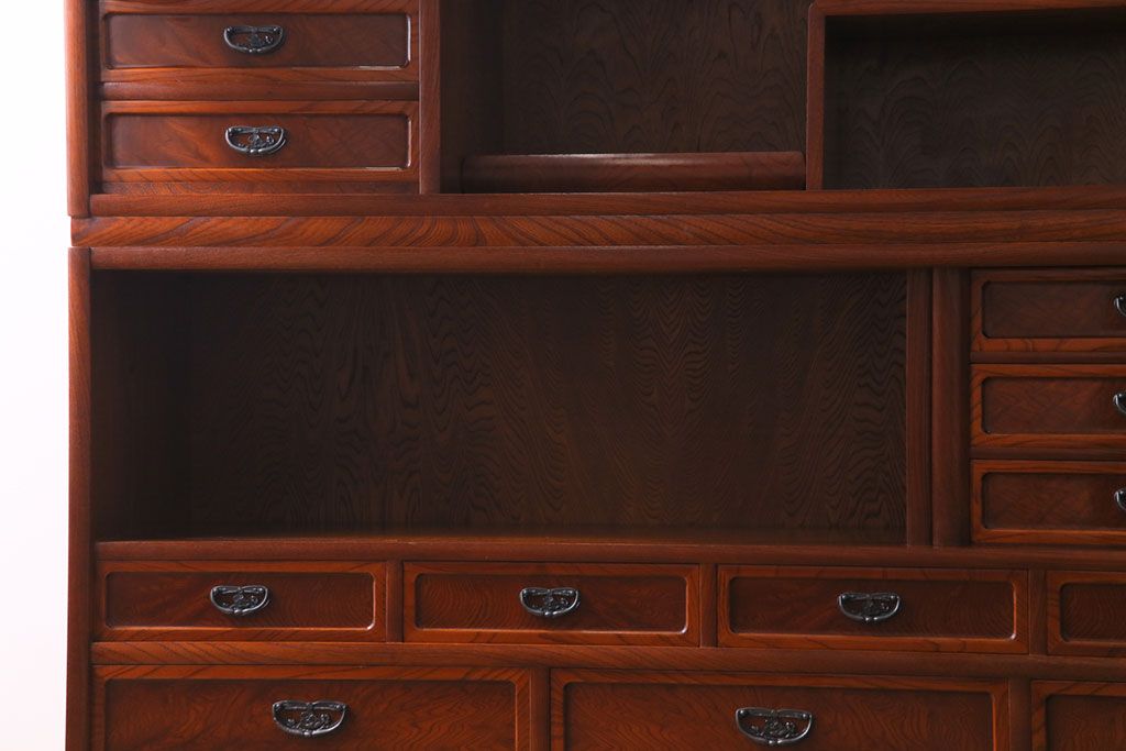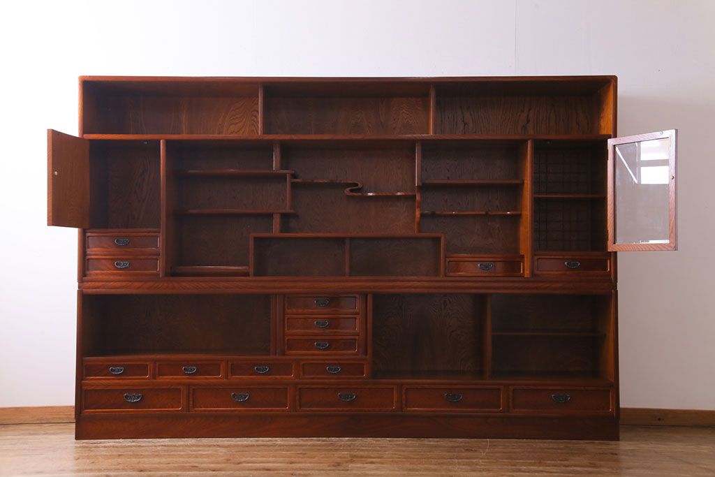中古美品 民芸家具 9尺サイズ 隠し付き 上質な存在感を放つ重ね茶箪笥(茶棚、飾り棚)