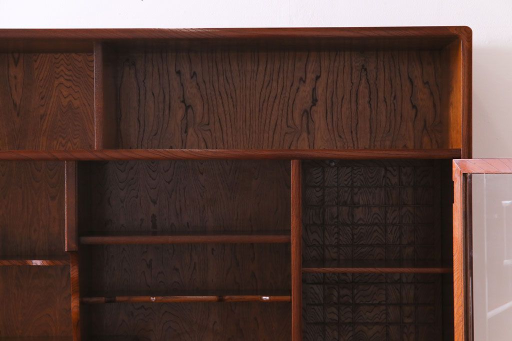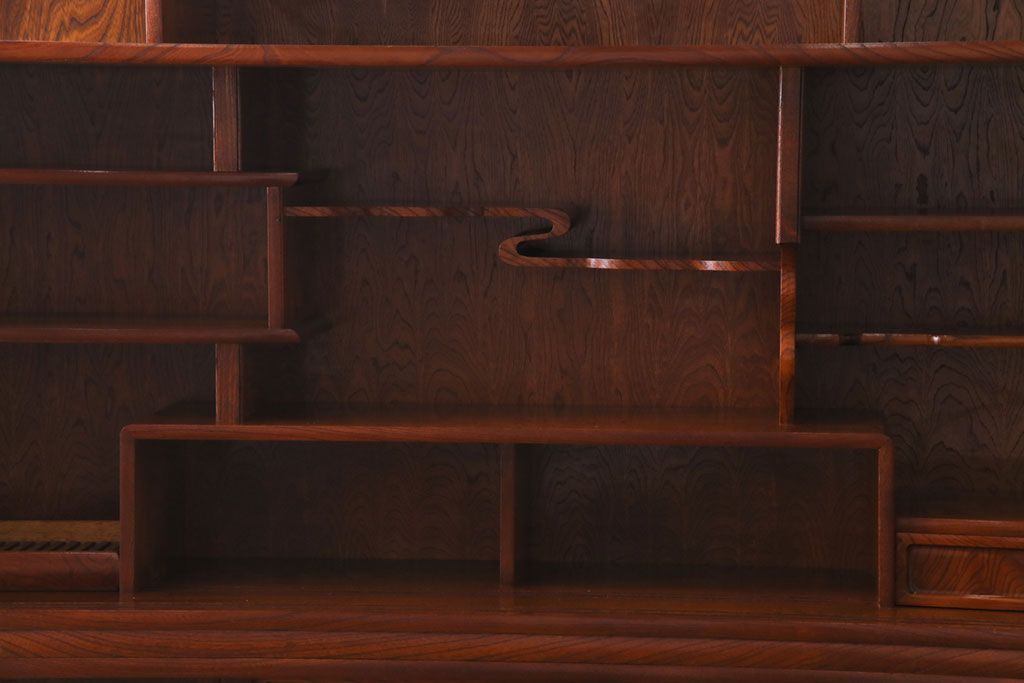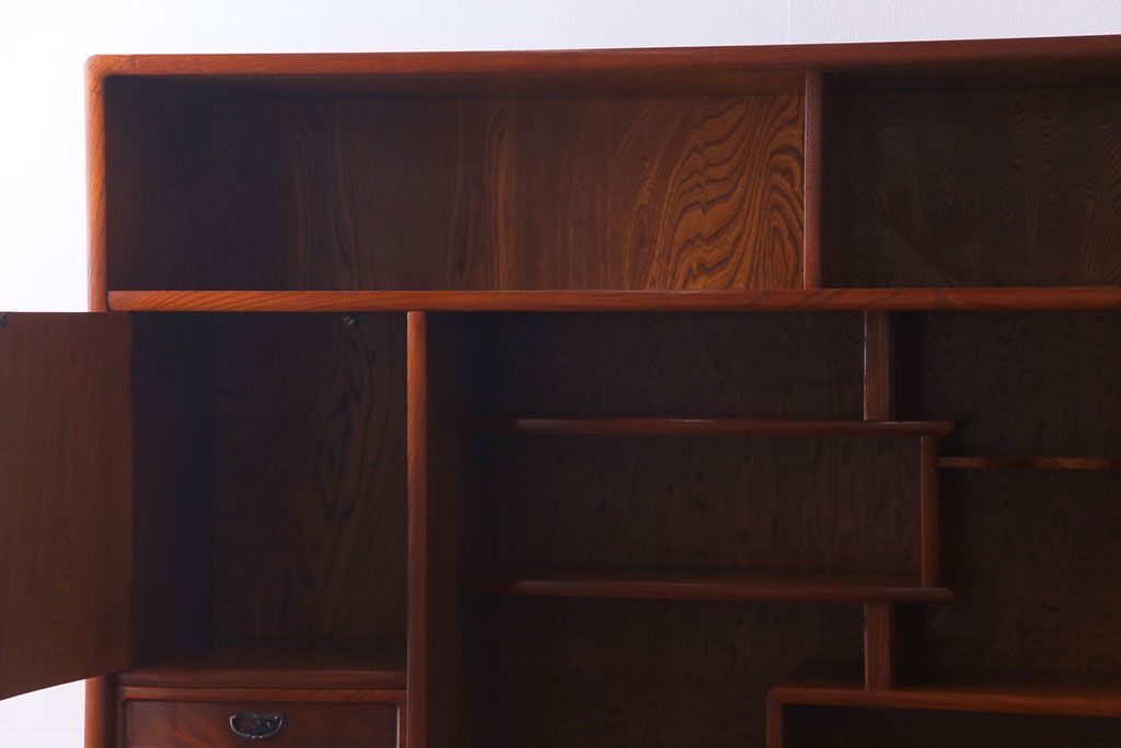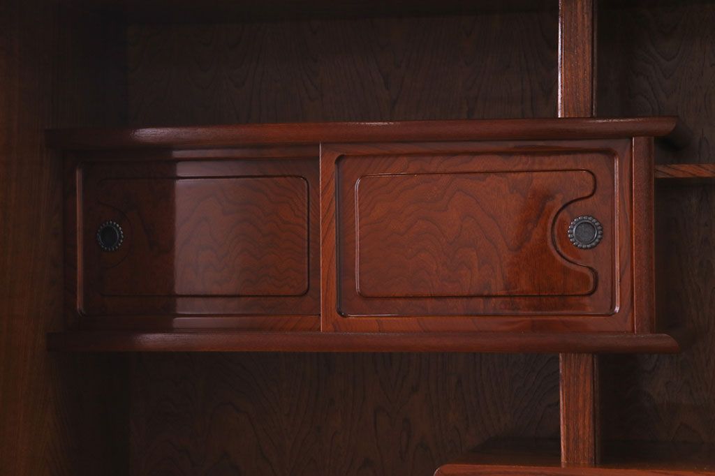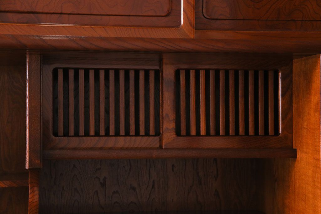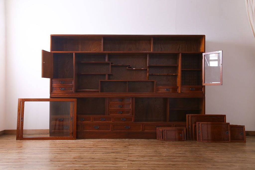 中古美品 民芸家具 9尺サイズ 隠し付き 上質な存在感を放つ重ね茶箪笥(茶棚、飾り棚)
